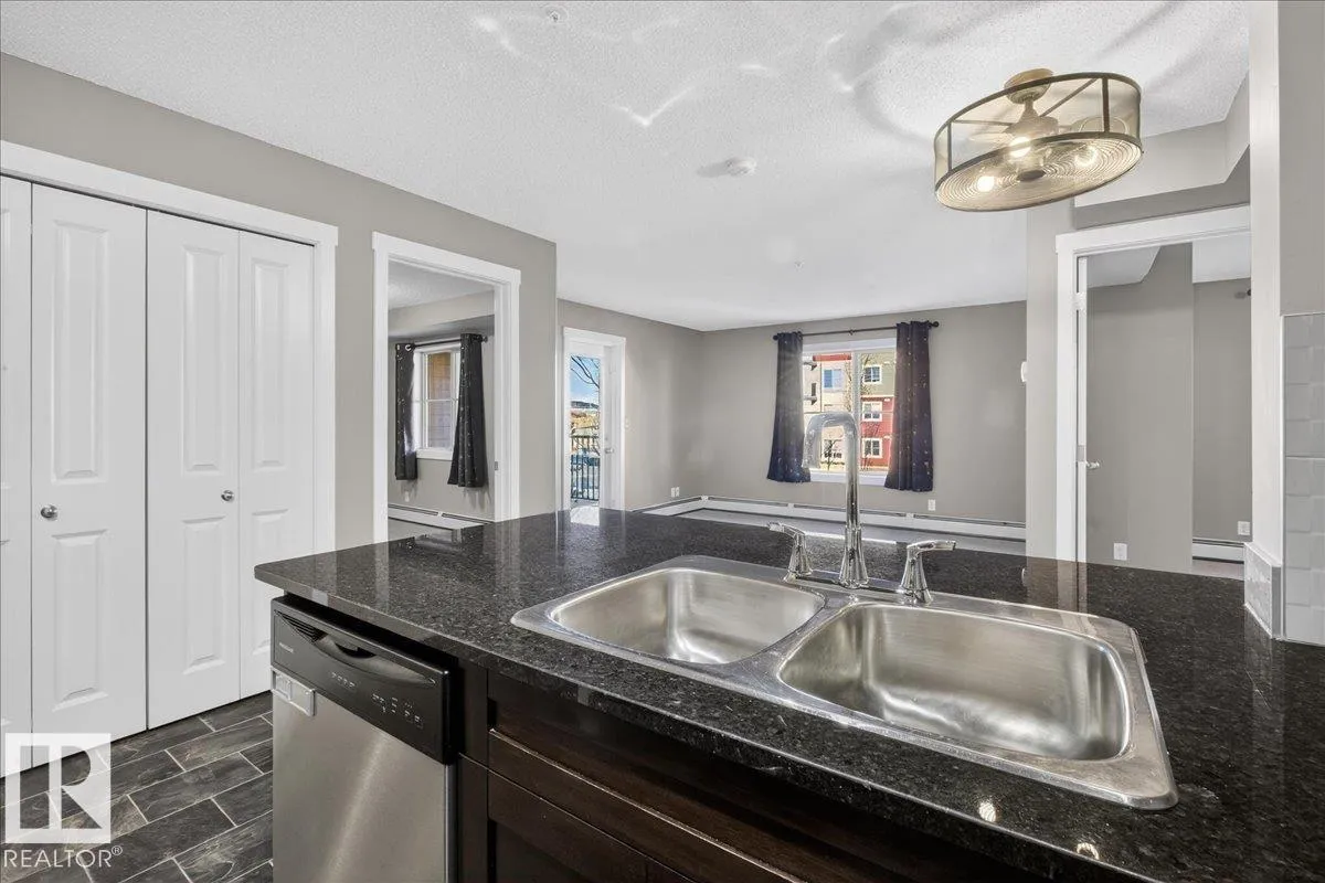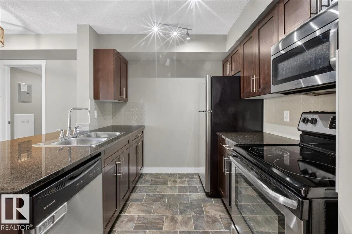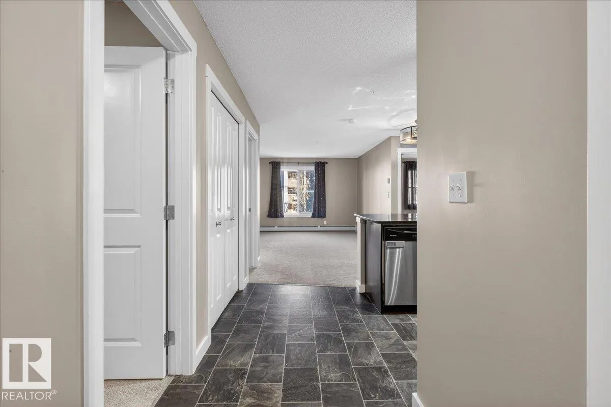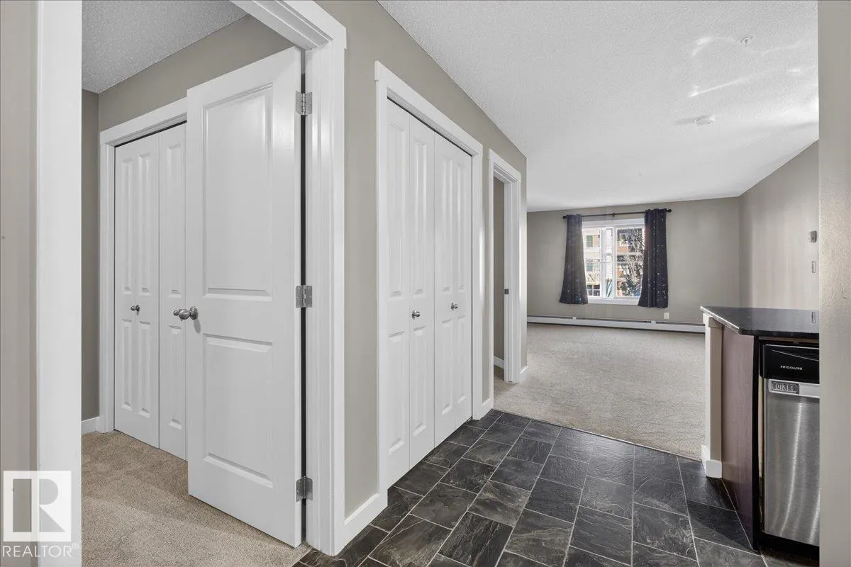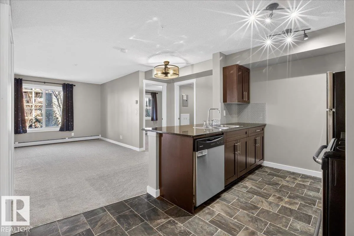 Shows like new! 925 sq ft 2 bedroom apartment plus den (with closet) featuring NEW carpet and FRESHLY PAINTED. Upon entry is access to the 4pc common bath on the right and den on the left & moving forward is the galley kitchen with stainless appliances, granite counters & eating bar, large living room with garden door access to covered balcony. The primary bedroom has north facing window looking across the balcony with walk through closet & 4 pc ensuite bath with a deep soaker tub. Bedroom 2 is also spacious with a north facing window. Full size laundry room with new (6 mo old) stacking washer & dryer & plenty of storage space. Parking is one titled surface stall and one assigned surface stall. Creekwood Landing II is well located in Chappelle close to public transportation, plenty of walking paths & close to grocery shopping, restaurants & retail services. Easy access to the Anthony Henday or 41 Ave SW to HWY 2. (id:27476)