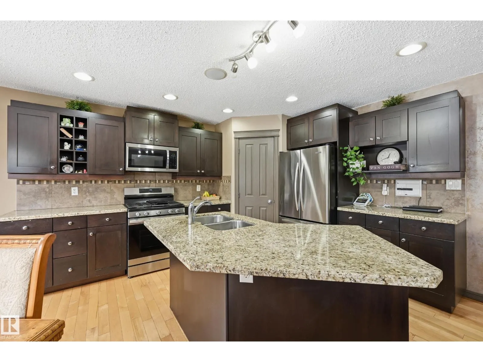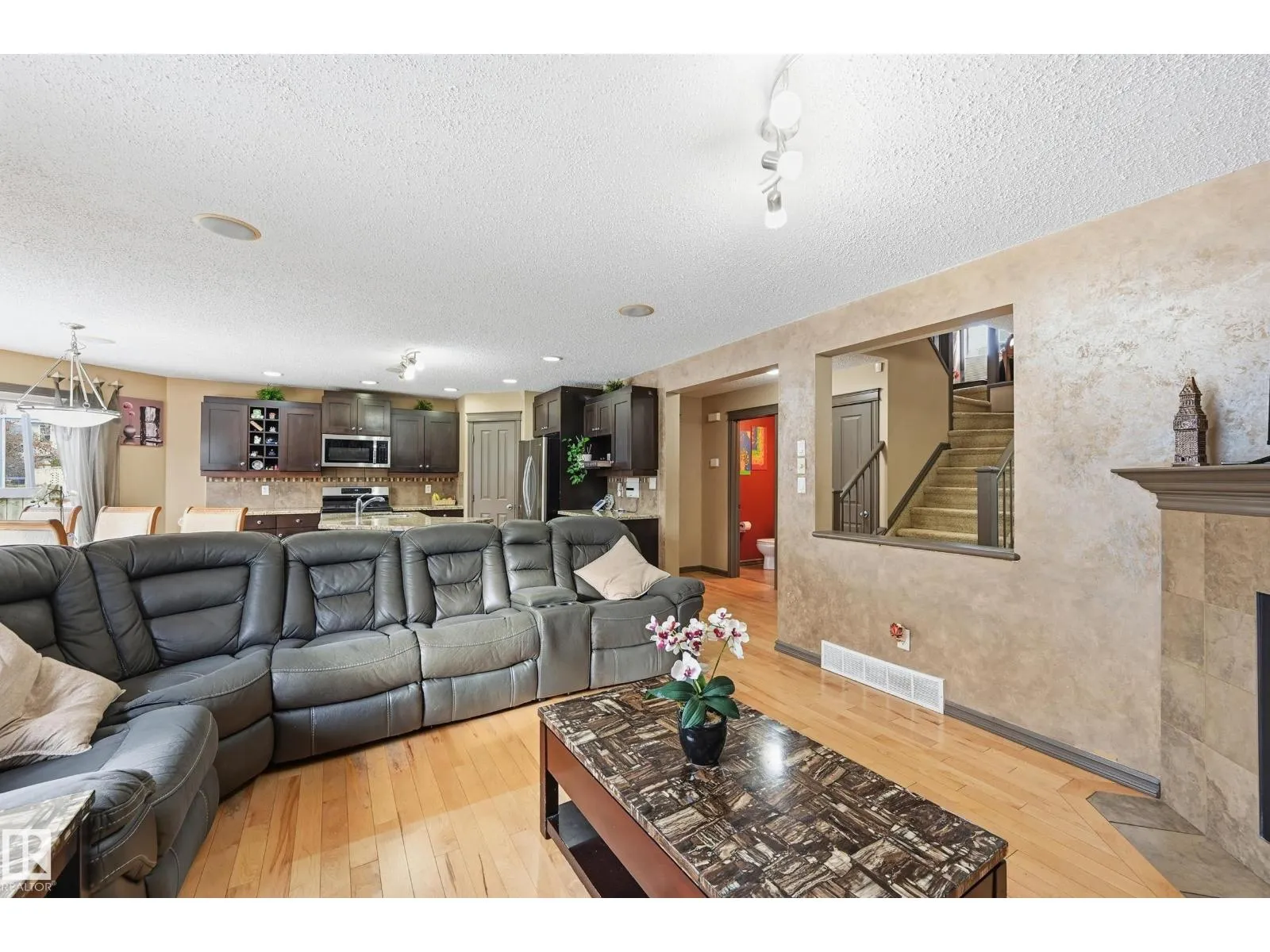 Executive 2 Storey family home in the sought after community of Potter Greens, offering 4 bedrooms and 4 bathrooms. The open concept main level is highlighted by rich hardwood flooring, a mantled gas fireplace, and expansive windows framing the private backyard. The chef-inspired kitchen features warm wood cabinetry, granite countertops, stainless steel appliances, a walk-in pantry, and a large island with breakfast bar perfect for entertaining. The dining area opens onto a beautifully landscaped yard with deck, patio, gazebo, and mature greenery. The main floor is completed by a stylish living space, 2-piece bath, and a functional mudroom with laundry and access to the double attached garage. Upstairs, a massive bonus room is thoughtfully separated from the bedrooms, offering added privacy. The primary retreat boasts a spalike ensuite with soaker tub and separate shower. The fully finished basement includes a 4th bedroom, full bath, den, storage, and an inviting rec area with refreshment. (id:27476)
