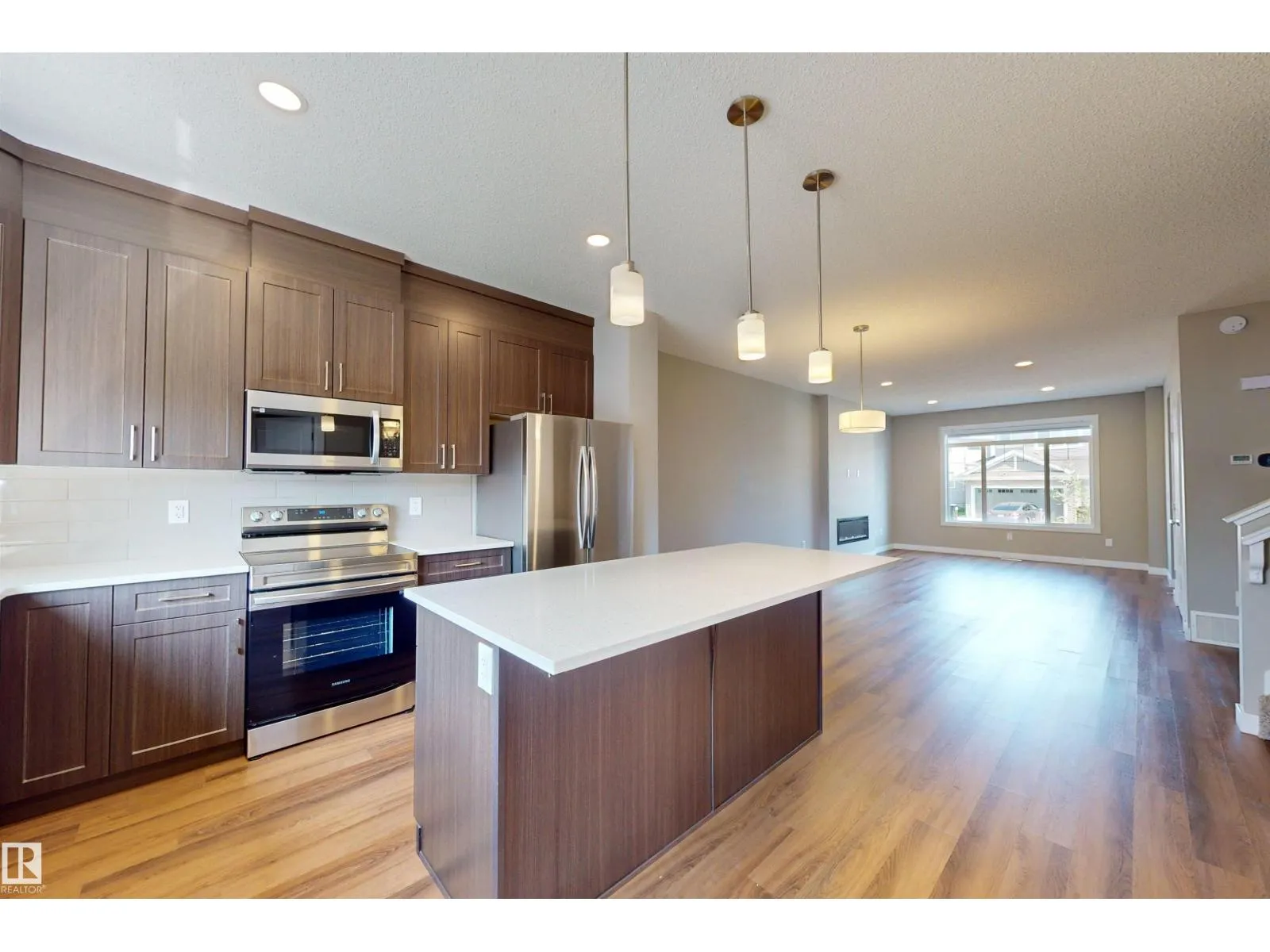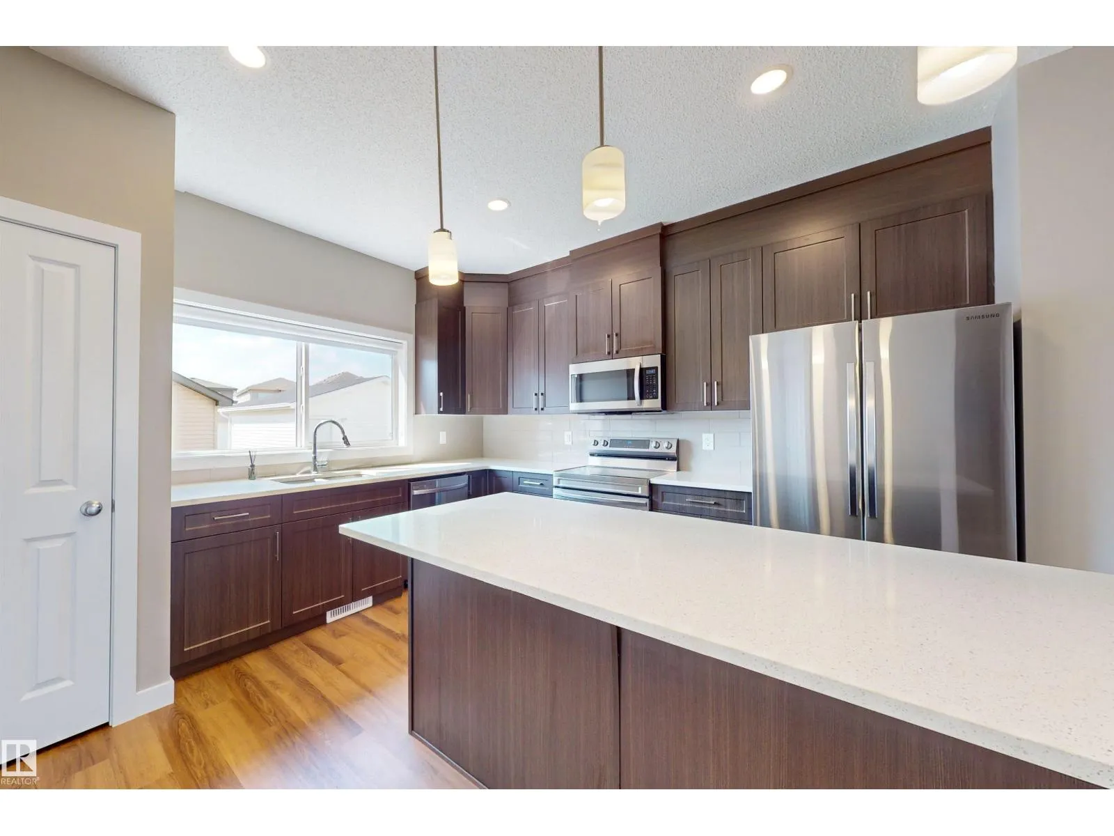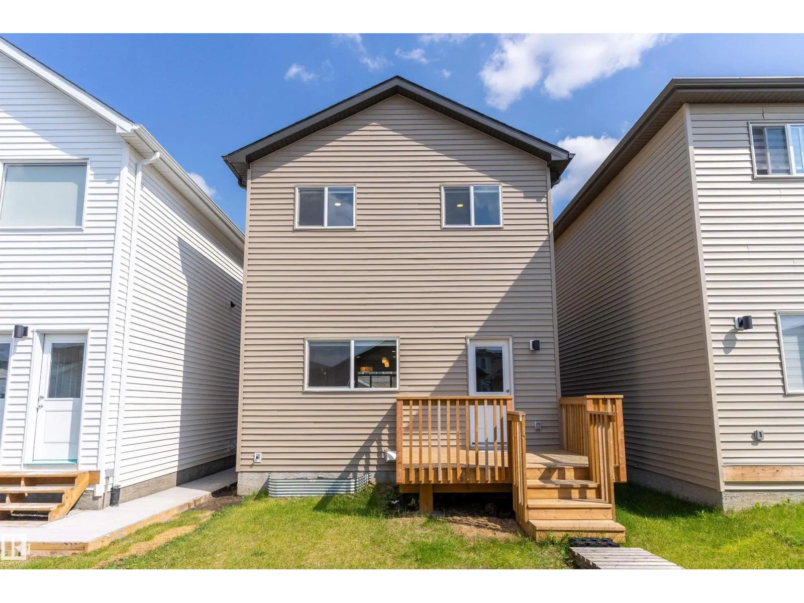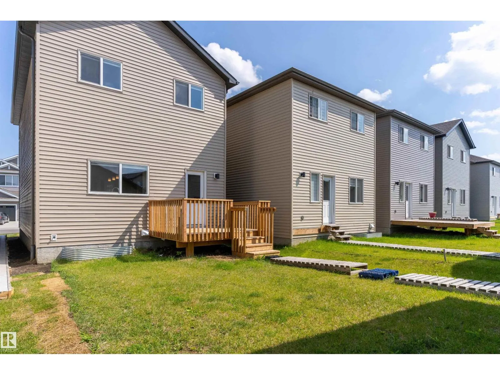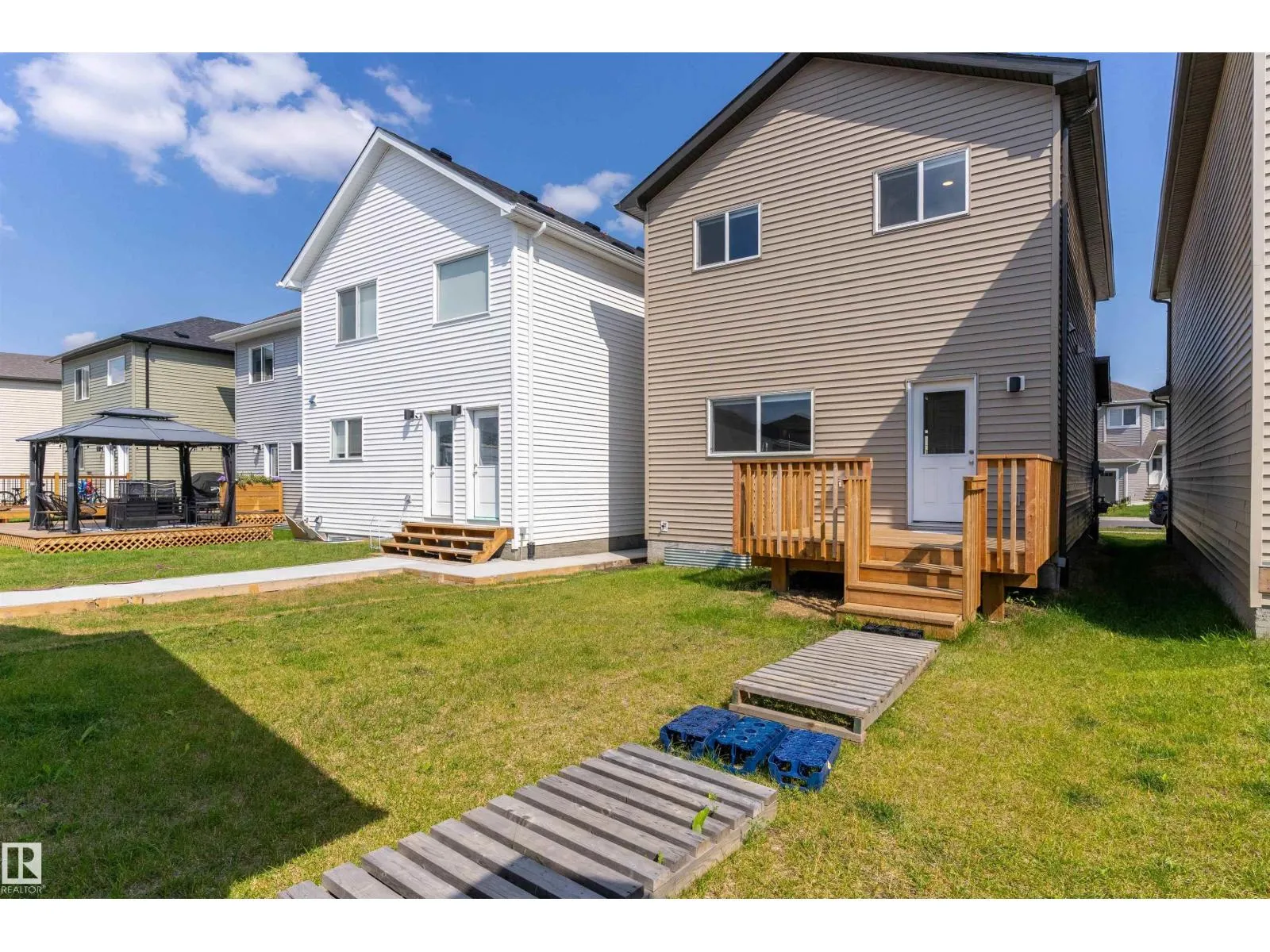Welcome to this bright and stunning open-concept home located in the desirable community of Maple Crest. The main floor offers impressive 9-foot ceilings and a spacious living and dining area, ideal for entertaining. The modern kitchen features stainless steel appliances, quartz countertops, ample cabinetry, and flows seamlessly into the living space highlighted by a cozy fireplace. A convenient half bathroom completes the main level. Upstairs you will find a spacious primary bedroom with a walk-in closet and private ensuite. Two additional well-sized bedrooms, a full bathroom, and convenient upper-floor laundry complete the upper level. The unfinished basement offers endless potential for future development and includes an HRV system. Outside, enjoy a landscaped backyard with a good-sized deck and low-maintenance garden, perfect for relaxing or hosting guests. This property also includes a detached double car garage. Close to Anthony Henday Drive, recreation centres, shopping, schools, and parks. (id:27476)