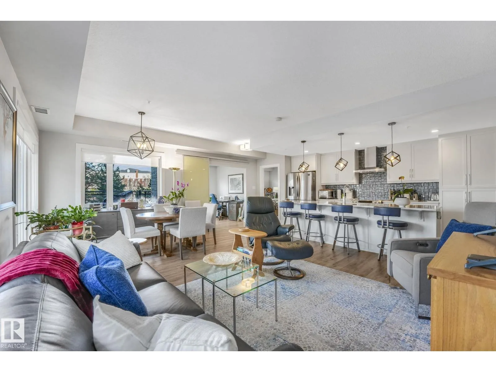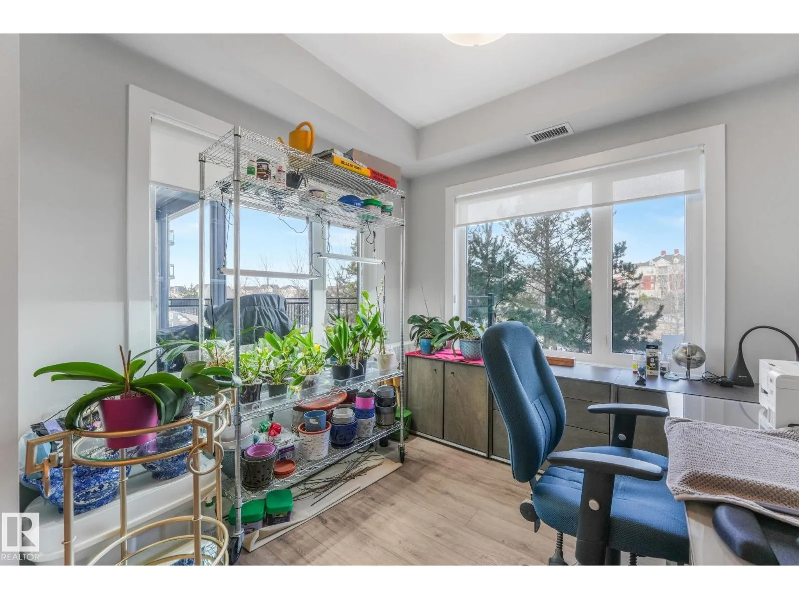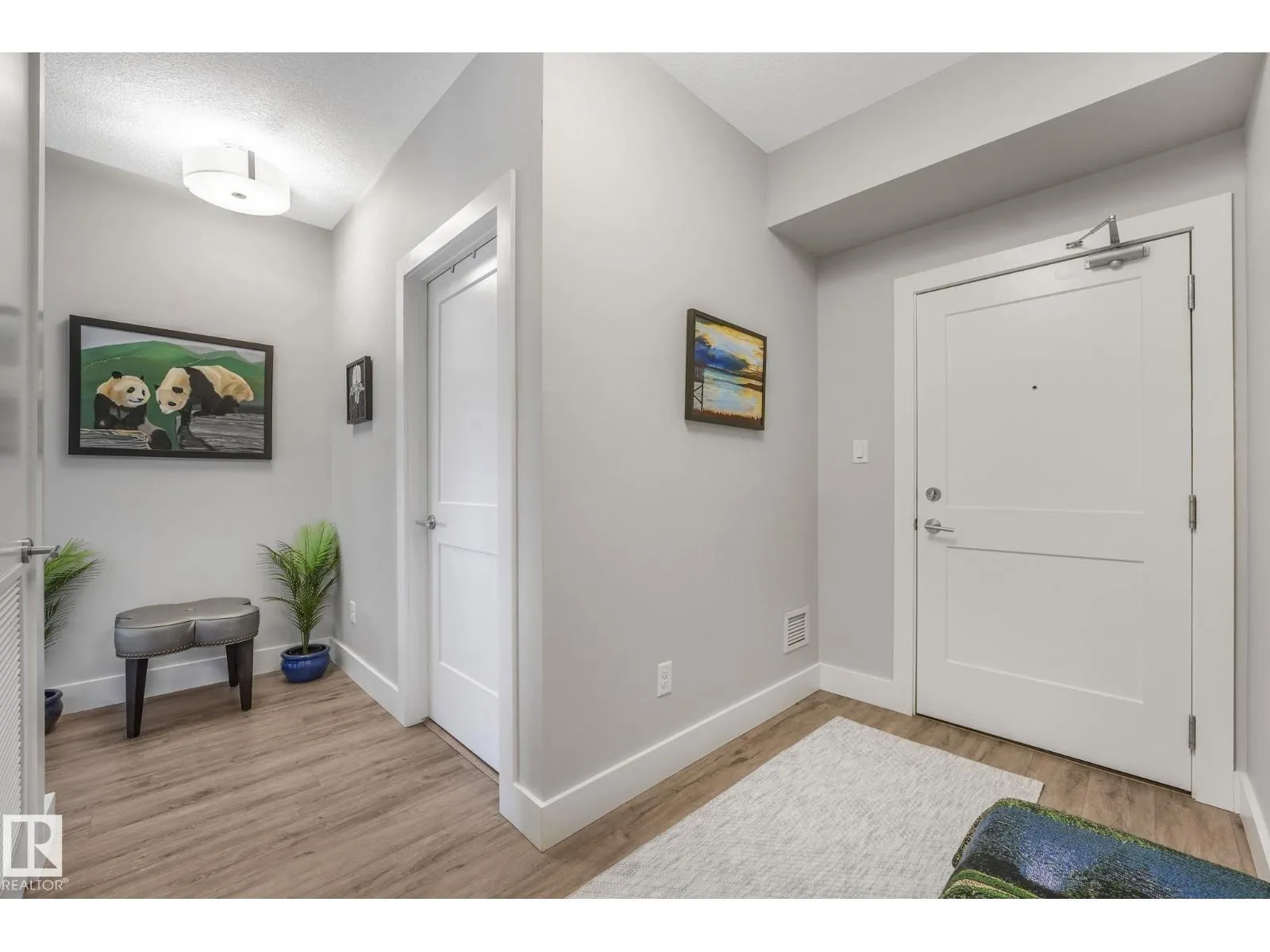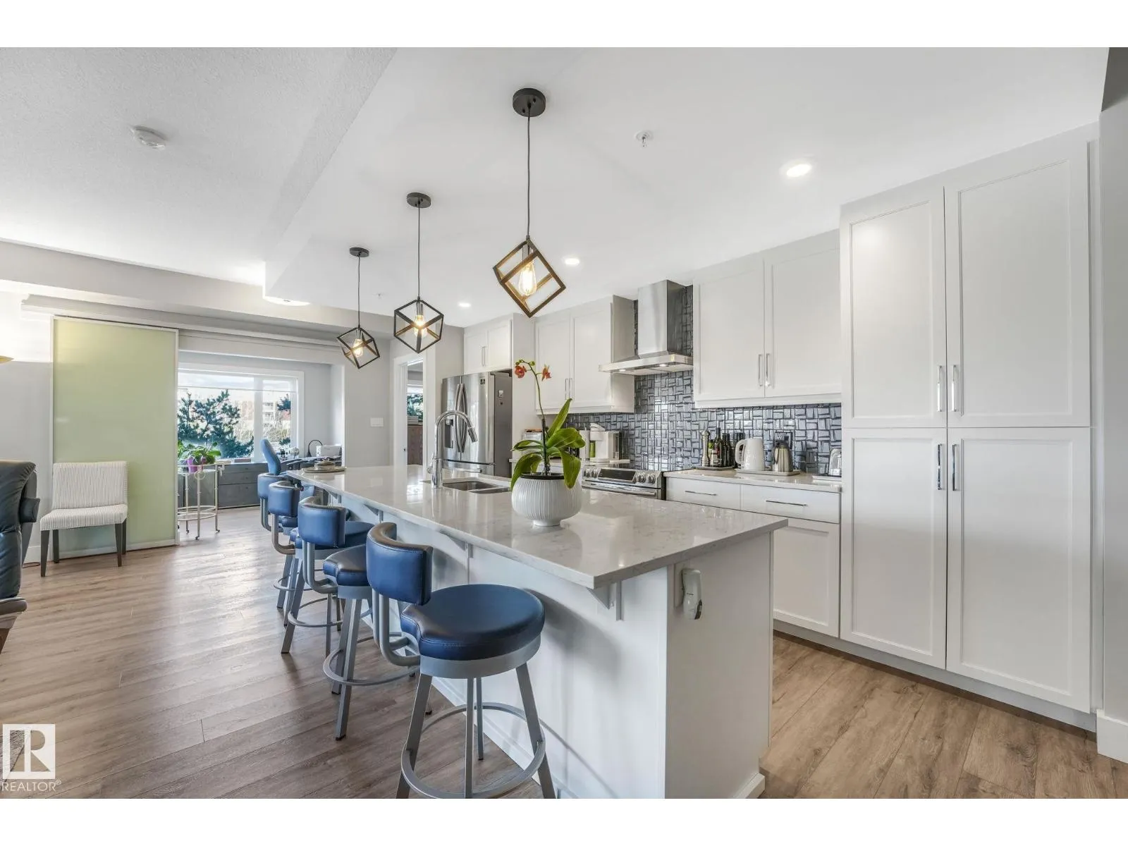 Pristine Original Owner 2 Bed, 2 Bath + Den Condo. Step into Style & Taste! Featuring 1316 sf, 9' Ceilings, Expansive Windows w/Custom Blinds, Kitchen w/Quartz Counter Top, 10' Island, SS Appliances & Crisp White Shaker Cabinets w/ Extended Uppers. The Open Layout is Perfect for Entertaining w/ Seating at the Island, Large Dining Space, Welcoming Living Rm & Huge 545 sf Wrap Around Patio w/West & North Exposures & Gas BBQ line for Year Round Grilling. Thoughtfully Designed w/Spacious Primary Featuring a Gorgeous 4pc. Ensuite & Lg. Walk-In Closet, Functional & Bright Den w/ Lake View & Sliding Privacy Doors, Guest Bed w/its Own Walk-In Closet, Full Size Laundry Rm w/ Quartz Counter-Top & Upper Cabinets. Add'l Upgrades & Features; Closet Organizers, Central A/C & 2 Titled Parking Stalls incl. 1 Underground w/Storage Cage & 1 Surface Right Outside your Patio. One of Edmonton's Premiere Communities Surrounded by Over 5km of Walking Trails, Lakes, Amenities, Shops & Dining. Shows 10/10! (id:27476)