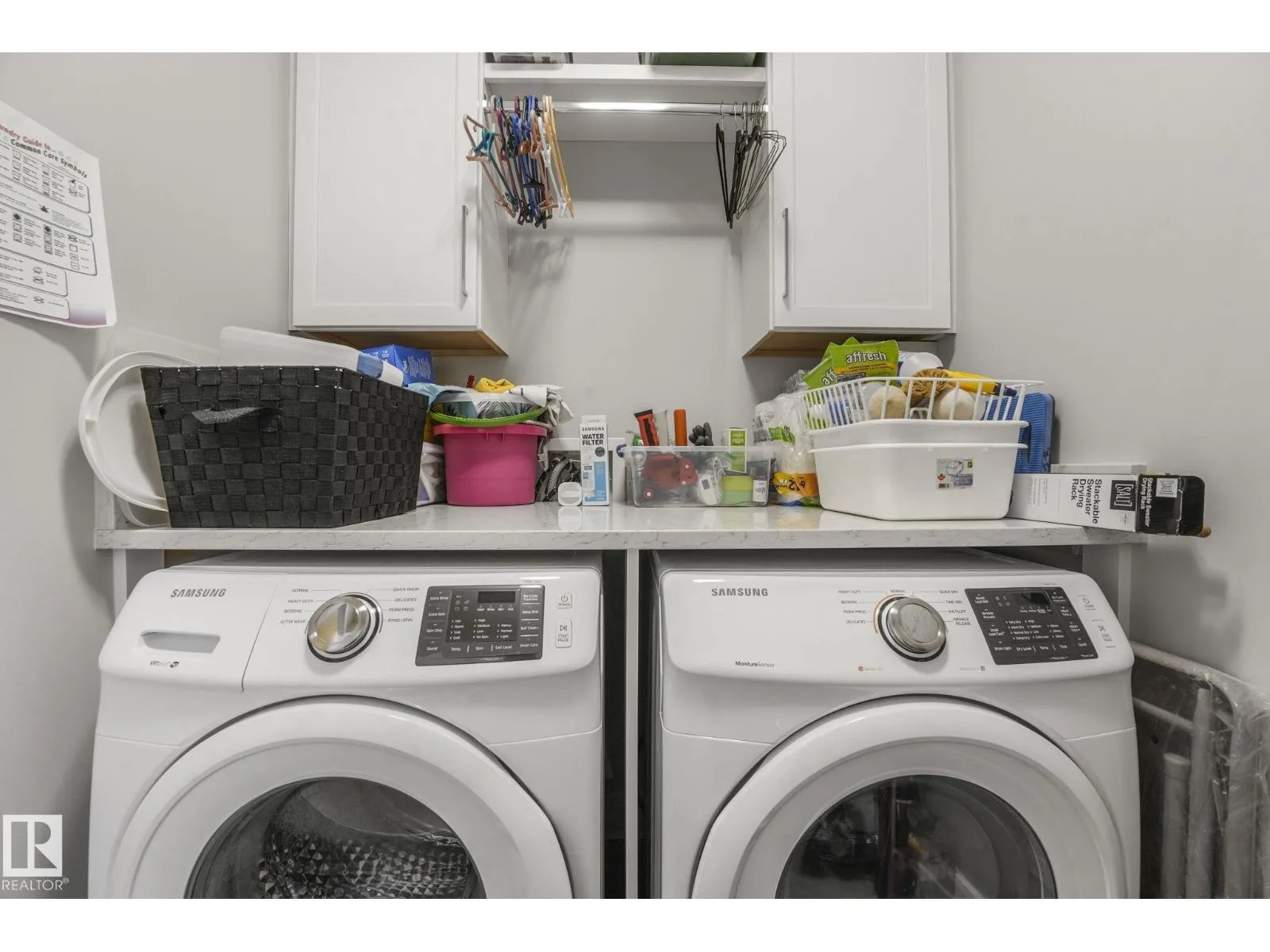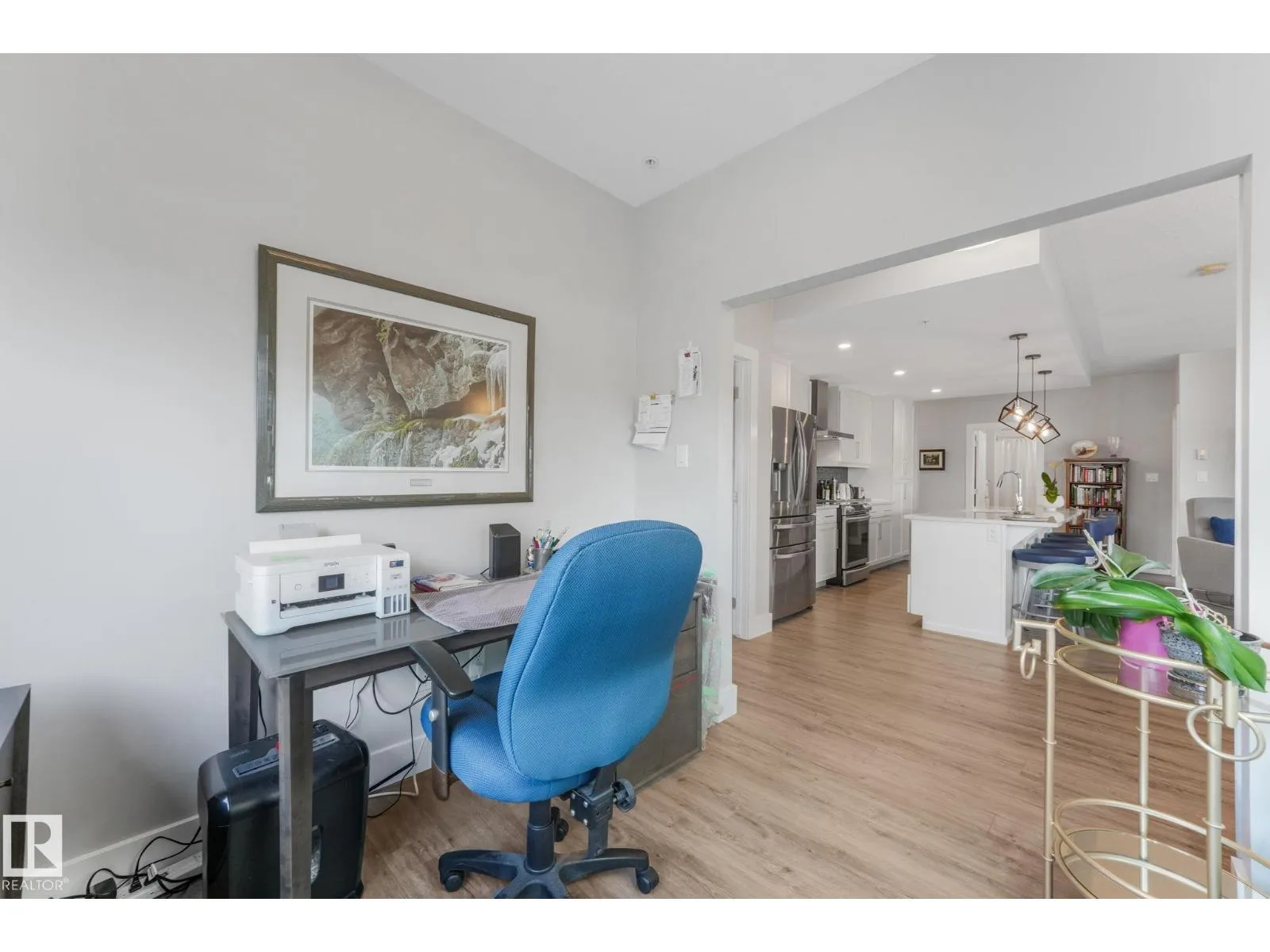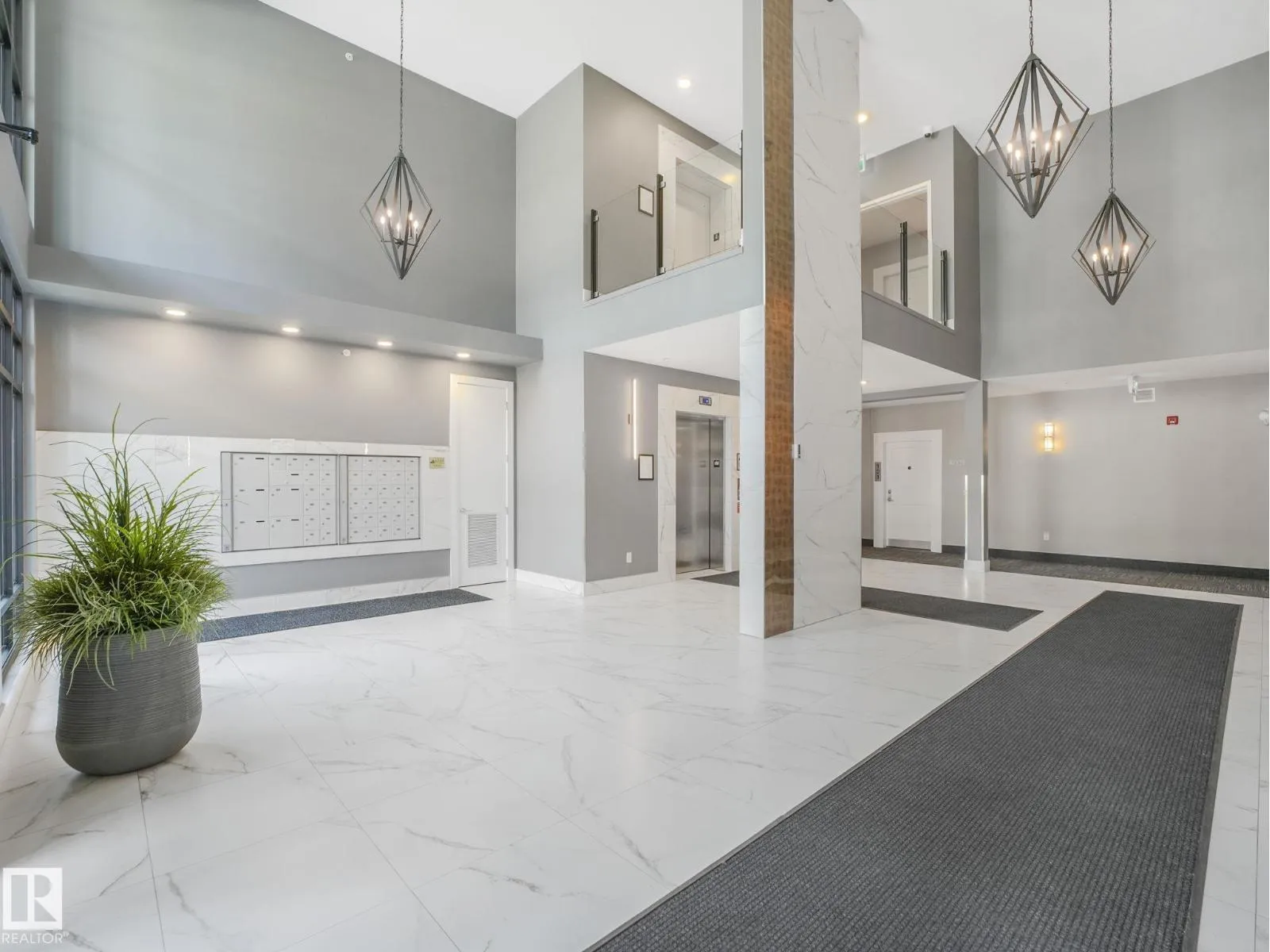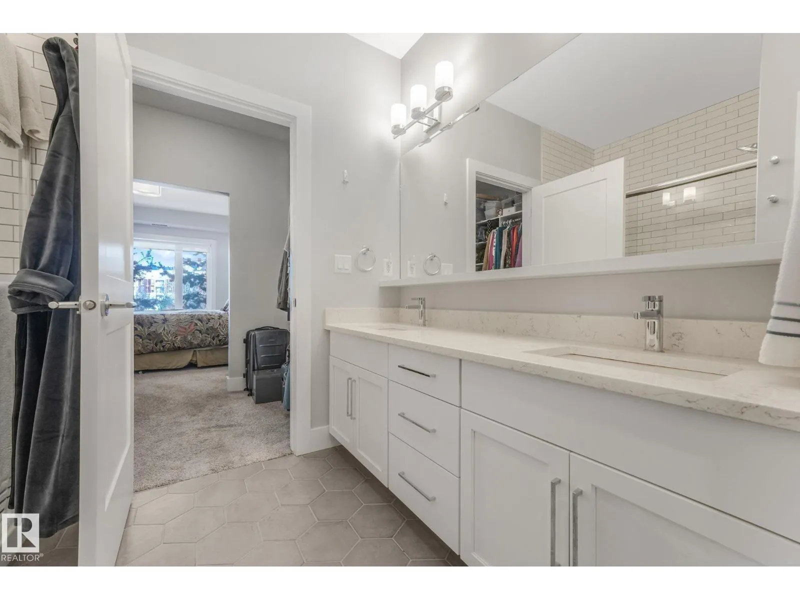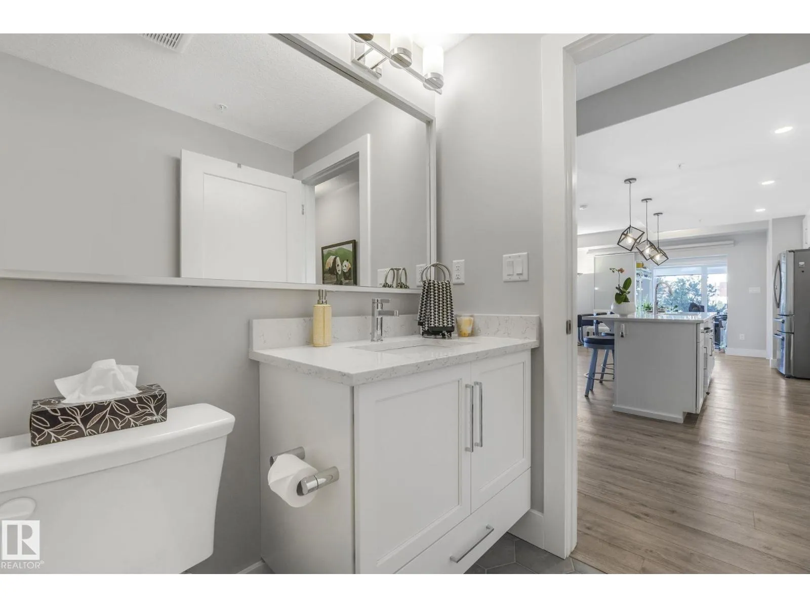 Pristine Original Owner 2 Bed, 2 Bath + Den Condo. Step into Style & Taste! Featuring 1316 sf, 9' Ceilings, Expansive Windows w/Custom Blinds, Kitchen w/Quartz Counter Top, 10' Island, SS Appliances & Crisp White Shaker Cabinets w/ Extended Uppers. The Open Layout is Perfect for Entertaining w/ Seating at the Island, Large Dining Space, Welcoming Living Rm & Huge 545 sf Wrap Around Patio w/West & North Exposures & Gas BBQ line for Year Round Grilling. Thoughtfully Designed w/Spacious Primary Featuring a Gorgeous 4pc. Ensuite & Lg. Walk-In Closet, Functional & Bright Den w/ Lake View & Sliding Privacy Doors, Guest Bed w/its Own Walk-In Closet, Full Size Laundry Rm w/ Quartz Counter-Top & Upper Cabinets. Add'l Upgrades & Features; Closet Organizers, Central A/C & 2 Titled Parking Stalls incl. 1 Underground w/Storage Cage & 1 Surface Right Outside your Patio. One of Edmonton's Premiere Communities Surrounded by Over 5km of Walking Trails, Lakes, Amenities, Shops & Dining. Shows 10/10! (id:27476)