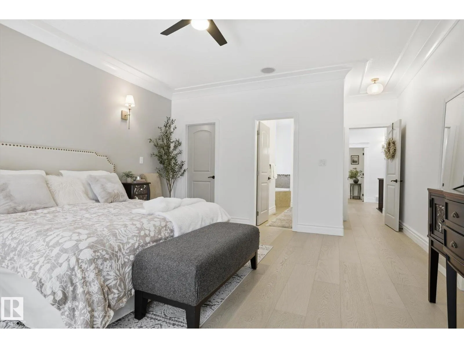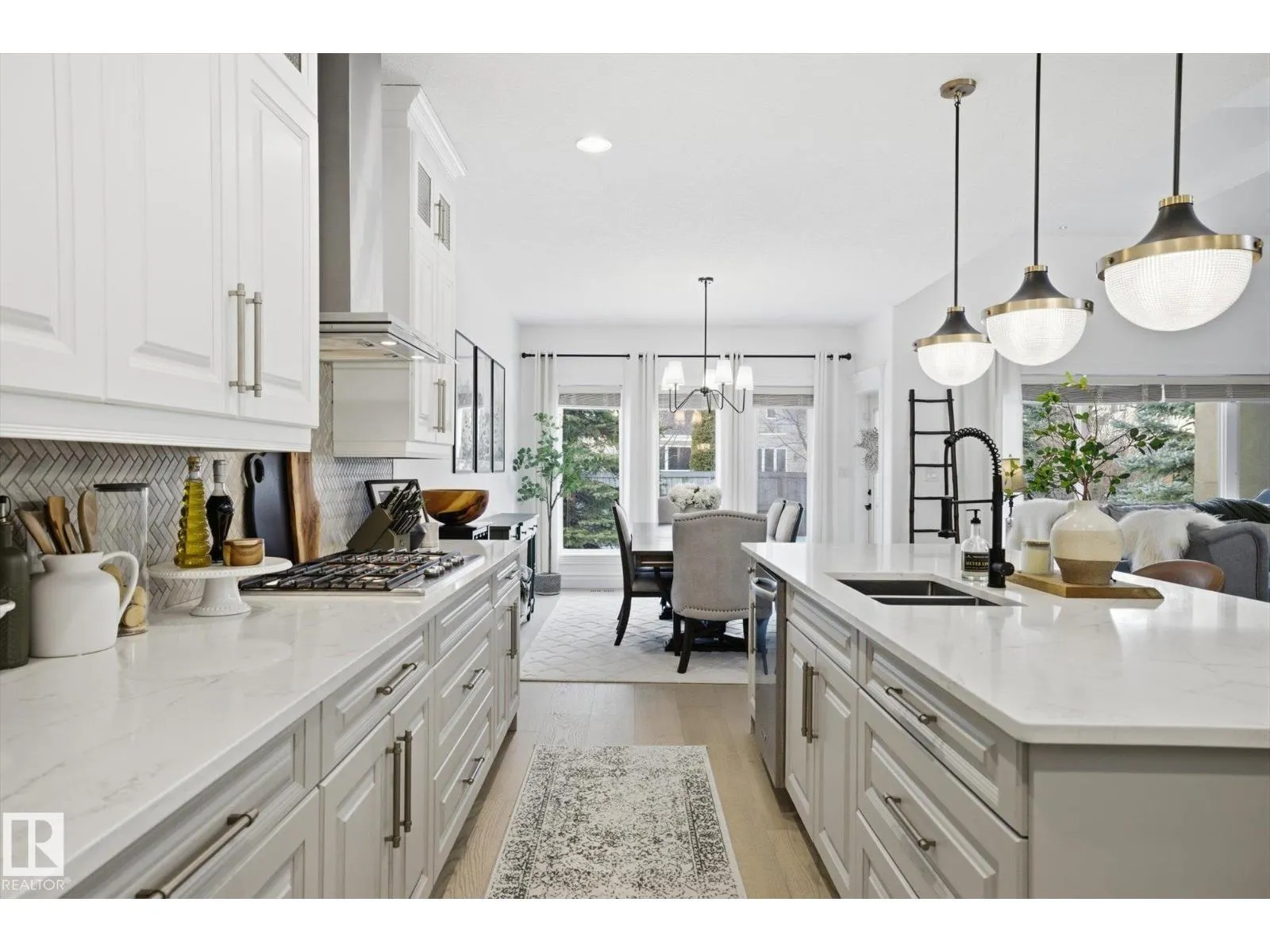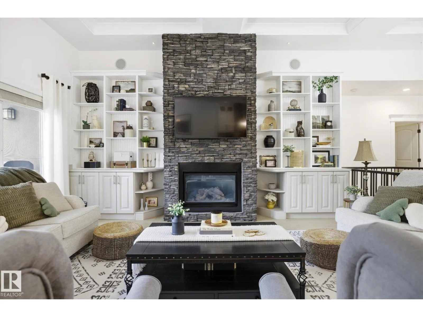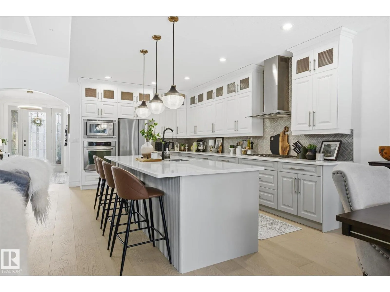 Fully renovated executive bungalow offering nearly 3,700 sq ft of finished living space in the exclusive gated community of Ravines of Richford. The open-concept main floor features 11â coffered ceilings, stacked-stone NG FP, custom built-ins, & new 9â white oak hardwood flooring throughout. Recent updates include fresh paint, lighting, tilework, refinished cabinetry, & upgraded appliances, creating a bright, cohesive aesthetic. The kitchen offers granite countertops, a large island, & flows into the dining area overlooking a fully fenced, landscaped pie-shaped lot. The primary suite is generously sized w/ a 5-piece ensuite & walk-in closet. A den with French doors, second bedroom, full bath, & spacious laundry/mudroom complete the main level. The finished lower level includes a large games room, wet bar w/ beverage cooler, media/theatre room w/ surround sound, 2 bedrooms, full bath, & ample storage. 2025 high-efficiency furnace, humidifier, & water-conditioner plus it comes w/ AC & double att. garage! (id:27476)