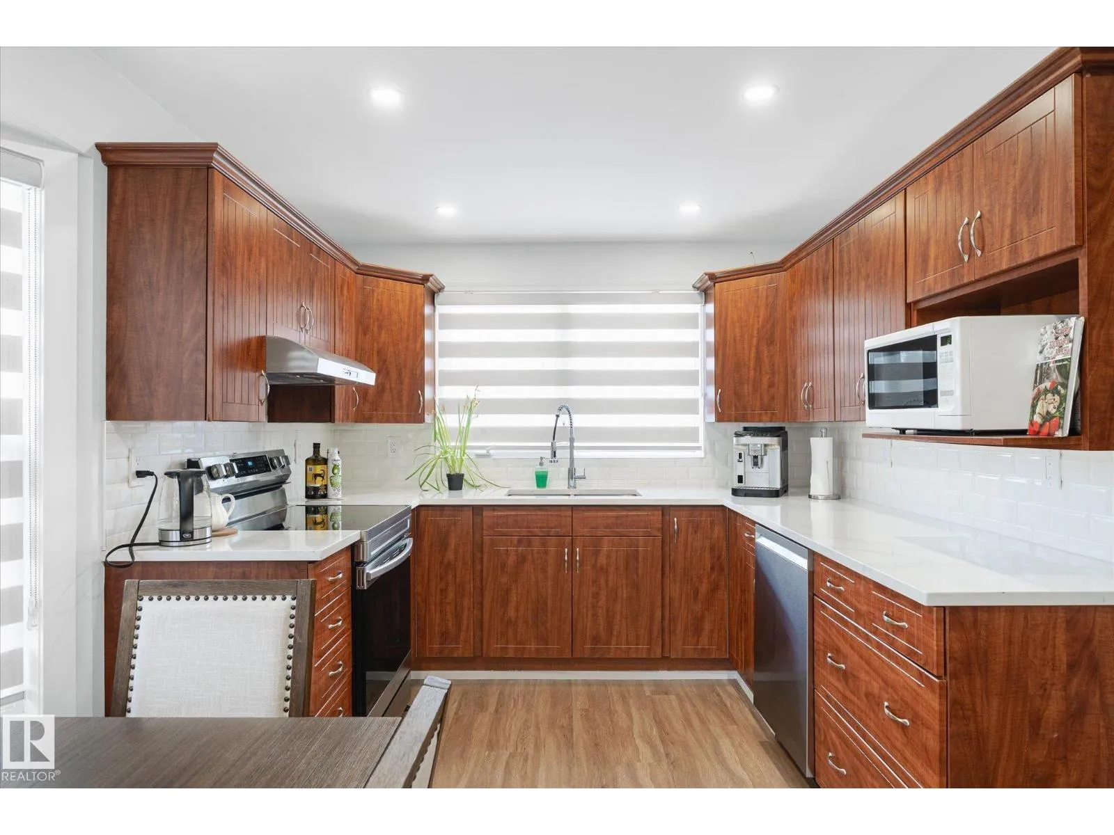 Extensively renovated bungalow offering exceptional flexibility for a growing family or extended family living. The bright main level features 3 bedrooms, spacious kitchen and one full bathroom, while the fully developed basement in-law suite includes a separate side entrance, secondary kitchen, huge rec room, laundry with sink, and an additional bedroomâideal for accommodating two families. Enjoy peace of mind with new roof shingles (2024) and new siding (2025), upgraded lighting with modern pot lights, and custom closet organizers. An oversized garage with an extended driveway easily parks 4+ vehicles. Optional upstairs washroom space may accommodate stackable laundry machines adding extra convenience to this thoughtfully updated home. (id:27476)
