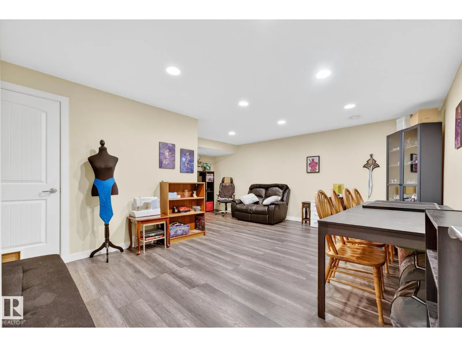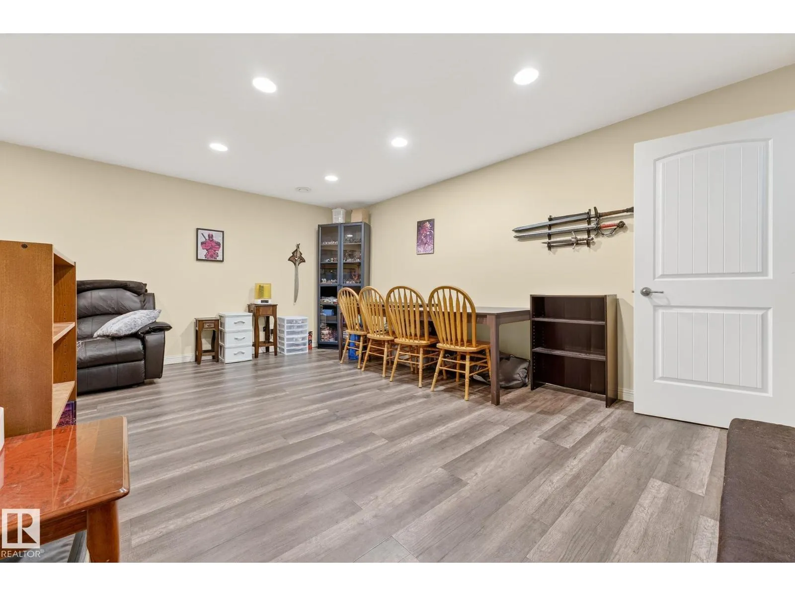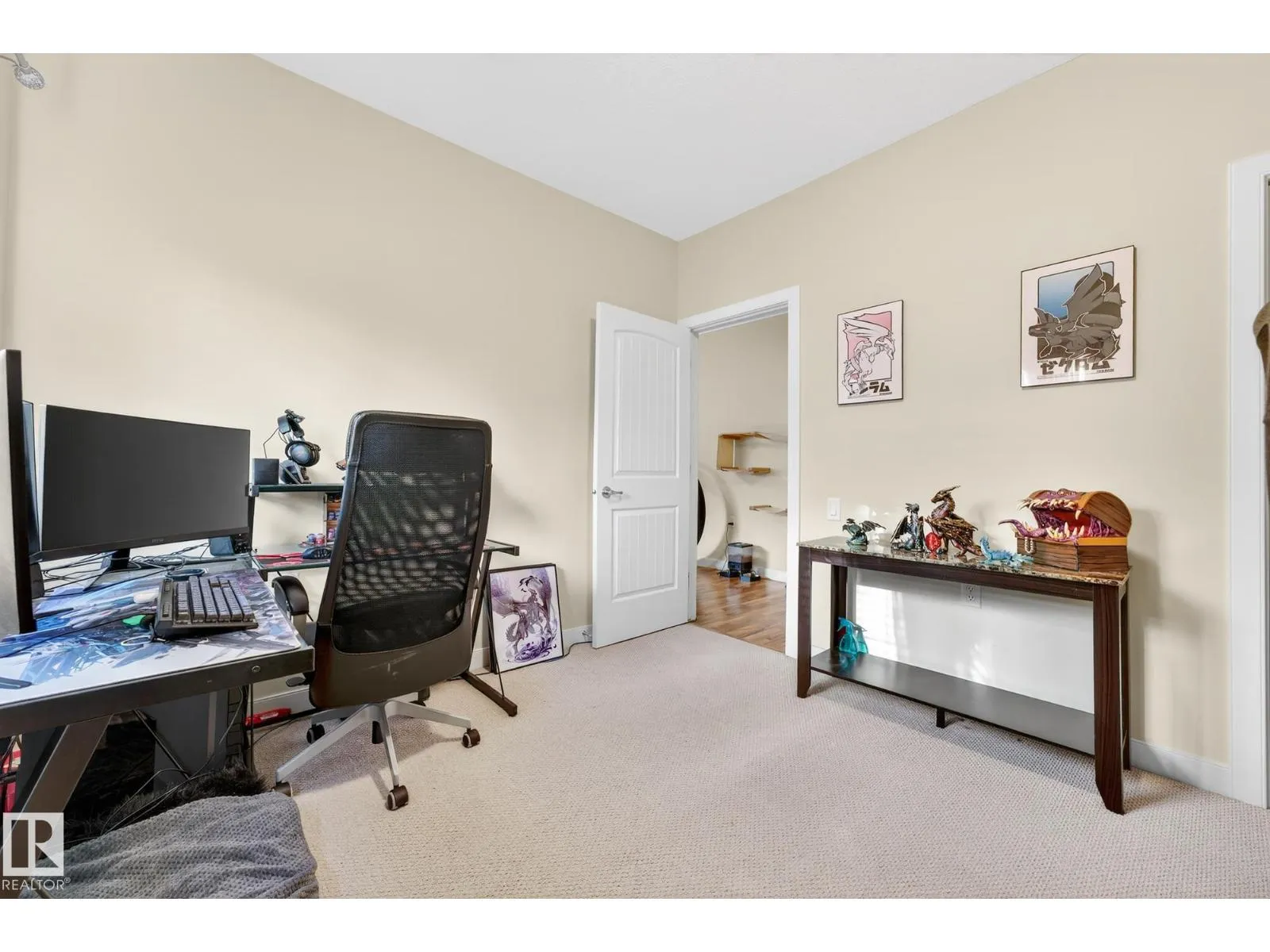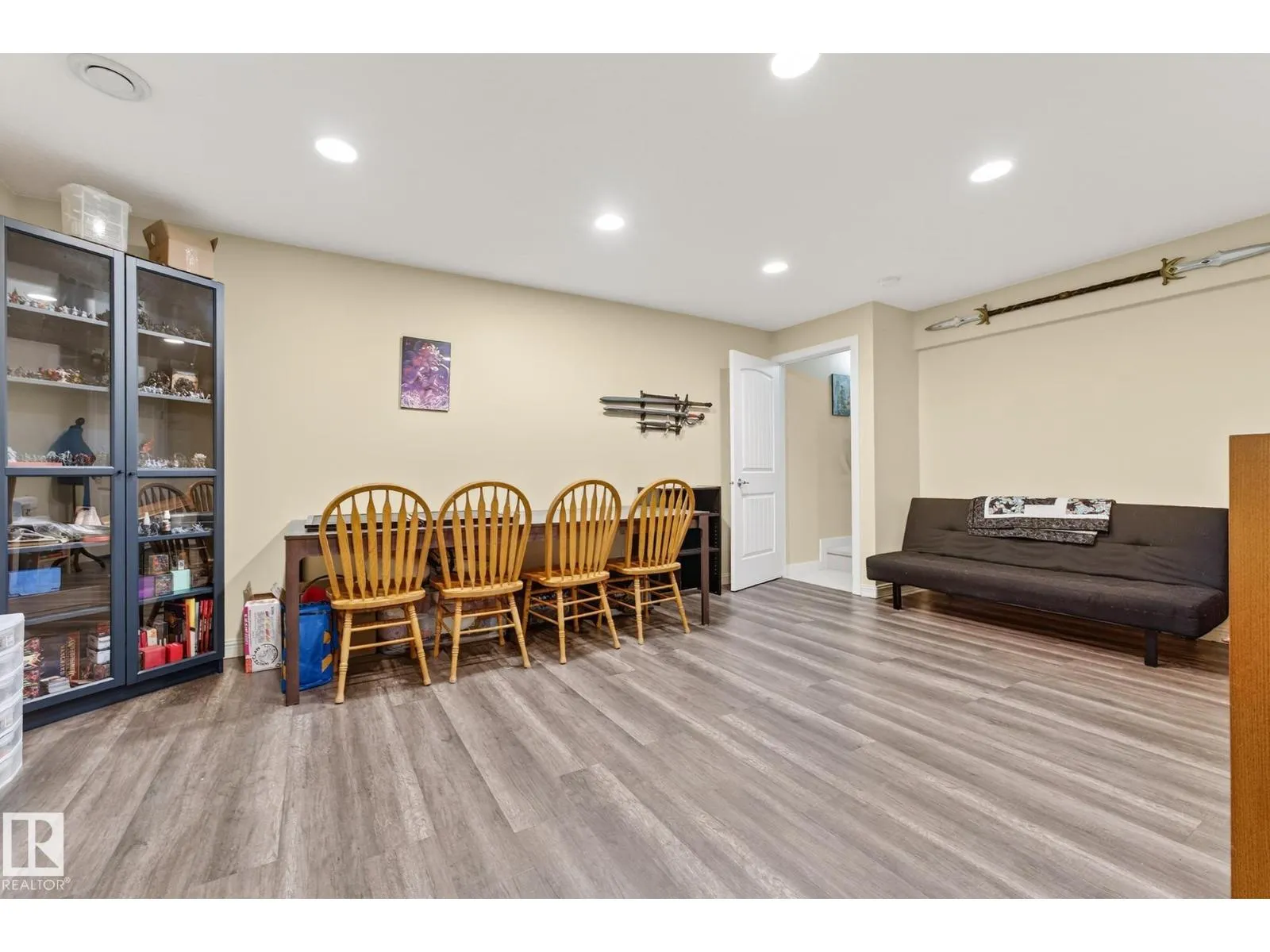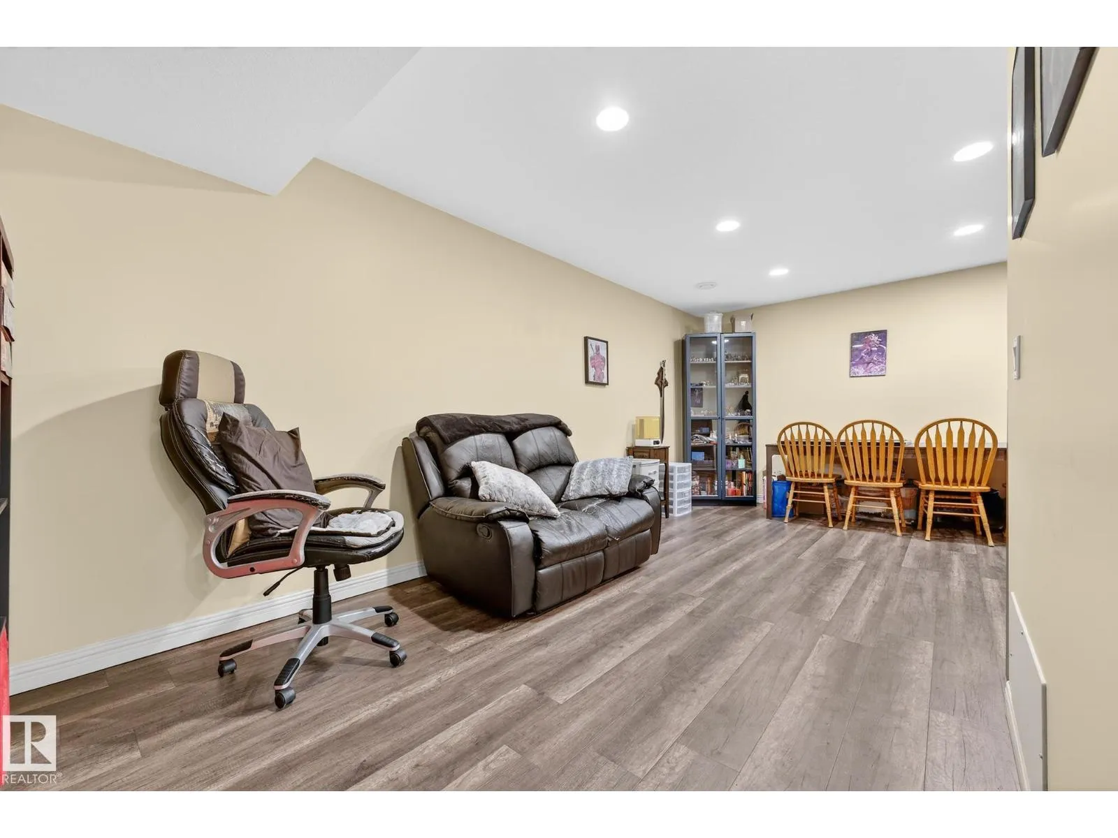 Nestled in a quiet southwest Edmonton community, this thoughtfully designed bungalow-style townhouse offers an inviting open layout ideal for both everyday living and hosting. The modern kitchen is a standout, showcasing stainless steel appliances, sleek cabinetry, generous counter space, and a central island with seating. The dining space overlooks the front veranda and yard, flowing seamlessly into a warm living area highlighted by a gas fireplace. The primary bedroom includes a walk-in closet and a private three-piece ensuite, while the second bedroom is positioned on the opposite side of the home for added privacy, adjacent to another full three-piece bathroom. A dedicated laundry room on the main floor provides direct access to the attached single garage. Downstairs, the fully developed lower level expands your living space with a large recreation room and an additional four-piece bathroom. An exceptional opportunity to enjoy comfort, function, and tranquility in a beautiful setting. (id:27476)