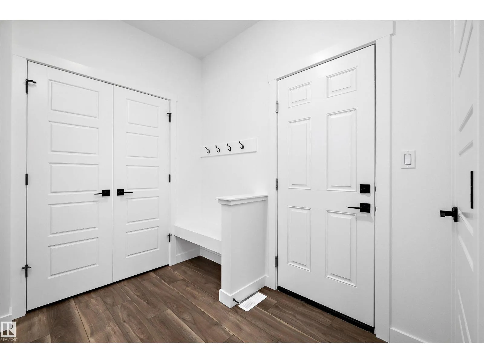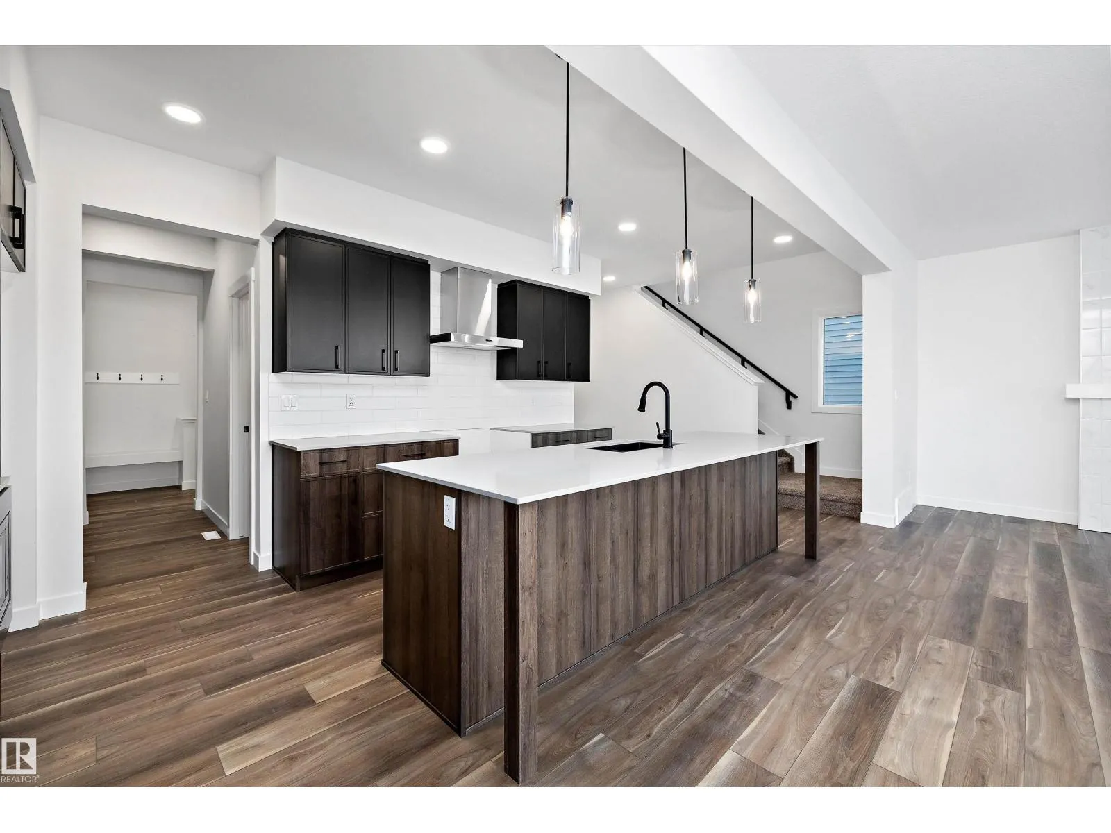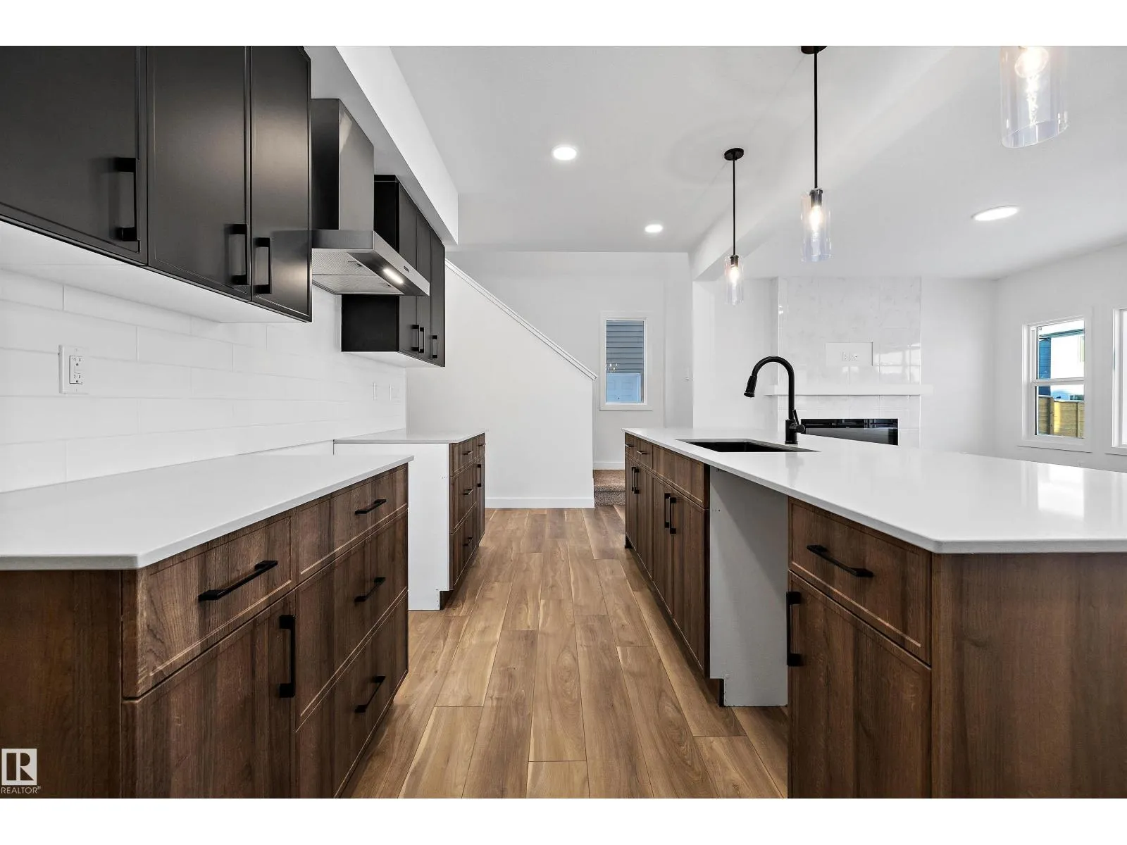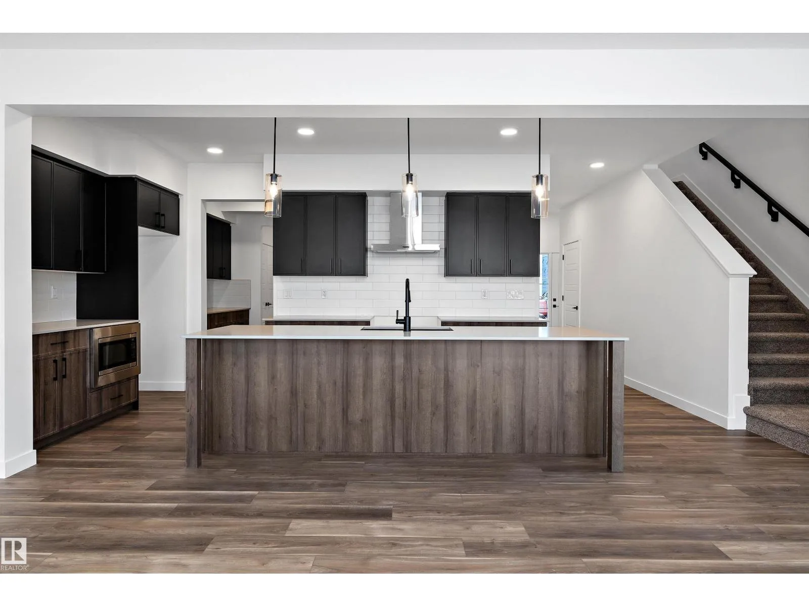 Built by Sterling Homes, this front-attached home in The Uplands at Riverview blends elevated style with family-focused design. Triple-pane windows and 9â ceilings fill the main floor with natural light. A welcoming foyer leads to a spacious mudroom connecting to a walk-in butlerâs pantry with prep sink and bar-fridge space. The chef-inspired kitchen offers quartz countertops, a large island with seating, custom cabinetry, chimney hood fan, built-in microwave, and full-height tile backsplash. The great room features a tiled fireplace and patio door with backyard views. Upstairs, the primary suite includes a 5-piece ensuite with glass shower, double sinks, tiled tub surround, and walk-in closet with direct laundry access. A bright bonus room, double-sink bath, and two bedrooms with walk-in closets complete the level. Finished with luxury vinyl plank flooring, upgraded black fixtures, side entrance, and basement rough-ins, this home delivers style and function in a thriving west-end community. (id:27476)
