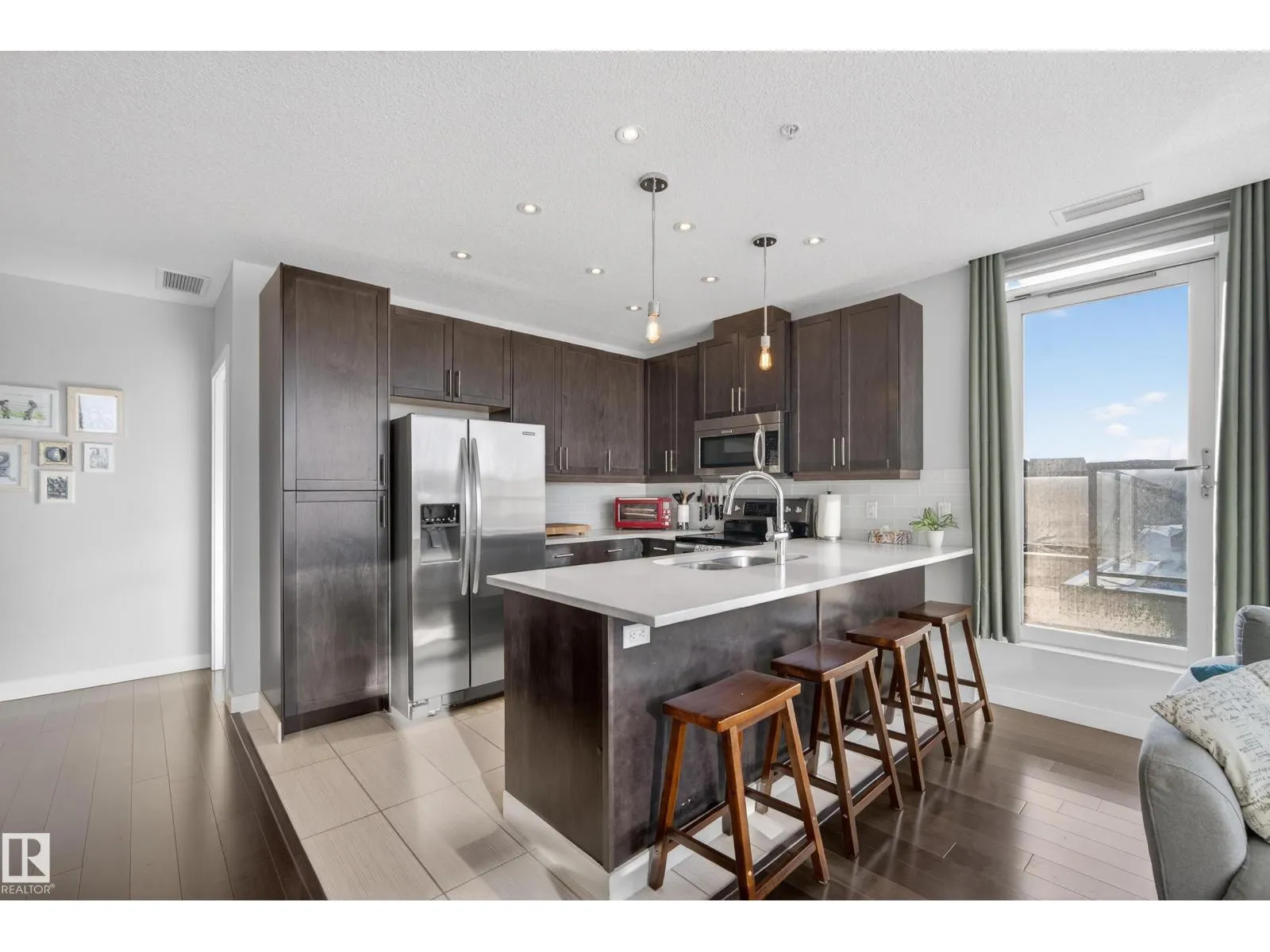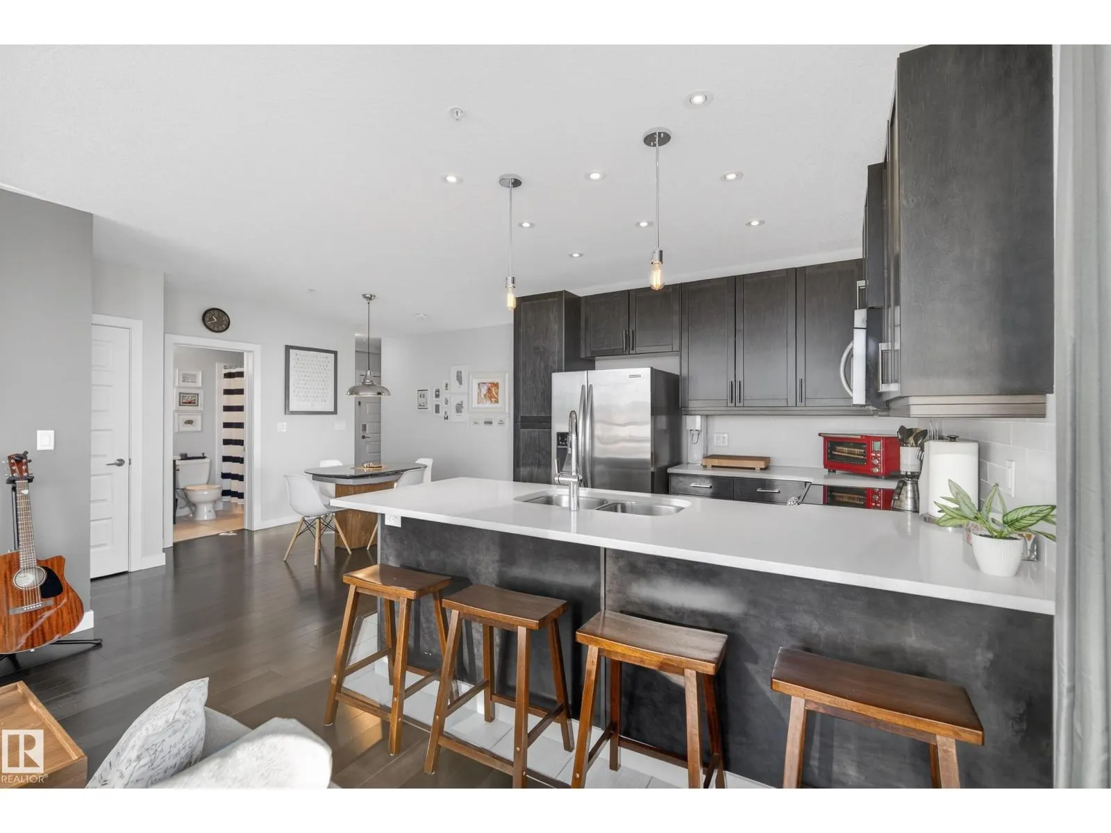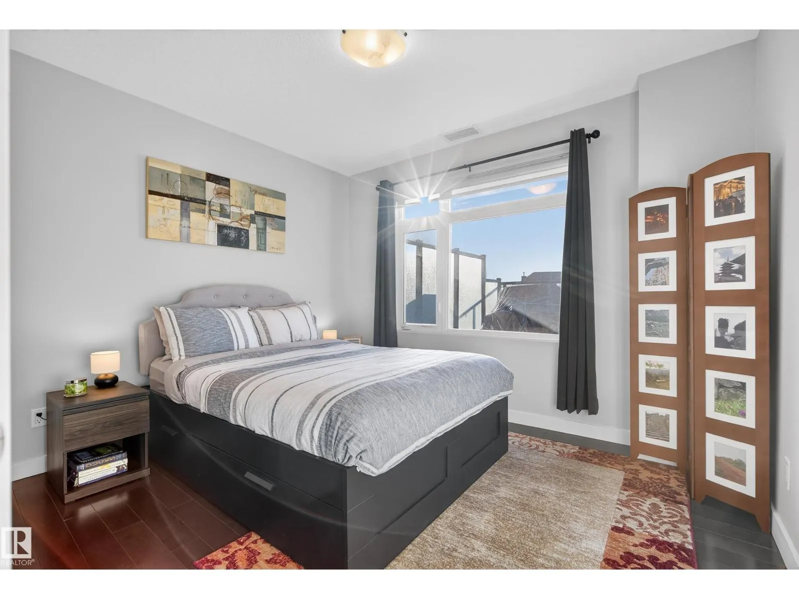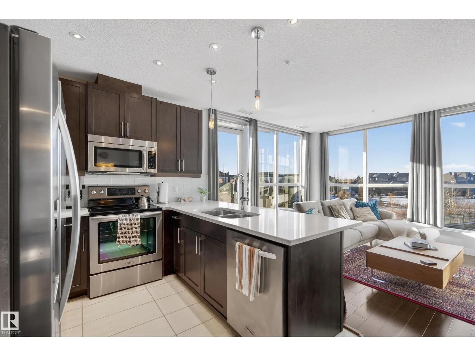 Welcome to Signature at Ambleside, ideally located in the heart of Windermere. This bright south-facing corner unit offers panoramic views of the pond and walking trails, with expansive windows that fill the home with natural light. The open-concept layout features 2 bedrooms and 2 full bathrooms, including a spacious primary suite, ensuite laundry, and elegant living and dining areas perfect for entertaining. Step outside to an oversized private patio complete with a gas line for BBQ, ideal for relaxing or hosting guests. The building features central air conditioning, a fitness centre, social room, and secure underground parking. Enjoy unbeatable convenience just steps to Currents of Windermere shopping, restaurants, cafés, and services, with nearby schools, transit, scenic trails, and quick access to Anthony Henday Drive. Luxury, location, and lifestyle come together in this impressive home. (id:27476)