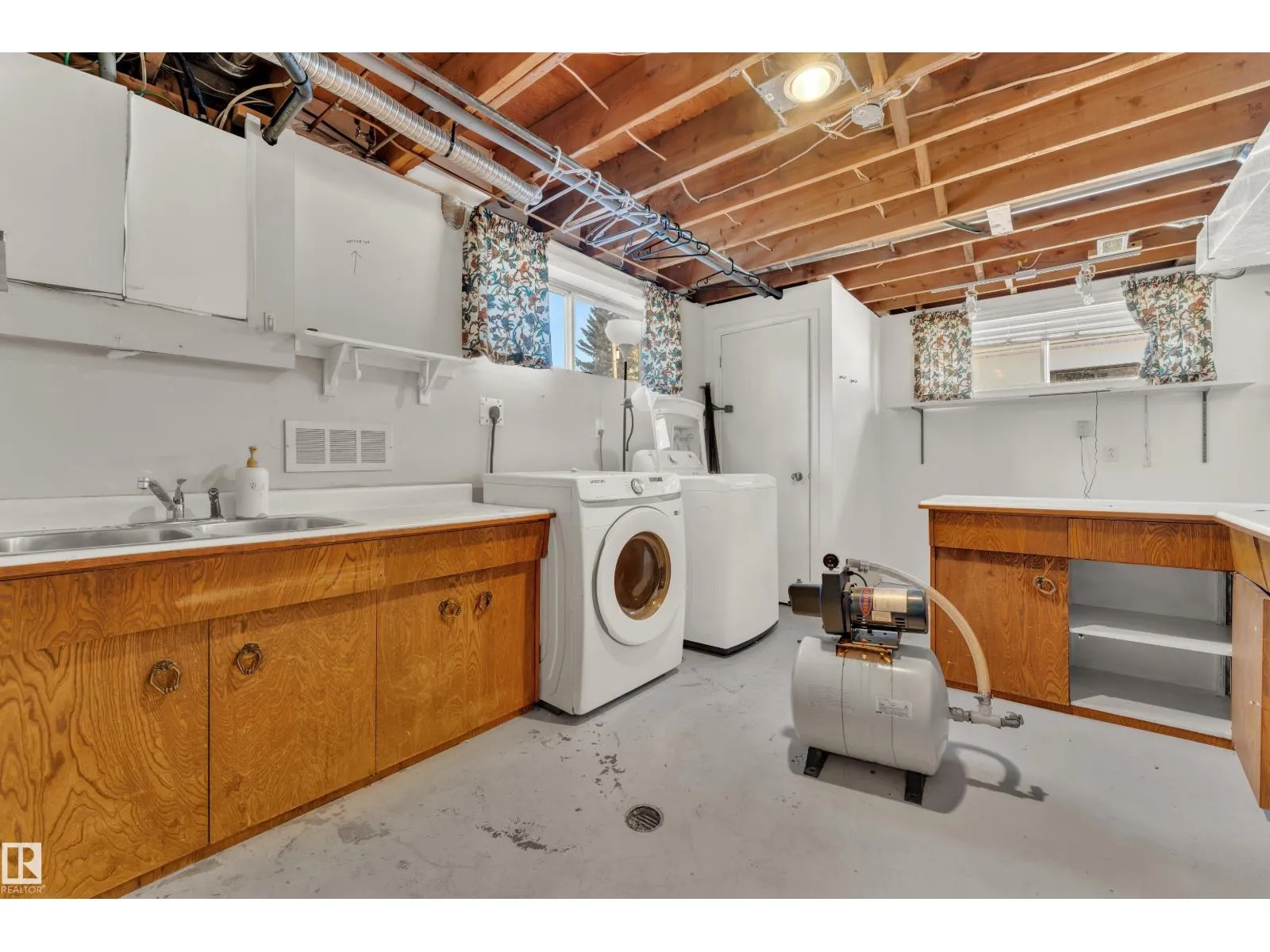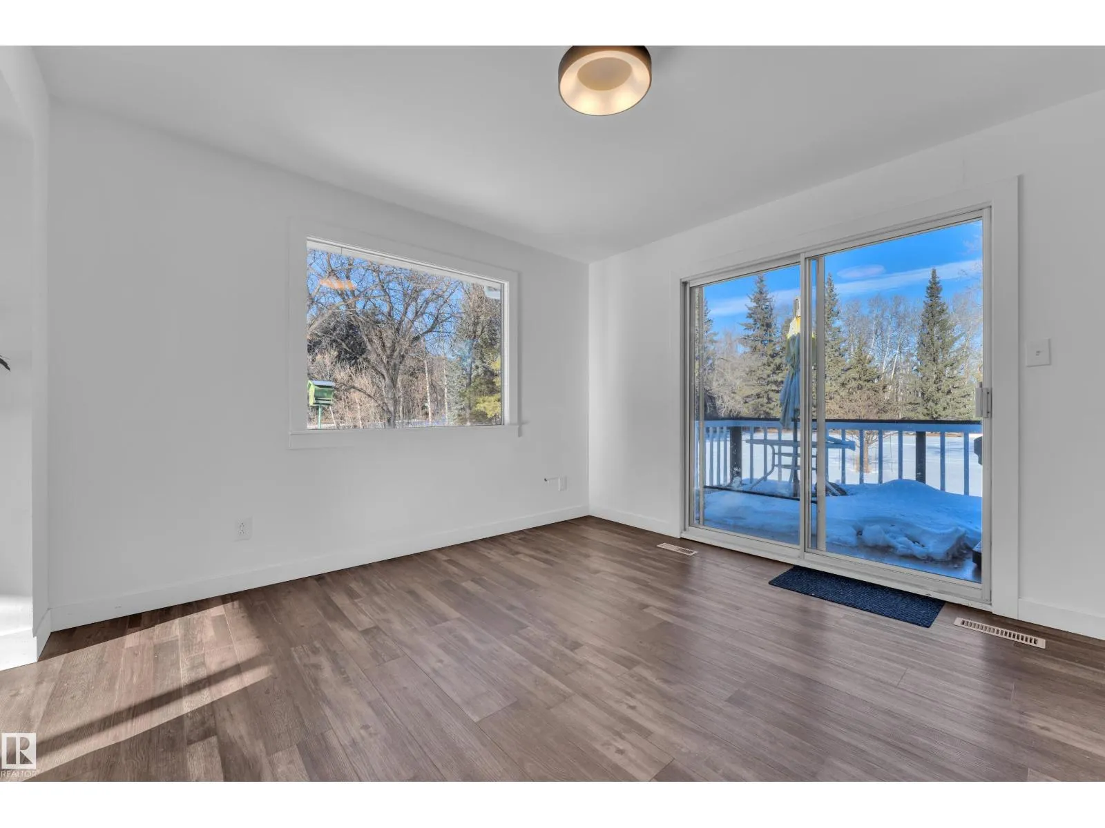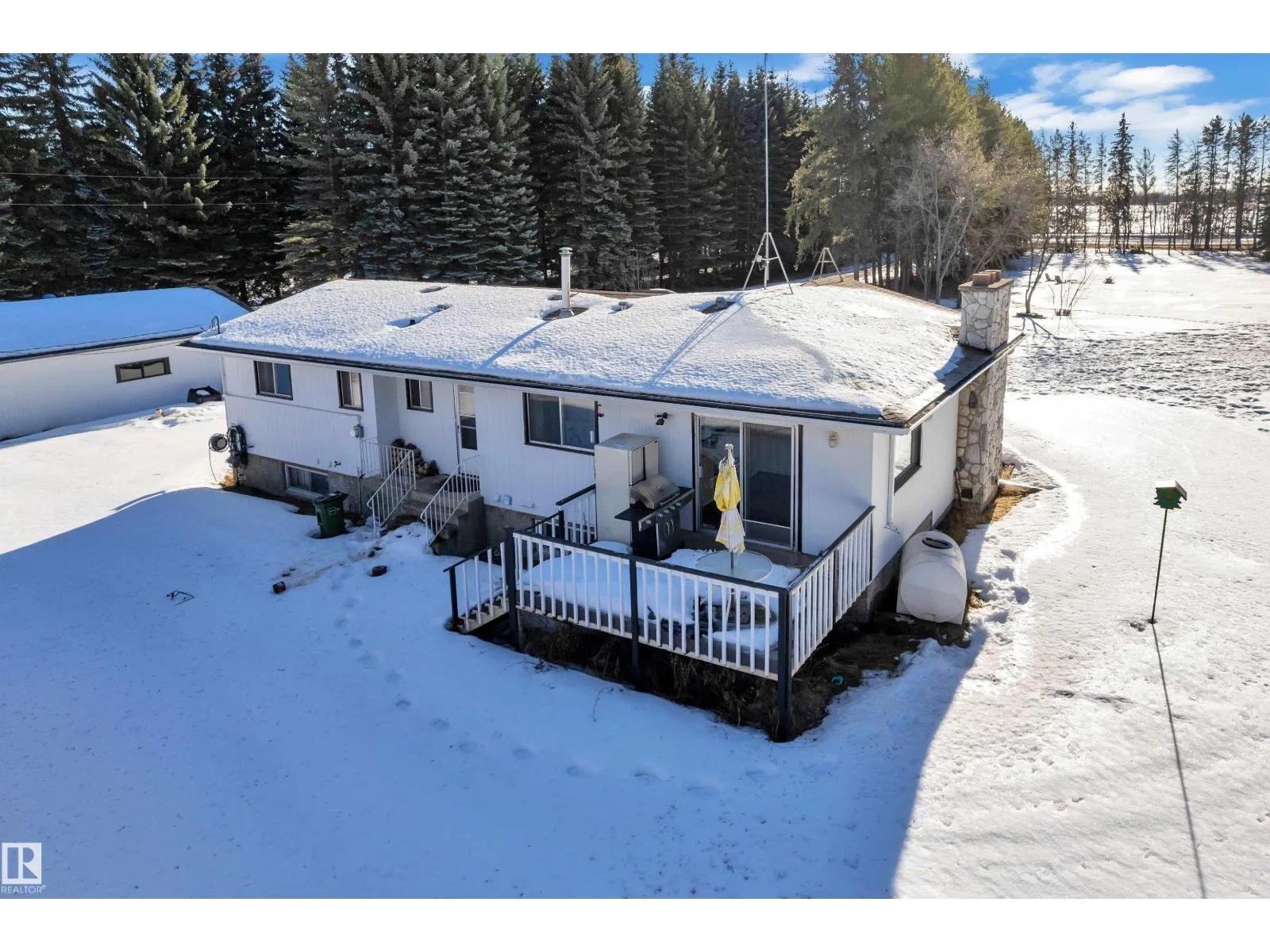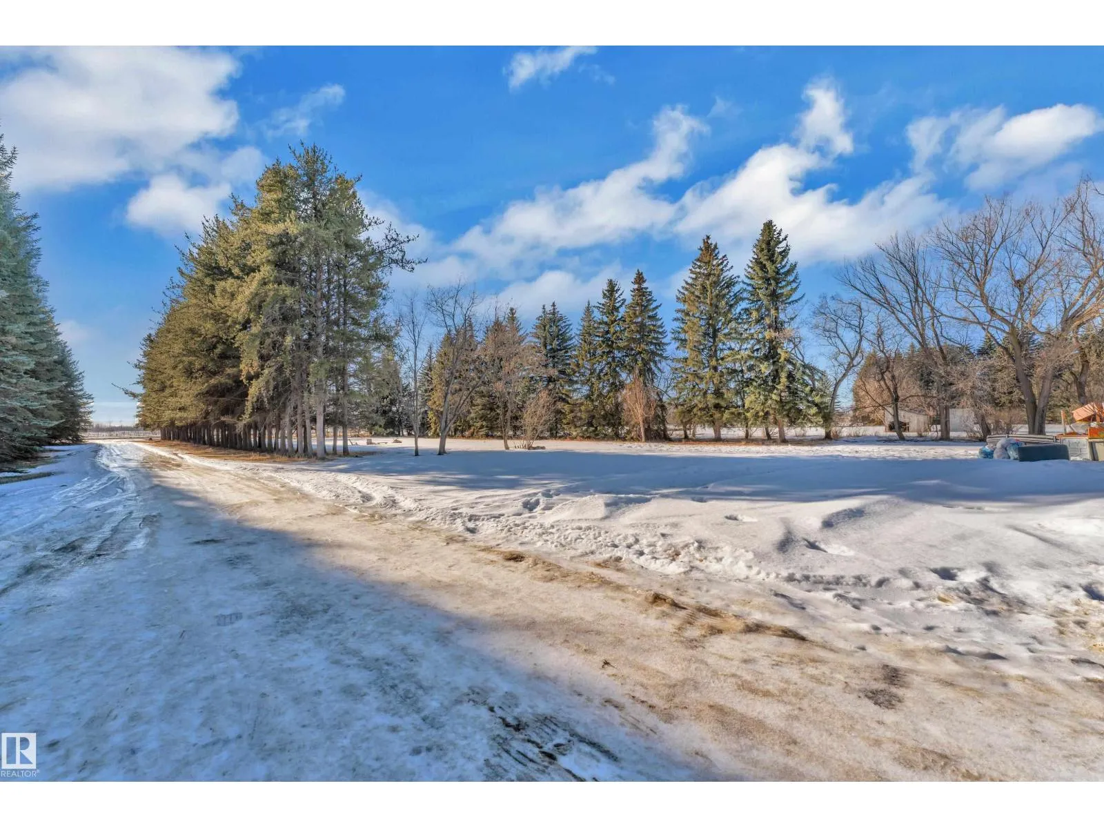 Rare opportunity to own a 3.25-acre acreage within Edmonton city limits, backing directly onto a ravine and offering the perfect blend of urban convenience and private, country-style living just minutes from grocery stores, Costco, coffee shops, and Anthony Henday. This spacious bungalow features three bedrooms on the main level, a bright south-facing living room with a wood-burning fireplace, a well-sized kitchen with eating area and access to the north-facing patio, a full 4-piece bathroom, and a 2-piece ensuite. The fully developed lower level offers a large family room with a gas fireplace, an additional bedroom, 2-piece bathroom, oversized laundry room, and ample storage. Enjoy outdoor living with a south-facing front deck and a private rear deck overlooking a beautifully landscaped, park-like yard with direct ravine access. Completing the property is a large 24â x 34â garage with parking for up to three vehicles, offering exceptional space, privacy, and versatility in a truly unique city setting (id:27476)