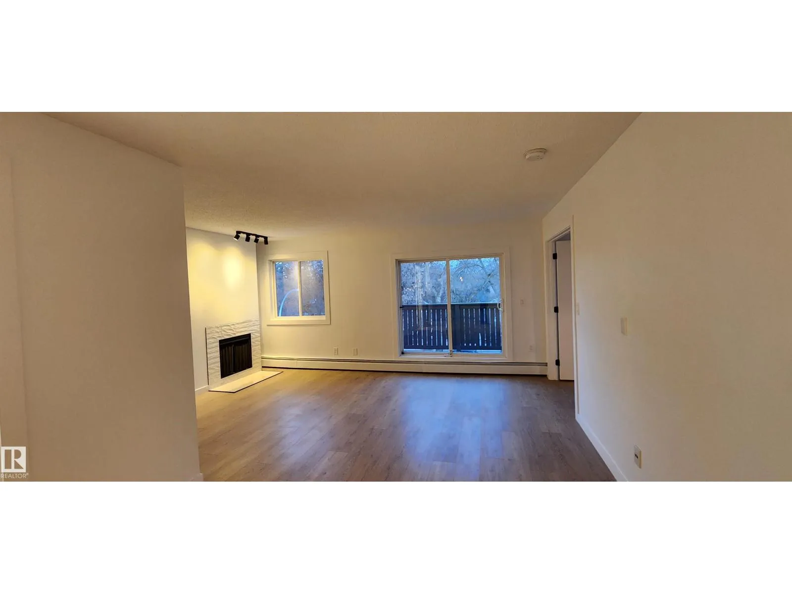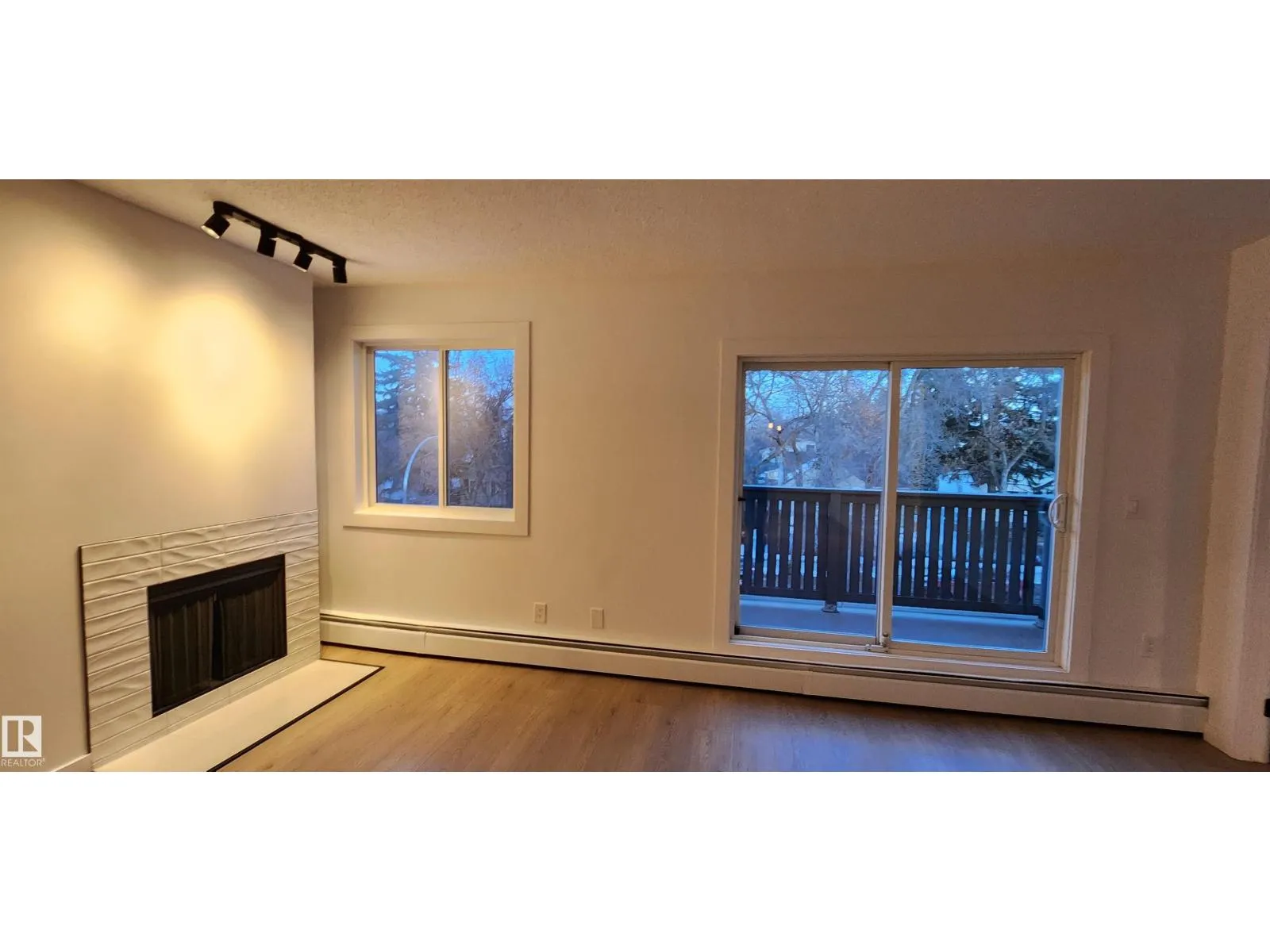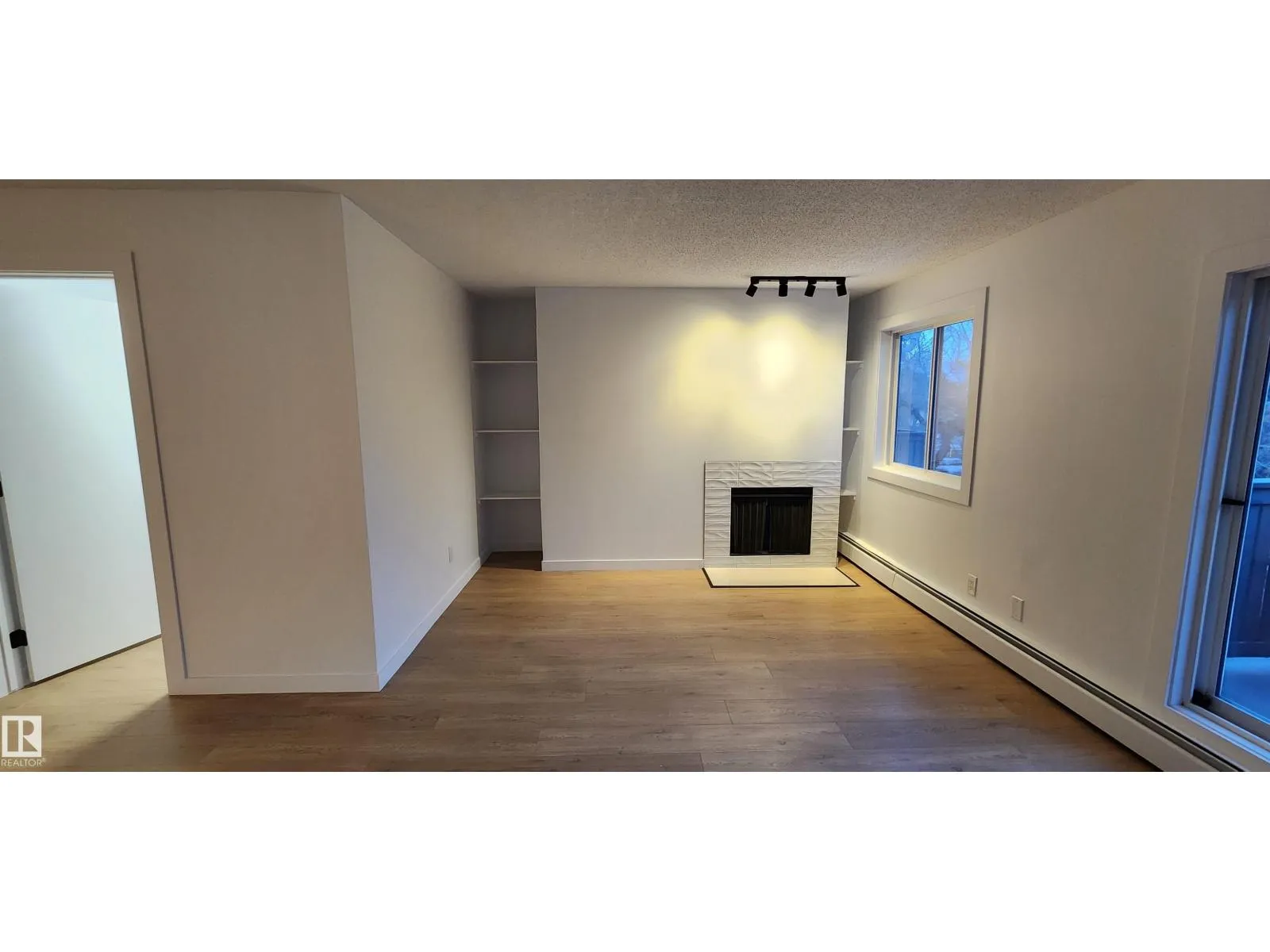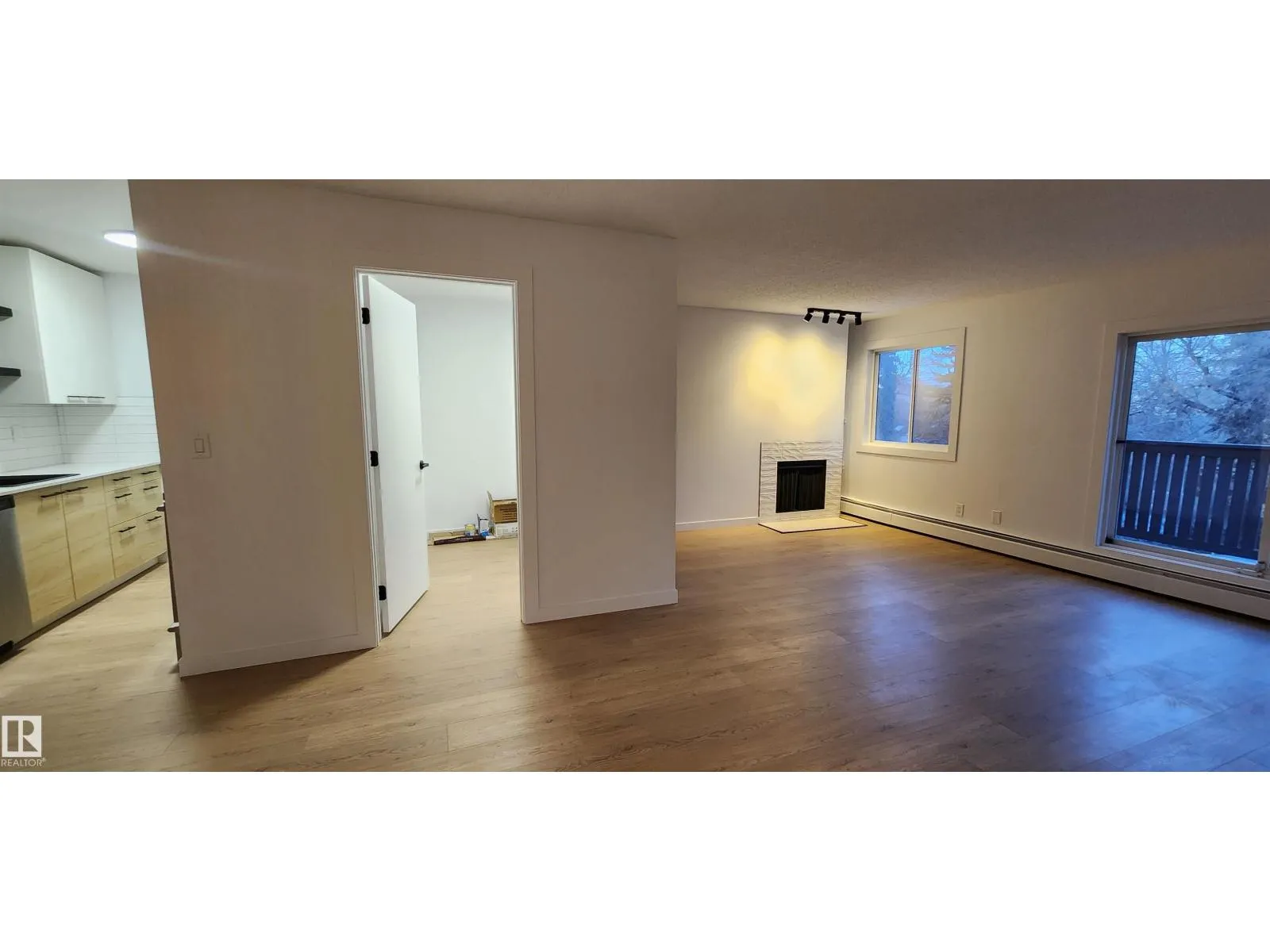 First-time buyers, students & investors alert! Welcome to this fully renovated 1-bedroom + den condoâmodern, move-in ready, and perfectly positioned in a well-maintained building in a prime central location just minutes to MacEwan University, NAIT, LRT, Rogers Place, and downtown. This stylish unit features laminate flooring throughout, brand-new stylish light fixtures, a cozy wood-burning fireplace, private balcony, and in-suite laundry. The versatile den doubles as a flex spaceâideal for a home office, gym, or reading nook. The sleek kitchen shines with stainless steel appliances, quartz countertops, modern cabinetry, and a Silgranit sink, while the fully renovated bathroom offers crisp white tile and new cabinets. The spacious primary bedroom includes French doors and a walk-in closet with ample storage. An energized parking stall and elevator access complete this exceptional city-living package. Donât miss your chance to view this stunning, fully upgraded condoâmove-in ready and perfectly located! (id:27476)