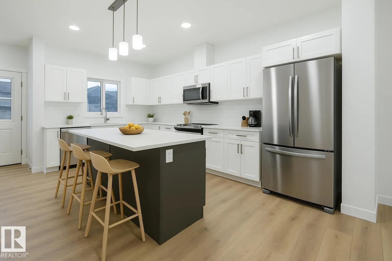 NO CONDO FEES! Crystallina Nera is rooted in natural beauty. A lush forest and a storm water pond surrounded by paved walking trails are ideal for nature lovers. The 'Deacon-T' END UNIT offers the perfect blend of comfort and style. Spanning approx. 1613 SQFT, this home offers a SIDE ENTRANCE, thoughtfully designed layout & modern features. As you step inside, you'll be greeted by an inviting open concept main floor that seamlessly integrates the living, dining, and kitchen areas. Abundant natural light flowing through large windows highlights the elegant laminate and vinyl flooring, creating a warm atmosphere for daily living and entertaining. Upstairs, you'll find a bonus room + 3 bedrooms that provide comfortable retreats for the entire family. The primary bedroom is a true oasis, complete with an en-suite bathroom for added convenience. $5000 BRICK CREDIT! PICTURES ARE OF SHOW HOME; ACTUAL HOME, PLANS, FIXTURES, AND FINISHES MAY VARY AND ARE SUBJECT TO CHANGE WITHOUT NOTICE. (id:27476)