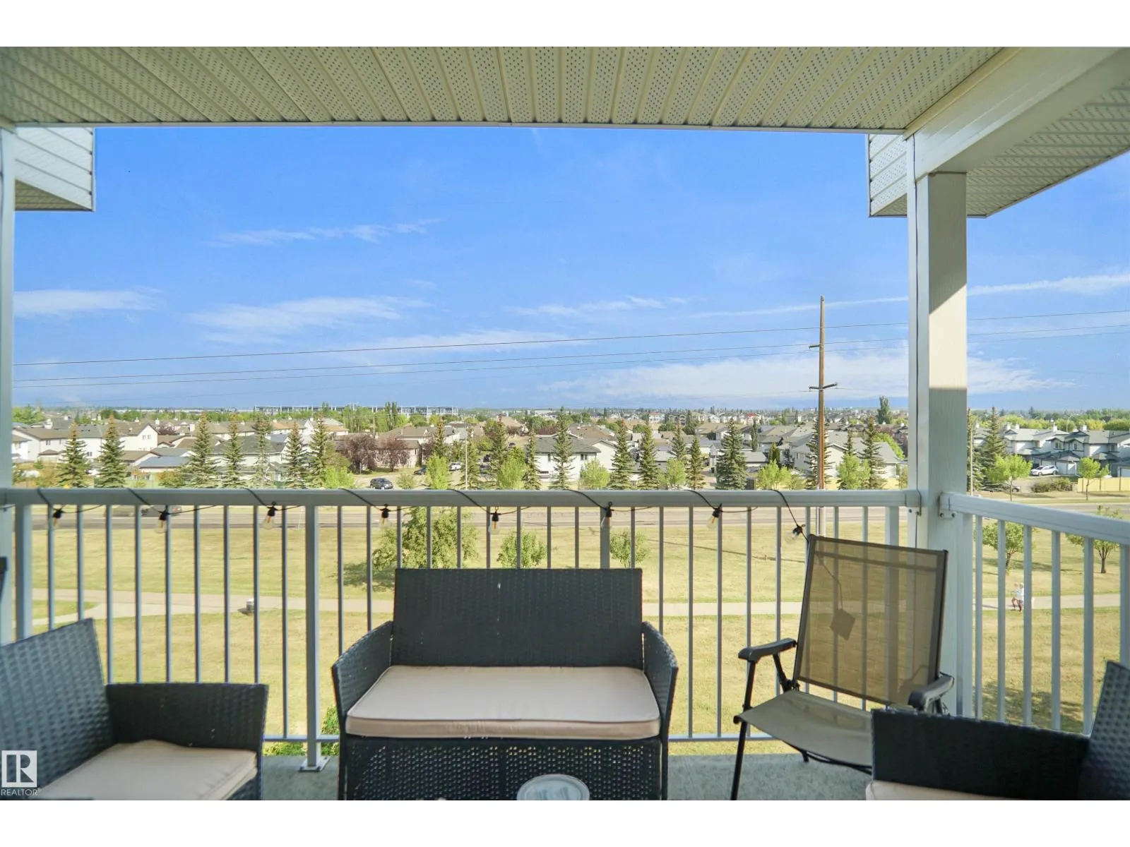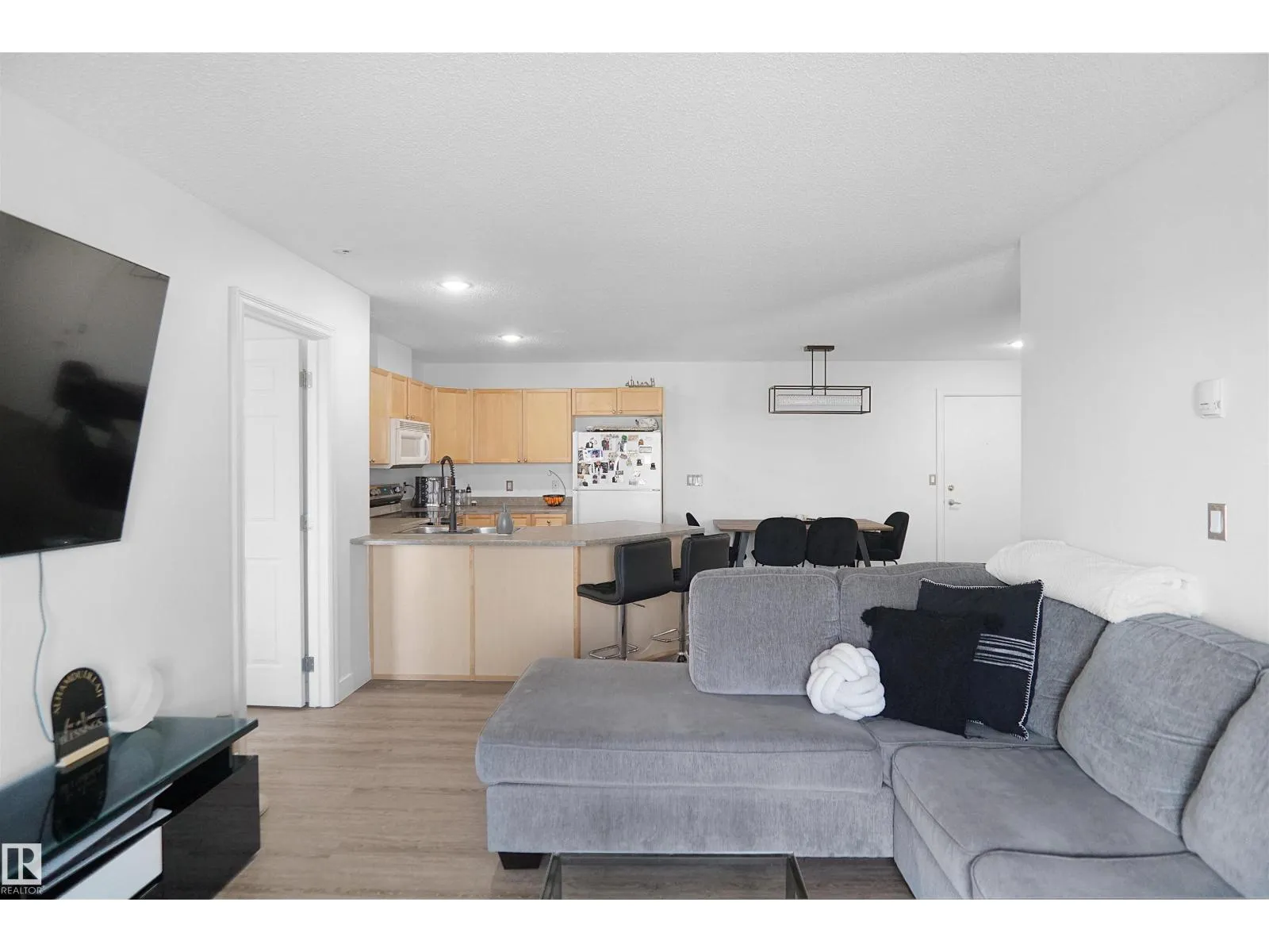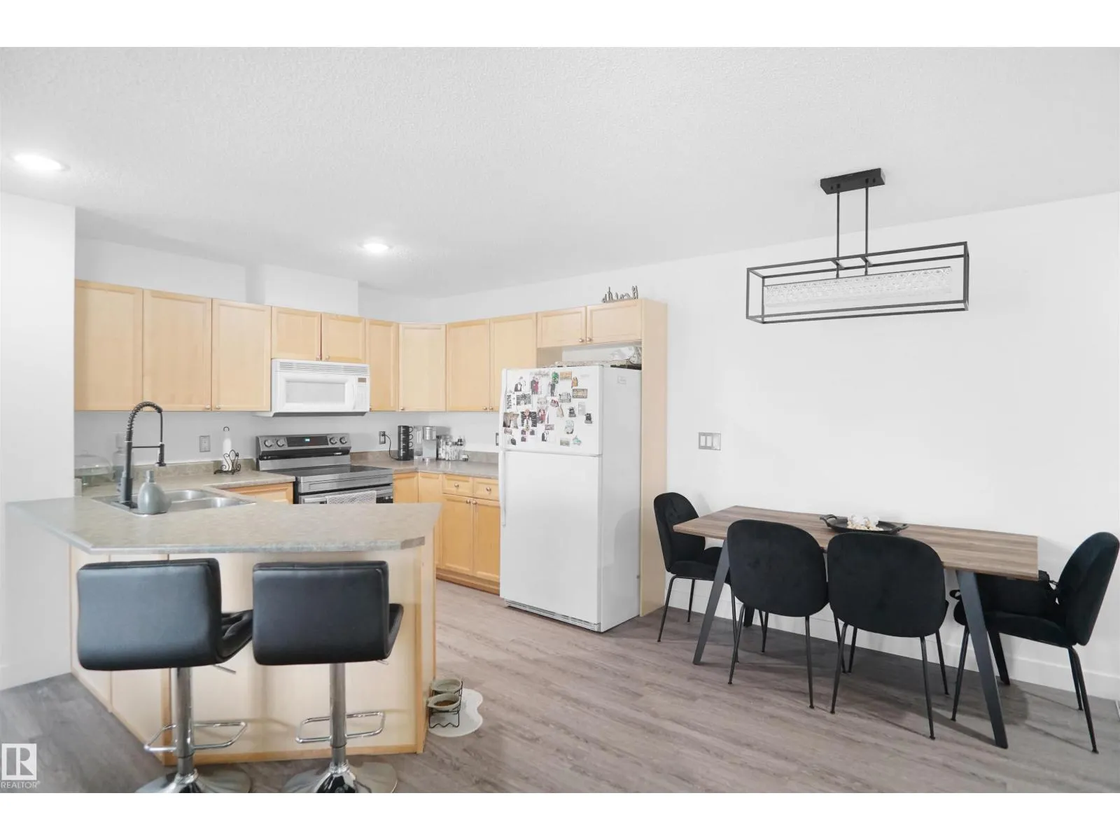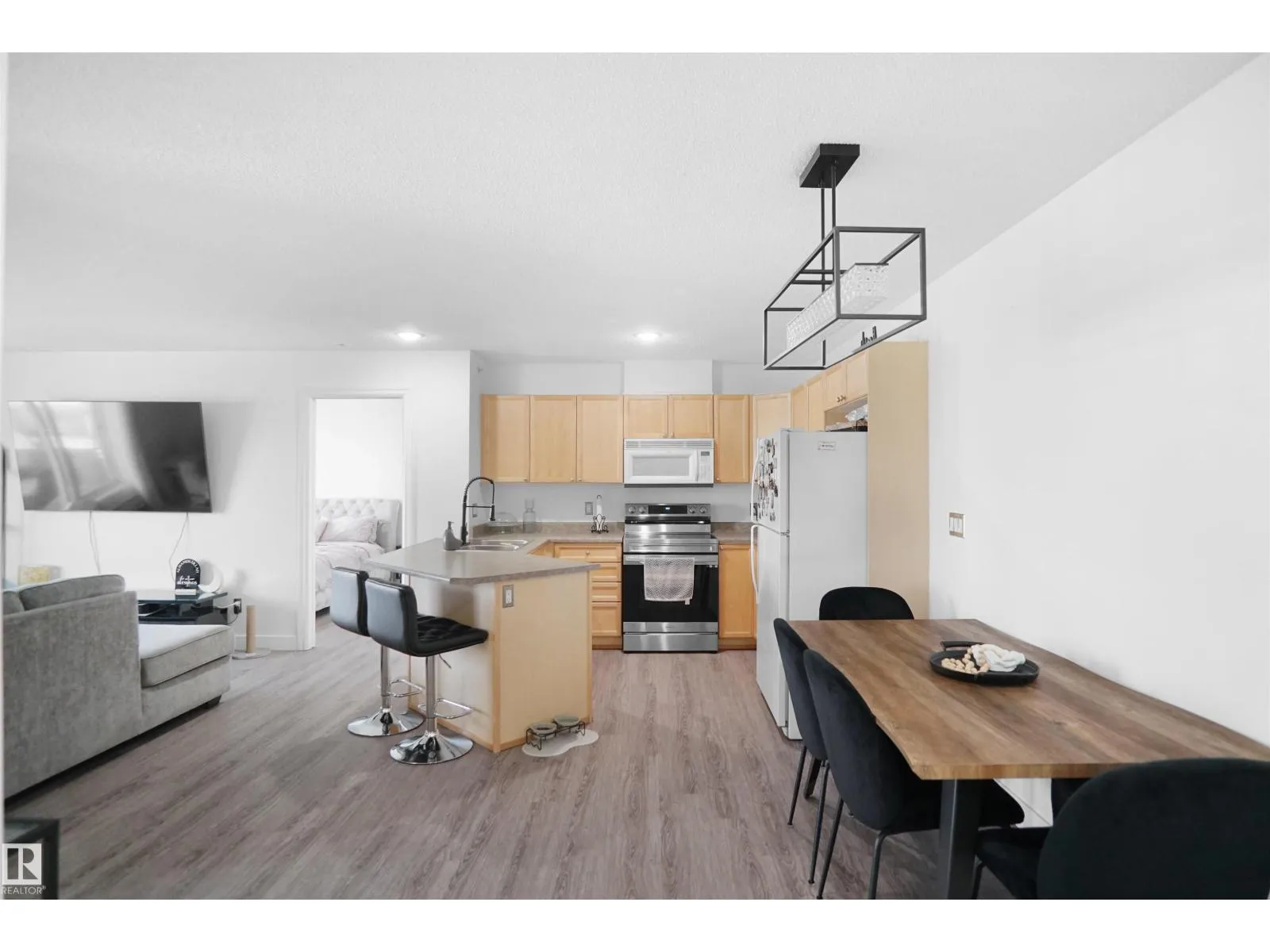 Welcome home to this top-floor 2-bedroom, 2-bathroom unit offering 880 sq ft of open-concept living in Skyview Landing complete with a titled underground parking stall and balcony overlooking green space and walking trails. The bright, functional layout features a U-shaped kitchen with maple cabinetry, laminate countertops with extended eating bar, and a garburator. The spacious dining nook flows into the cozy living area, perfect for entertaining or relaxing. The primary suite includes a large walk-through closet and private 3-piece ensuite with a double walk-in shower. On the opposite side of the unit, you'll find the second bedroom and a full 4-piece bath which is ideal for guests or a roommate. Additional features include in-suite laundry, in-suite storage, and access to great building amenities like fitness and social room. Condo fees include heat and water. Pet-friendly building (with board approval) and located in a well-managed complex close to shopping, transit, and schools. (id:27476)