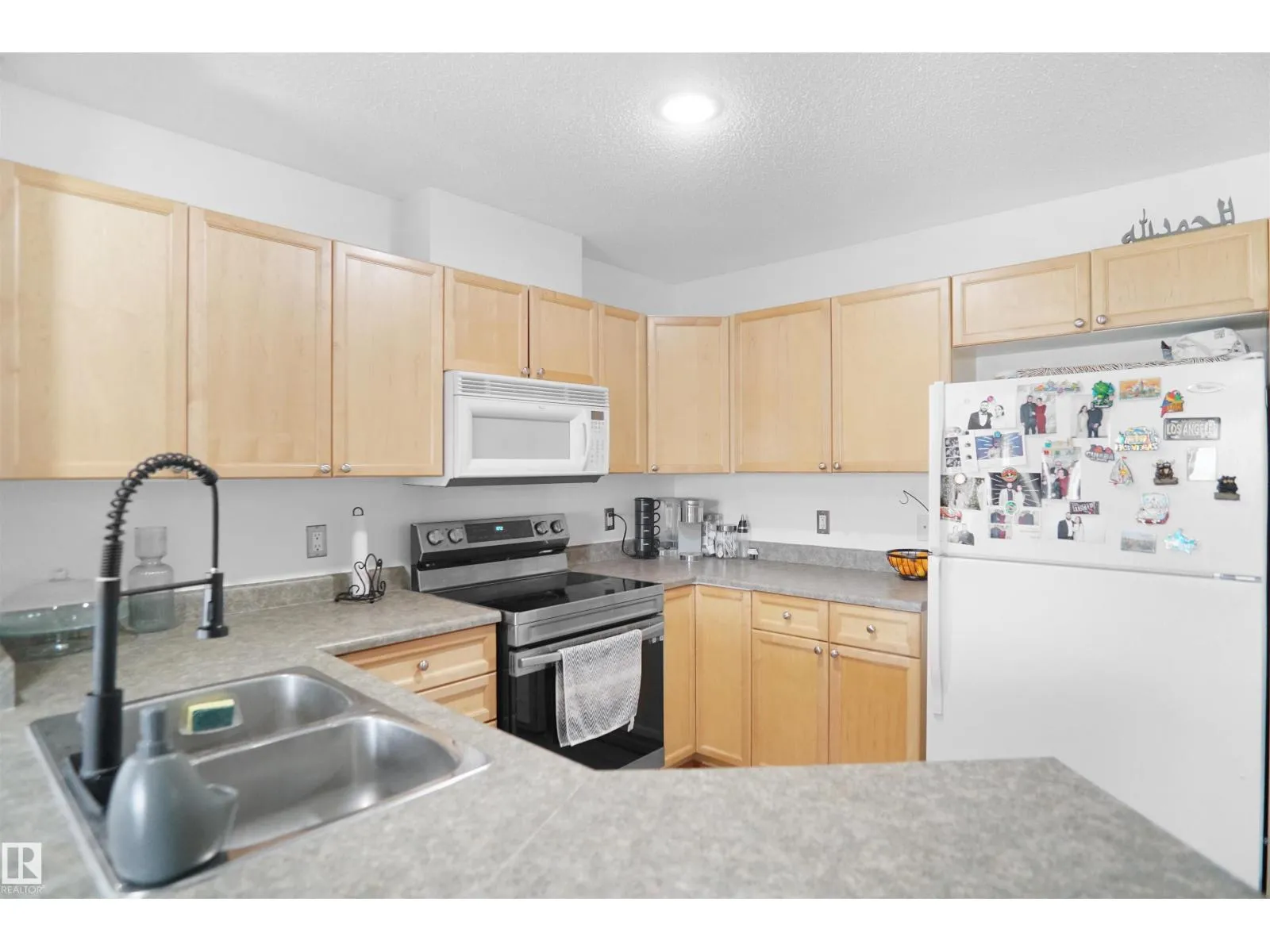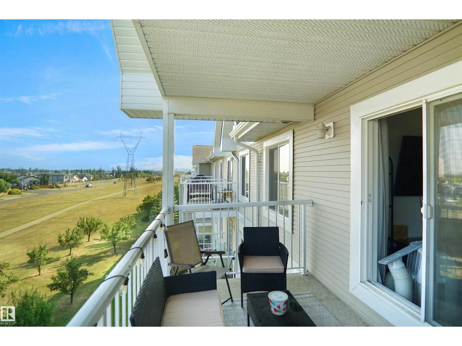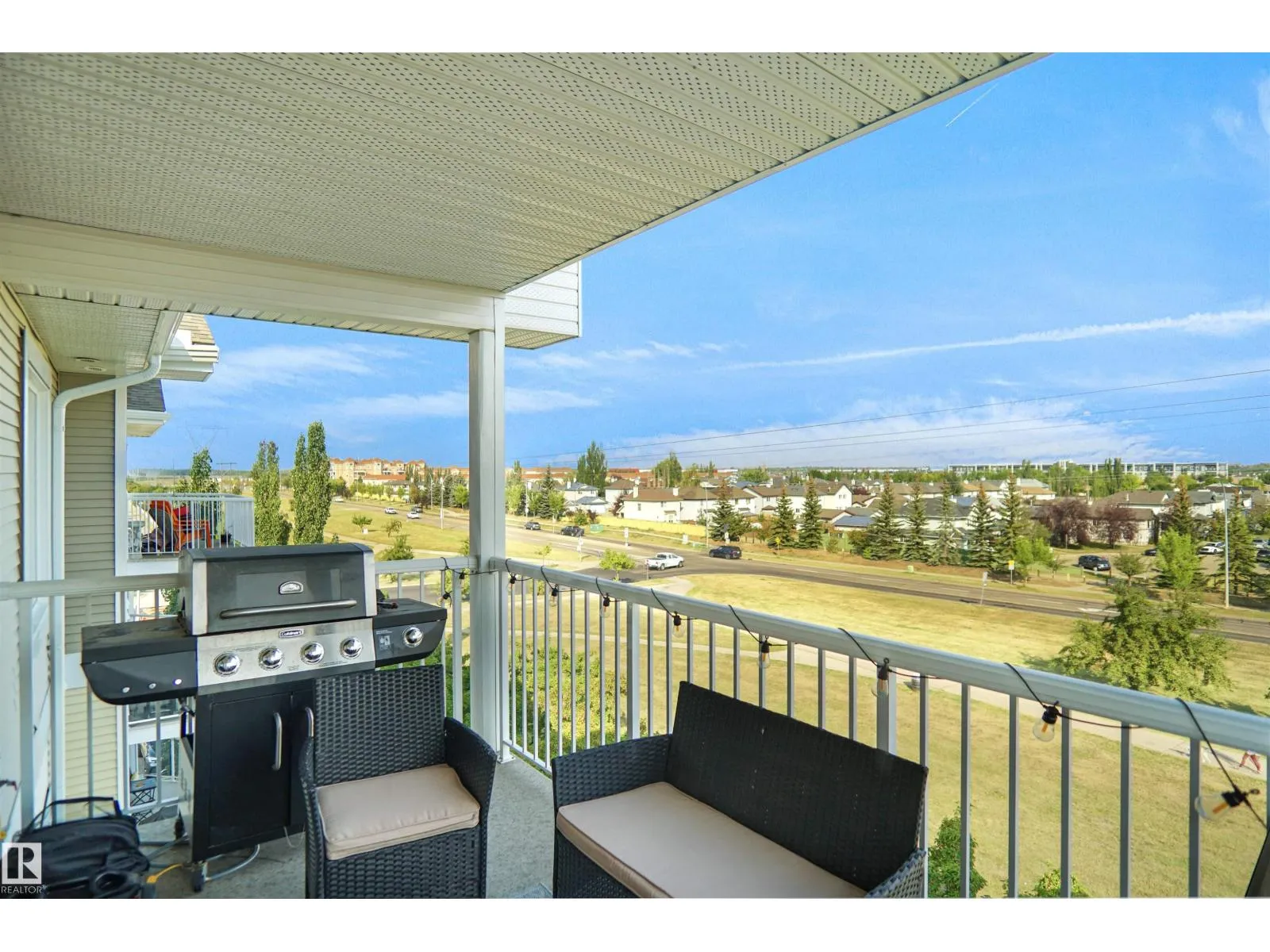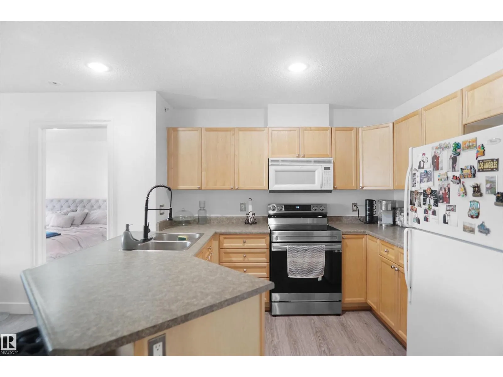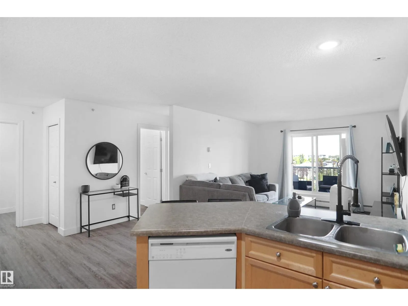Welcome home to this top-floor 2-bedroom, 2-bathroom unit offering 880 sq ft of open-concept living in Skyview Landing complete with a titled underground parking stall and balcony overlooking green space and walking trails. The bright, functional layout features a U-shaped kitchen with maple cabinetry, laminate countertops with extended eating bar, and a garburator. The spacious dining nook flows into the cozy living area, perfect for entertaining or relaxing. The primary suite includes a large walk-through closet and private 3-piece ensuite with a double walk-in shower. On the opposite side of the unit, you'll find the second bedroom and a full 4-piece bath which is ideal for guests or a roommate. Additional features include in-suite laundry, in-suite storage, and access to great building amenities like fitness and social room. Condo fees include heat and water. Pet-friendly building (with board approval) and located in a well-managed complex close to shopping, transit, and schools. (id:27476)
