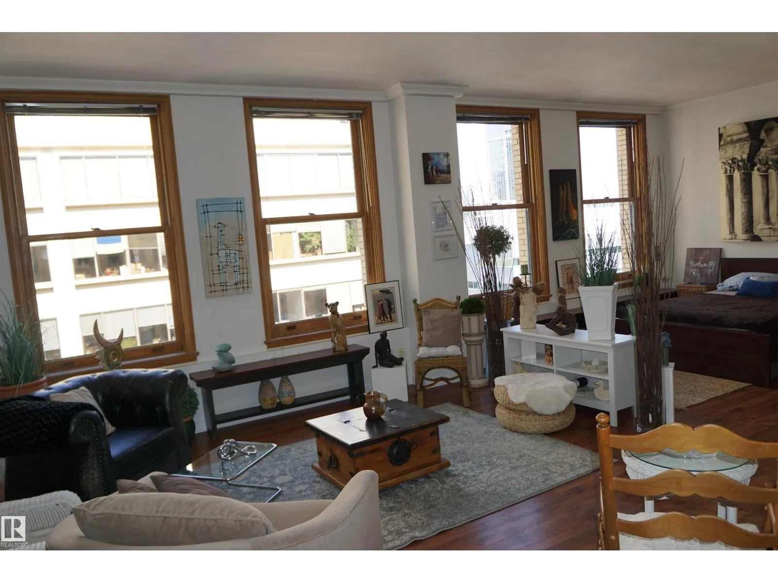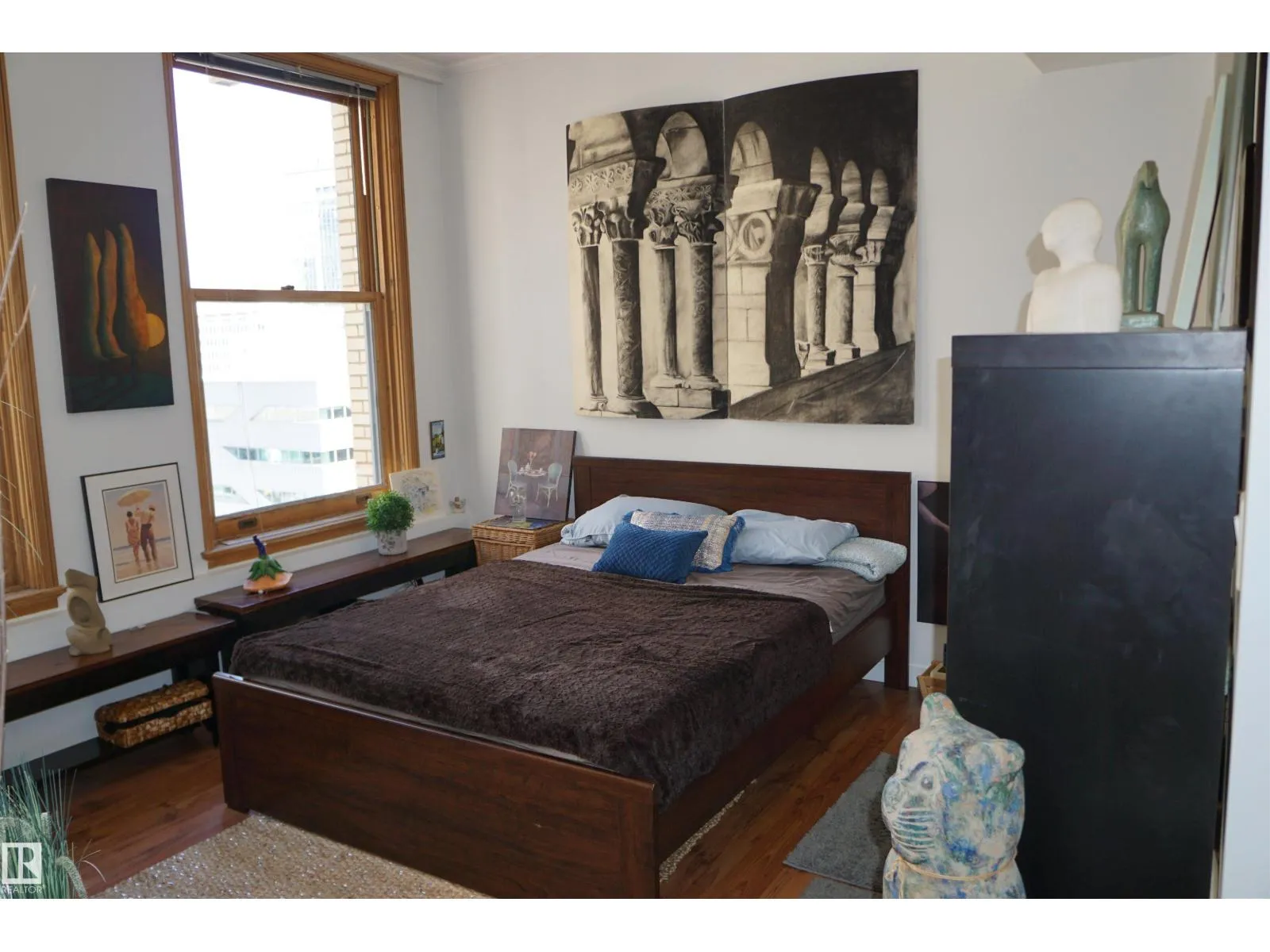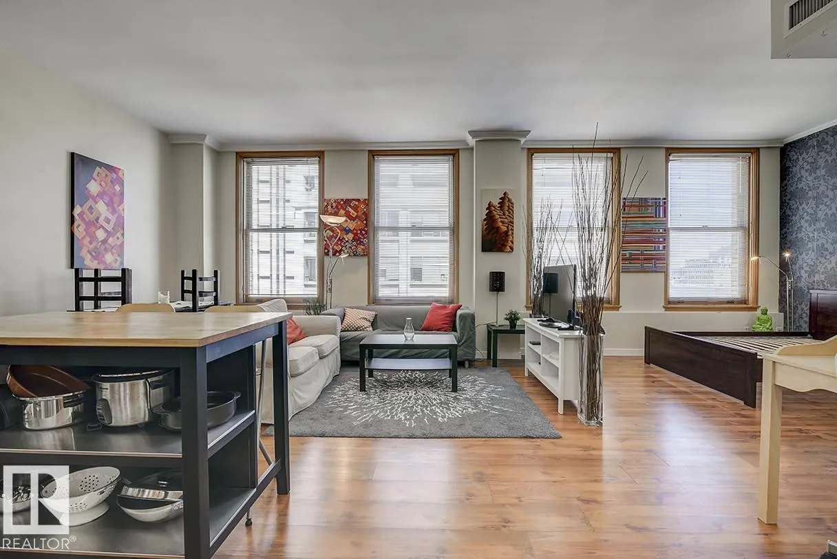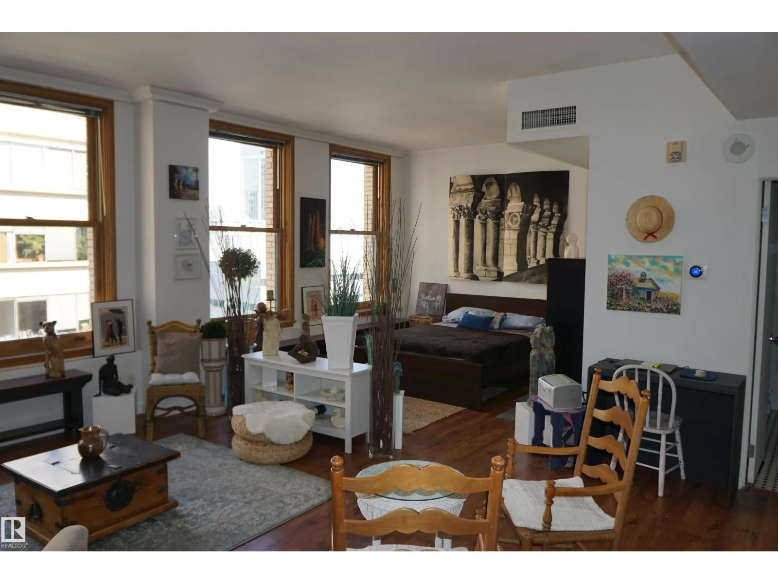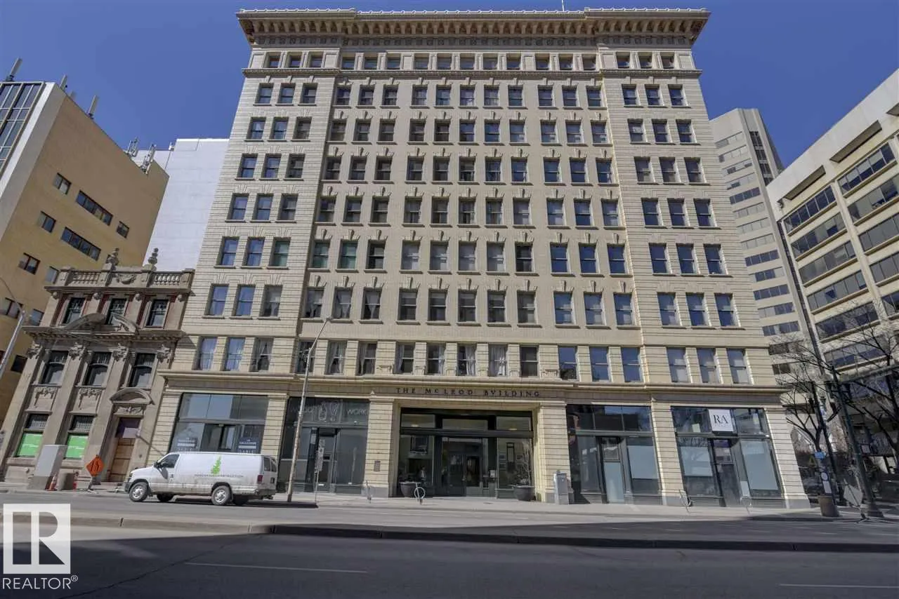 Experience elevated downtown living in this beautifully updated north-facing loft in the iconic McLeod Building Built in 1915 and designated as a Provincial Historic Resource, this landmark was constructed with such precision and quality that it still stands today as a symbol of Edmontonâs early 20th-century growth and architectural ambition. Perched above the bustle, Unit #808 offers a peaceful urban retreat overlooking Rice Howard Way, where leafy summer trees, vibrant patios, and pedestrian charm set the scene. Inside, youâll enjoy a spacious open-concept layout flooded with natural light, soaring ceilings, and character-rich original wood-framed windows. Recent upgrades with a renovated kitchen with modern appliances, stylish flooring and tilework. The condo combines timeless heritage with modern convenience â and the condo fees include power, heat, and water, adding value and ease to your lifestyle. Youâre just steps from the LRT, bus routes, and some of Edmontonâs most notable landmarks. (id:27476)