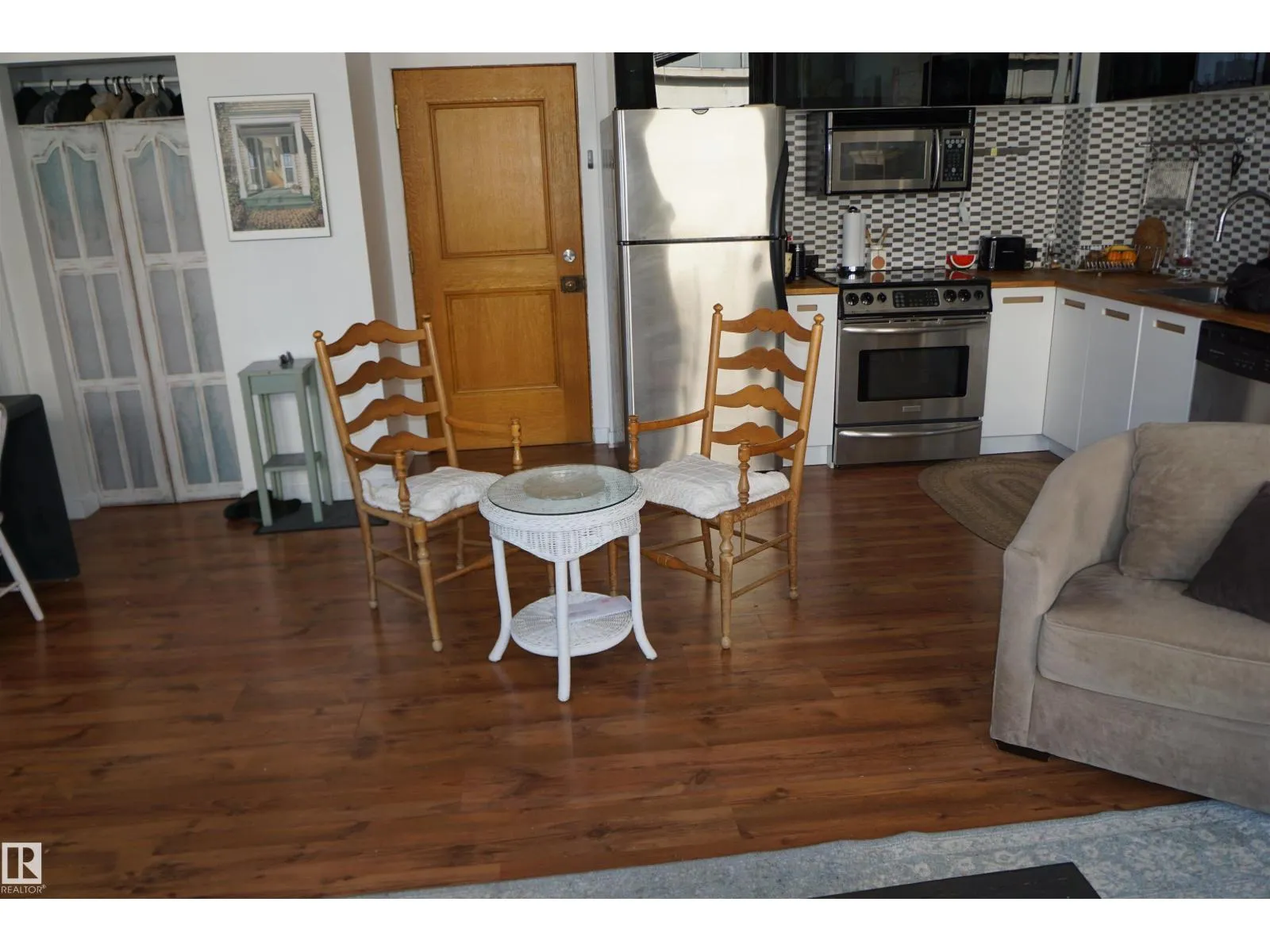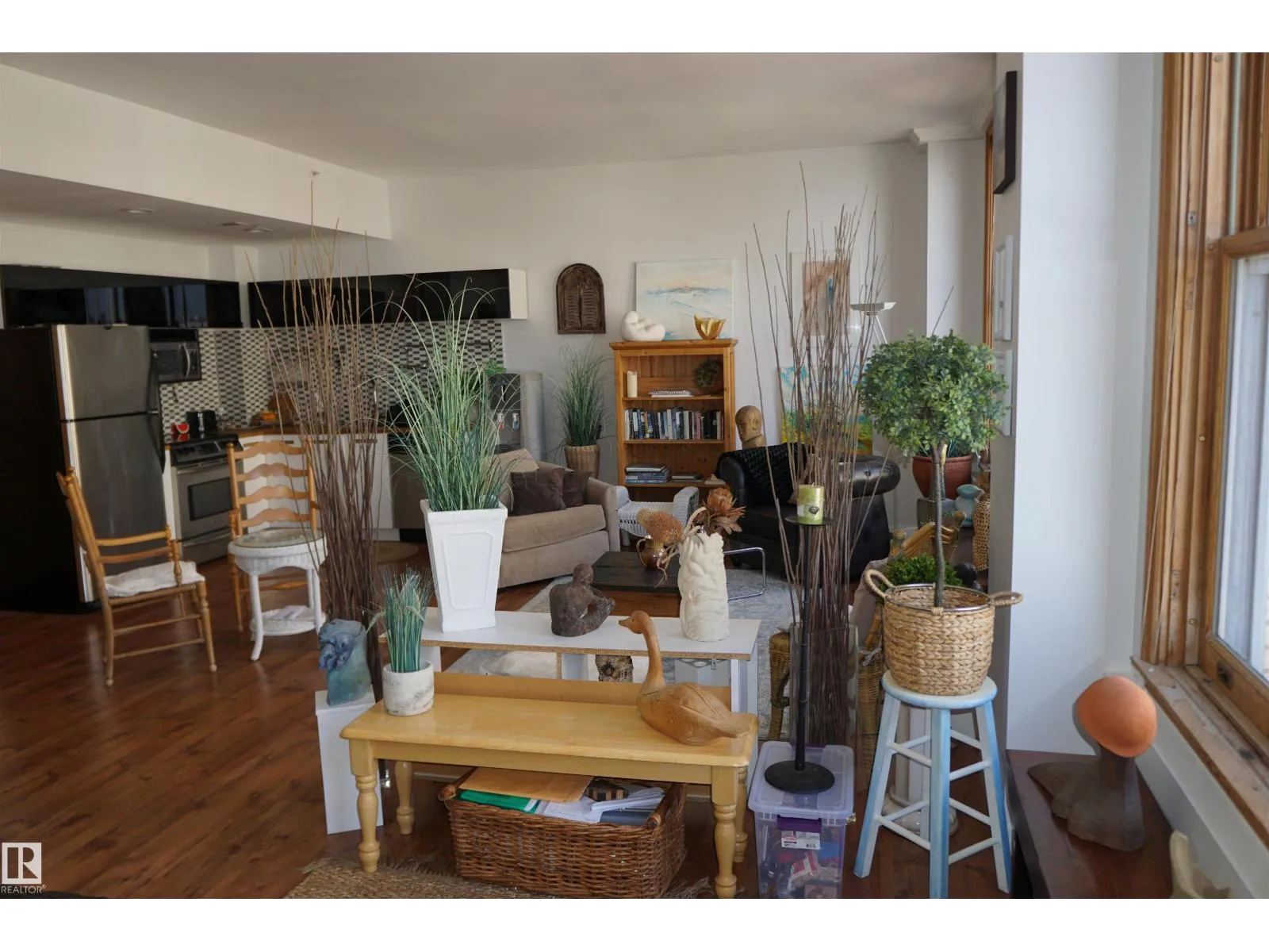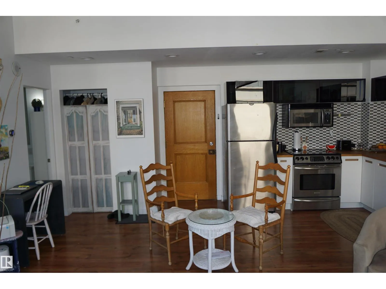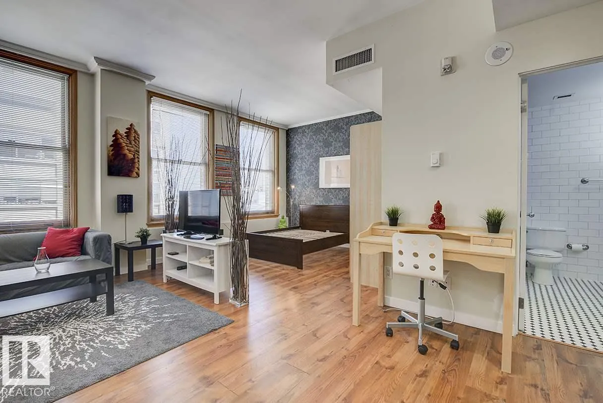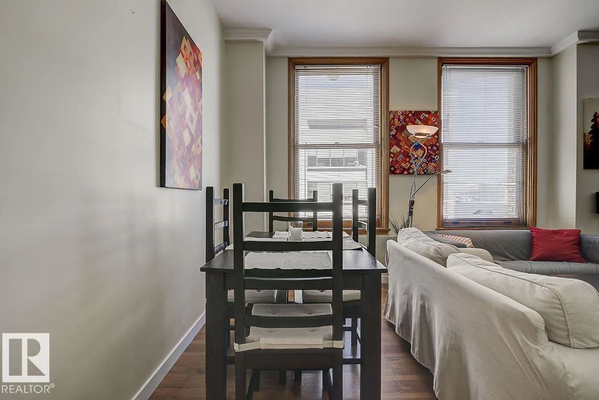 Experience elevated downtown living in this beautifully updated north-facing loft in the iconic McLeod Building Built in 1915 and designated as a Provincial Historic Resource, this landmark was constructed with such precision and quality that it still stands today as a symbol of Edmontonâs early 20th-century growth and architectural ambition. Perched above the bustle, Unit #808 offers a peaceful urban retreat overlooking Rice Howard Way, where leafy summer trees, vibrant patios, and pedestrian charm set the scene. Inside, youâll enjoy a spacious open-concept layout flooded with natural light, soaring ceilings, and character-rich original wood-framed windows. Recent upgrades with a renovated kitchen with modern appliances, stylish flooring and tilework. The condo combines timeless heritage with modern convenience â and the condo fees include power, heat, and water, adding value and ease to your lifestyle. Youâre just steps from the LRT, bus routes, and some of Edmontonâs most notable landmarks. (id:27476)