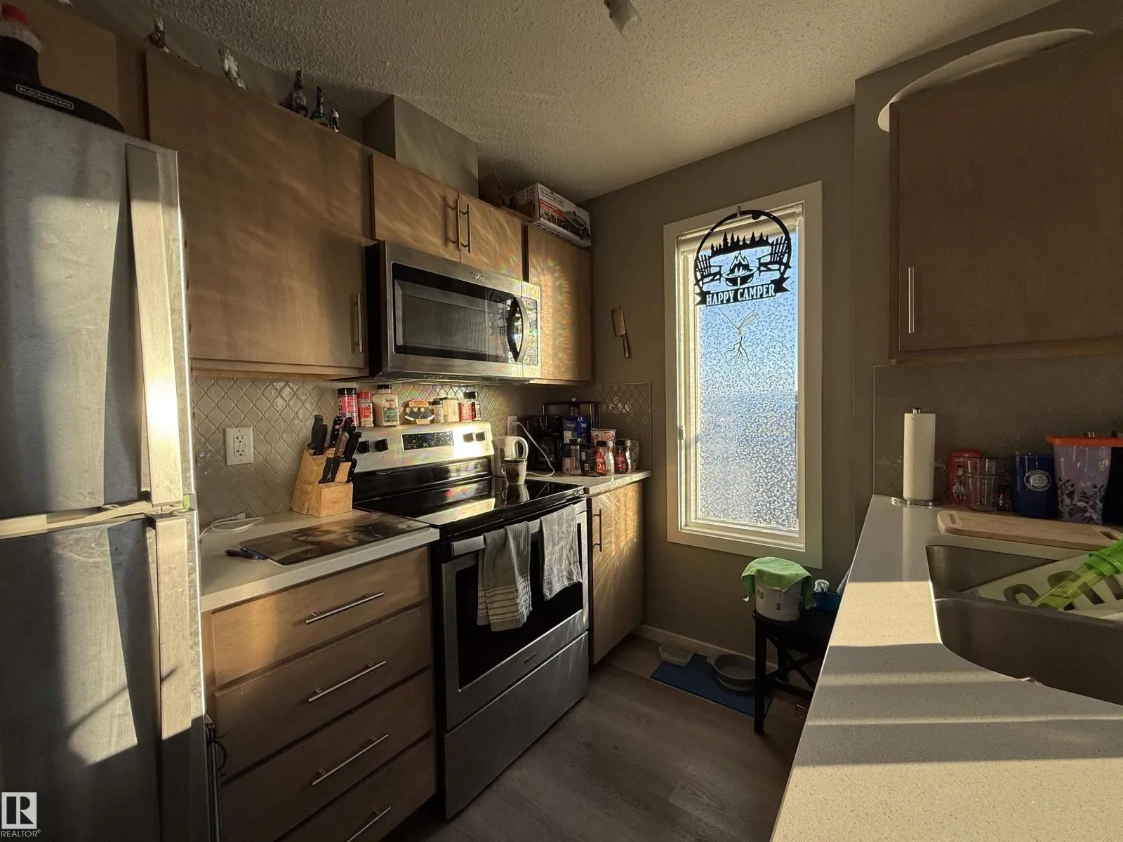 THIS IS THE ONE! The perfect corner-unit condo with underground parking! This beautifully finished 2-bedroom, 2-bathroom home is filled with natural light thanks to its abundance of large windows and prime corner location. Durable vinyl flooring flows throughout, while patio doors open to an oversized covered patio, the perfect spot to relax and enjoy warm summer days. The kitchen features quartz countertops, stainless steel appliances, ample cabinetry, and overlooks the spacious open-concept living and dining areas, ideal for both everyday living and entertaining. The primary bedroom offers a walk-in closet and a private 4-piece ensuite. The second bedroom offers privacy being on the opposite side of the unit. Completing this home is in-suite laundry with storage and a stylish main bathroom. Perfect for first-time buyers, young professionals, or a growing family, this home is ideally located across from a park and dog park, and just steps from all the amenities you need. (id:27476)