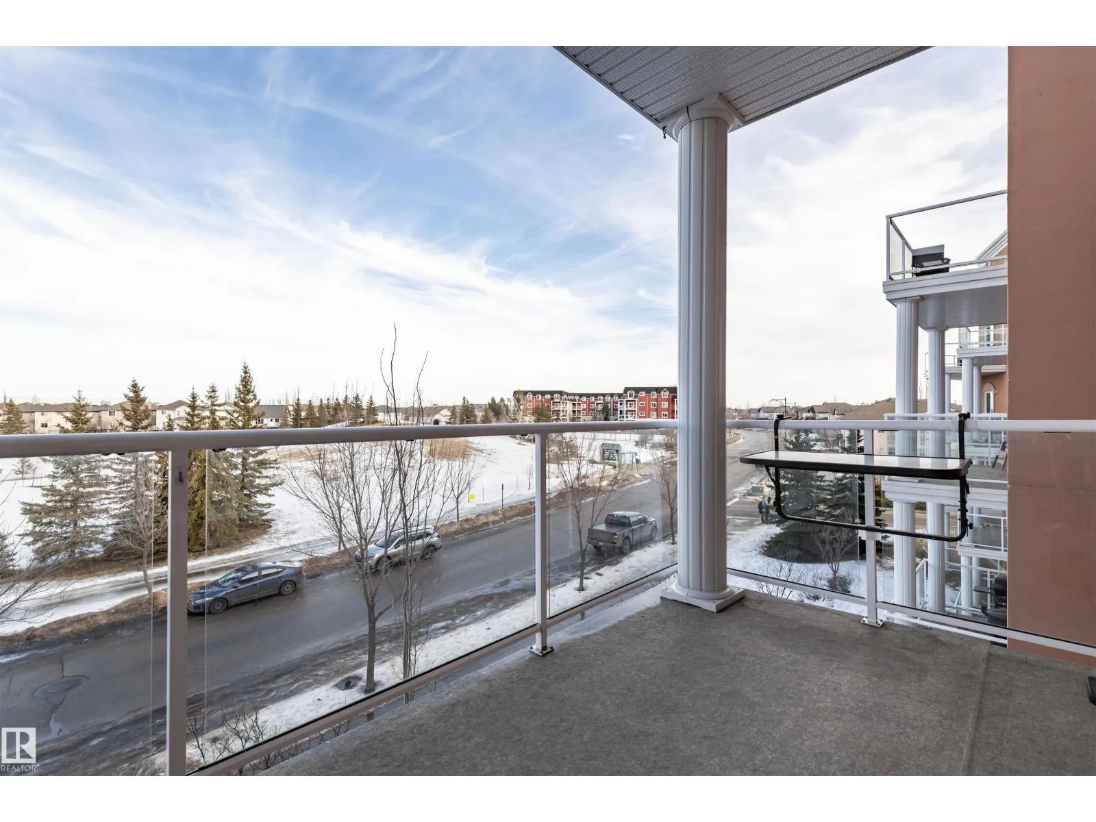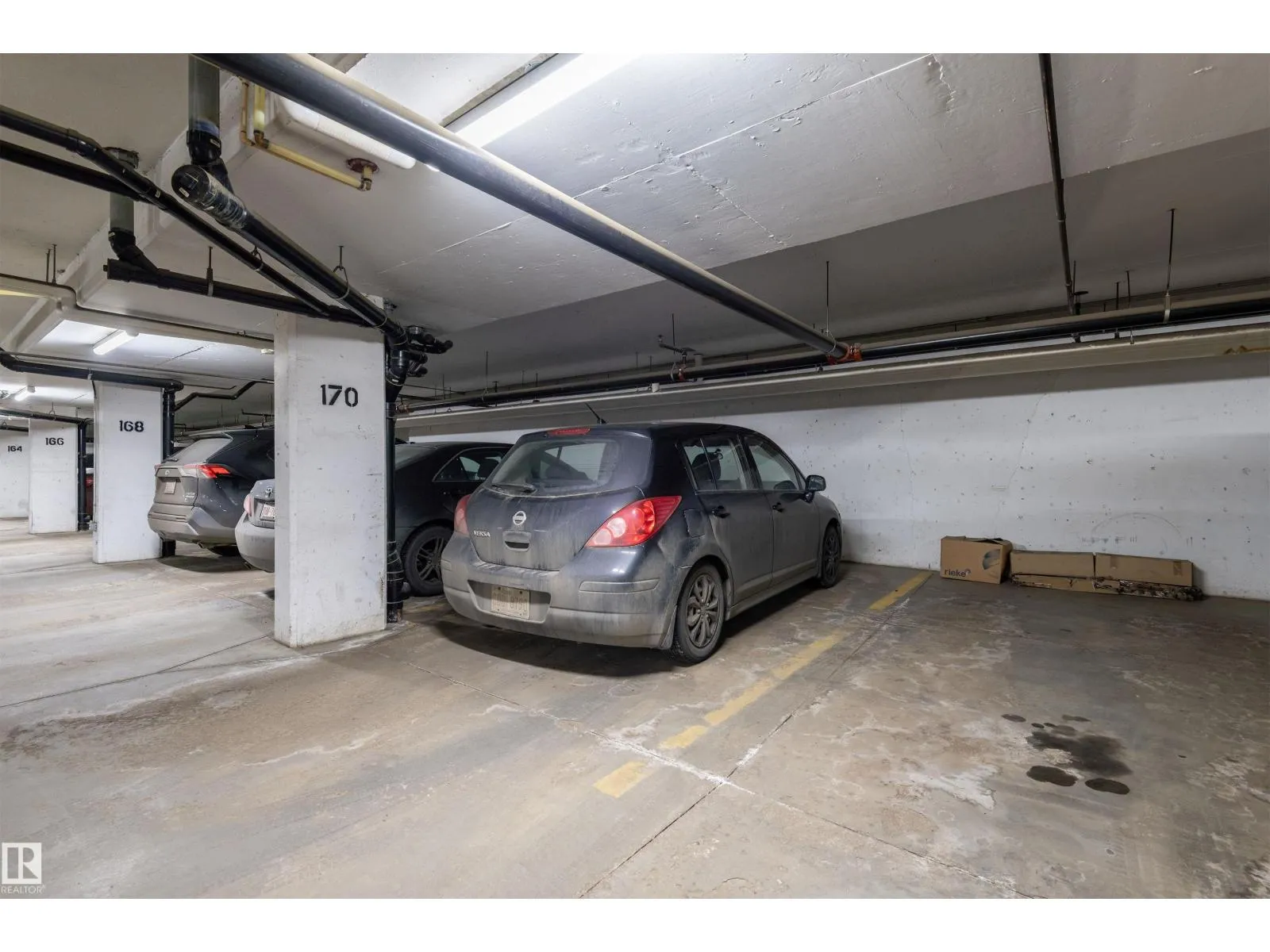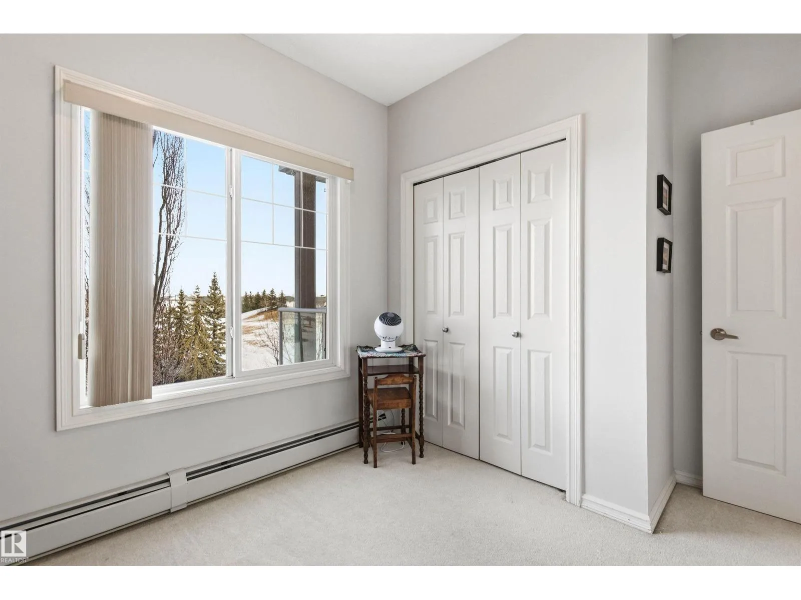 Sparkling clean and welcoming, this bright and airy 3rd-floor condo overlooks the park and instantly feels like a place you want to settle into. The thoughtfully designed layout features bedrooms on opposite sides, ideal for shared living, guests, or working from home, while large windows and 9-foot ceilings fill the space with natural light. Sliding patio doors open to a private deck with a gas line for easy summer BBQs, and the kitchen offers breakfast bar seating with plenty of pot drawers to keep everything tucked away. The primary bedroom includes a walk-through closet and ensuite with a walk-in shower, complemented by an extra-spacious in-suite laundry/storage room, vinyl plank flooring, and secure heated underground parking. Transit is right outside with shopping, amenities, and the future LRT station nearby. Condo fees include heat + water + power for easy budgeting, and over $5,000 in custom floor-to-ceiling storage in the primary closet and storage room adds beautiful, practical organization! (id:27476)