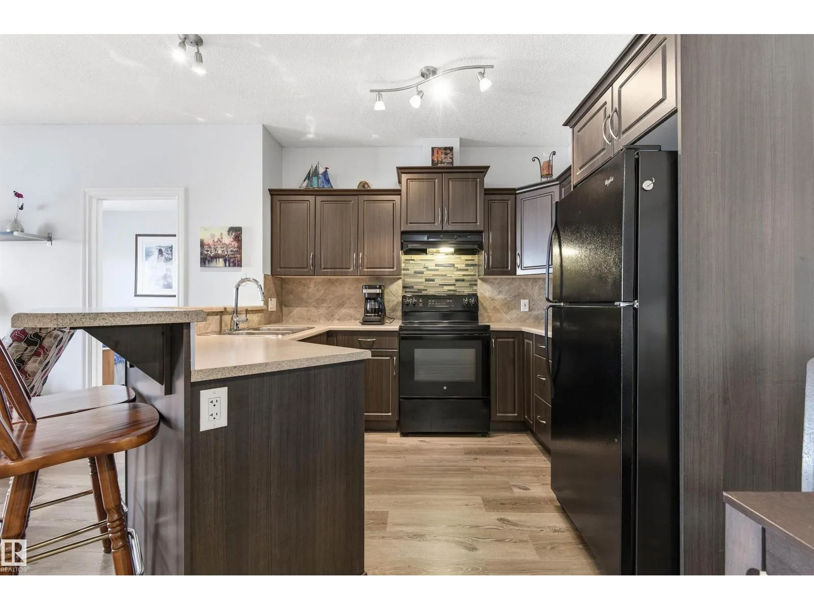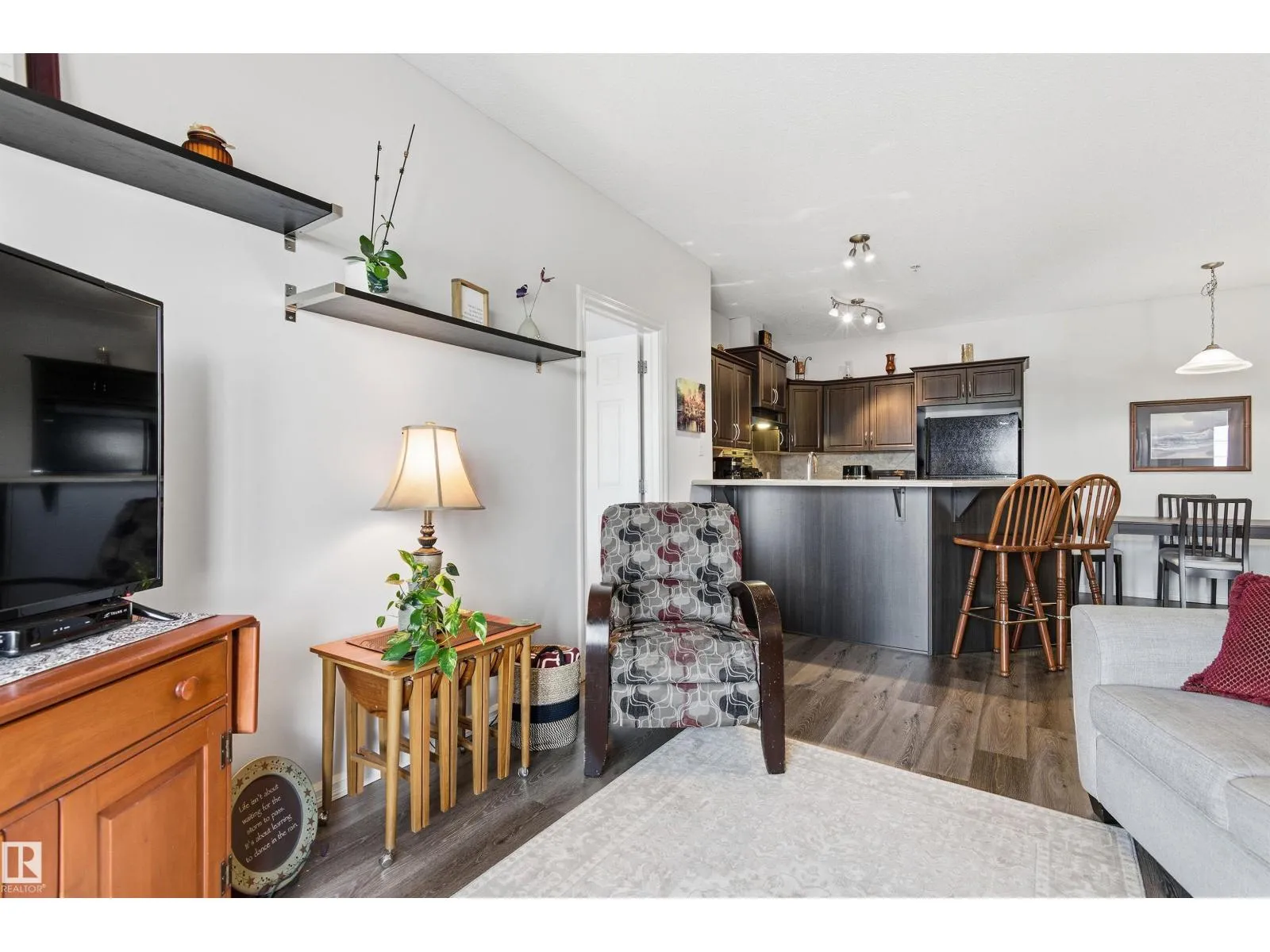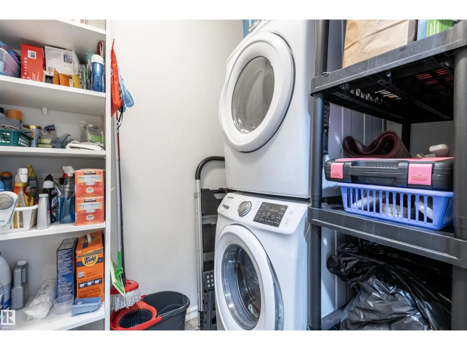 Sparkling clean and welcoming, this bright and airy 3rd-floor condo overlooks the park and instantly feels like a place you want to settle into. The thoughtfully designed layout features bedrooms on opposite sides, ideal for shared living, guests, or working from home, while large windows and 9-foot ceilings fill the space with natural light. Sliding patio doors open to a private deck with a gas line for easy summer BBQs, and the kitchen offers breakfast bar seating with plenty of pot drawers to keep everything tucked away. The primary bedroom includes a walk-through closet and ensuite with a walk-in shower, complemented by an extra-spacious in-suite laundry/storage room, vinyl plank flooring, and secure heated underground parking. Transit is right outside with shopping, amenities, and the future LRT station nearby. Condo fees include heat + water + power for easy budgeting, and over $5,000 in custom floor-to-ceiling storage in the primary closet and storage room adds beautiful, practical organization! (id:27476)