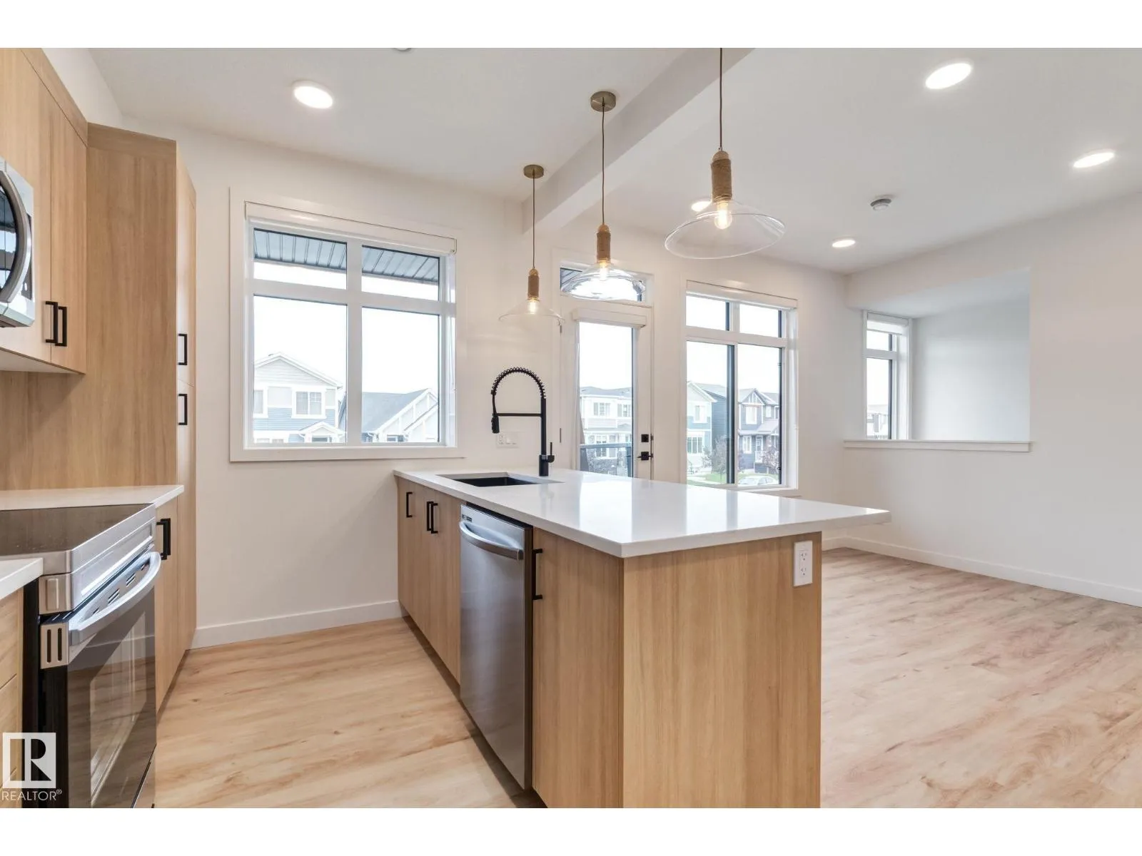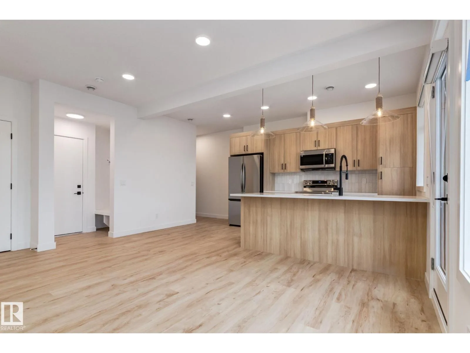 This well-designed QUIICK POSSESSION three-story townhome condo offers the perfect blend of comfort, style, and convenienceâideal for families or first-time buyers ready to put down roots without compromising on quality. The bright kitchen features light wood cabinetry, quartz countertops, and a functional layout that flows seamlessly into the main living space. With three bedrooms, upper-floor laundry on the upper level, and an ATTACHED single GARAGE on the ground level, everyday living is effortless. The spacious primary suite includes a walk-in closet and private ensuite, creating a relaxing retreat. Set in a location that balances nature with convenience, youâre close to everything that makes life enjoyable while still having easy access to daily essentials. Photos from a previous build & may differ; interior colors are represented, upgrades may vary, no appliances included. $3,000 appliance allowance and landscaping included. (id:27476)