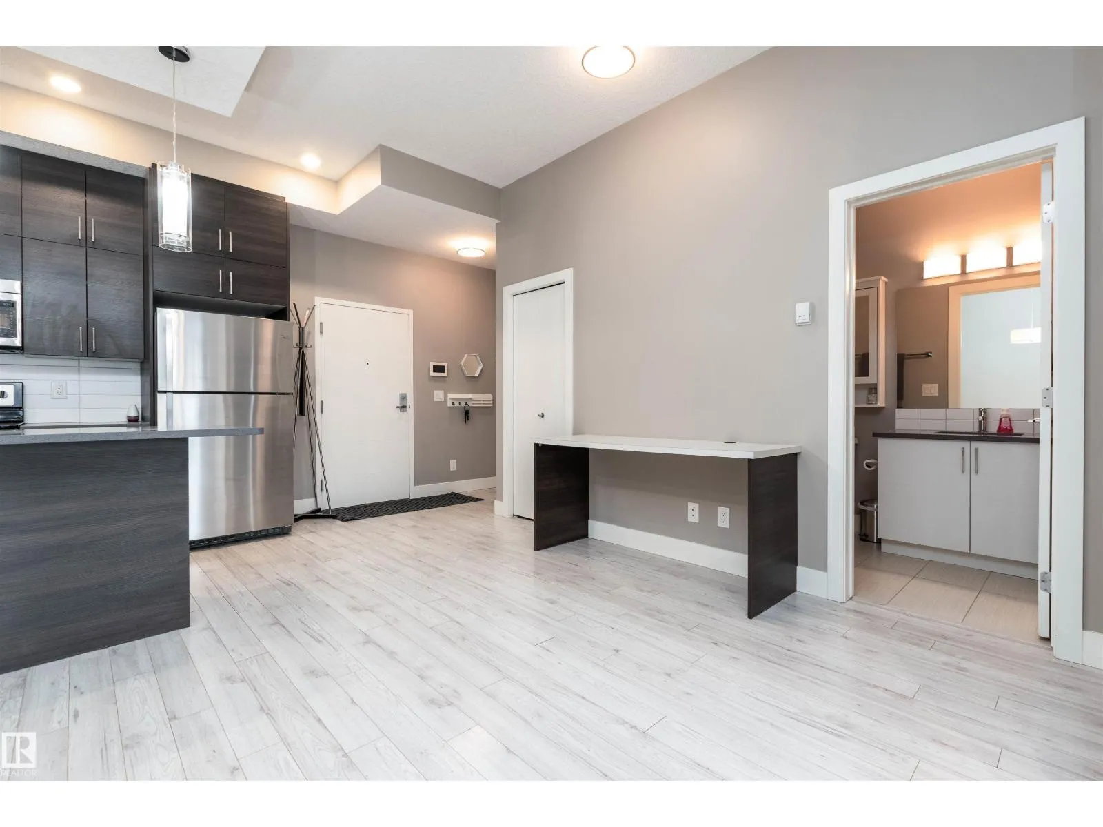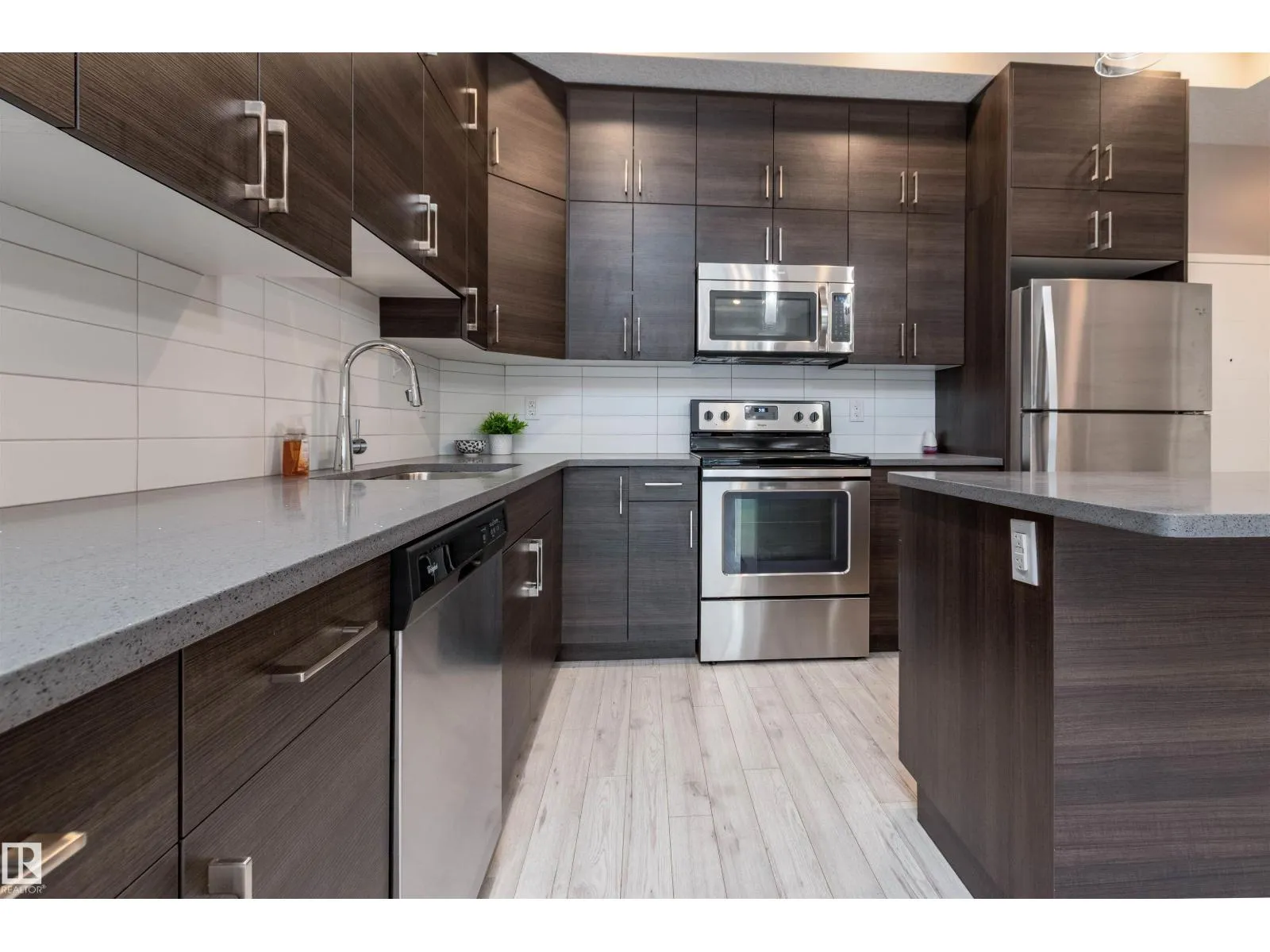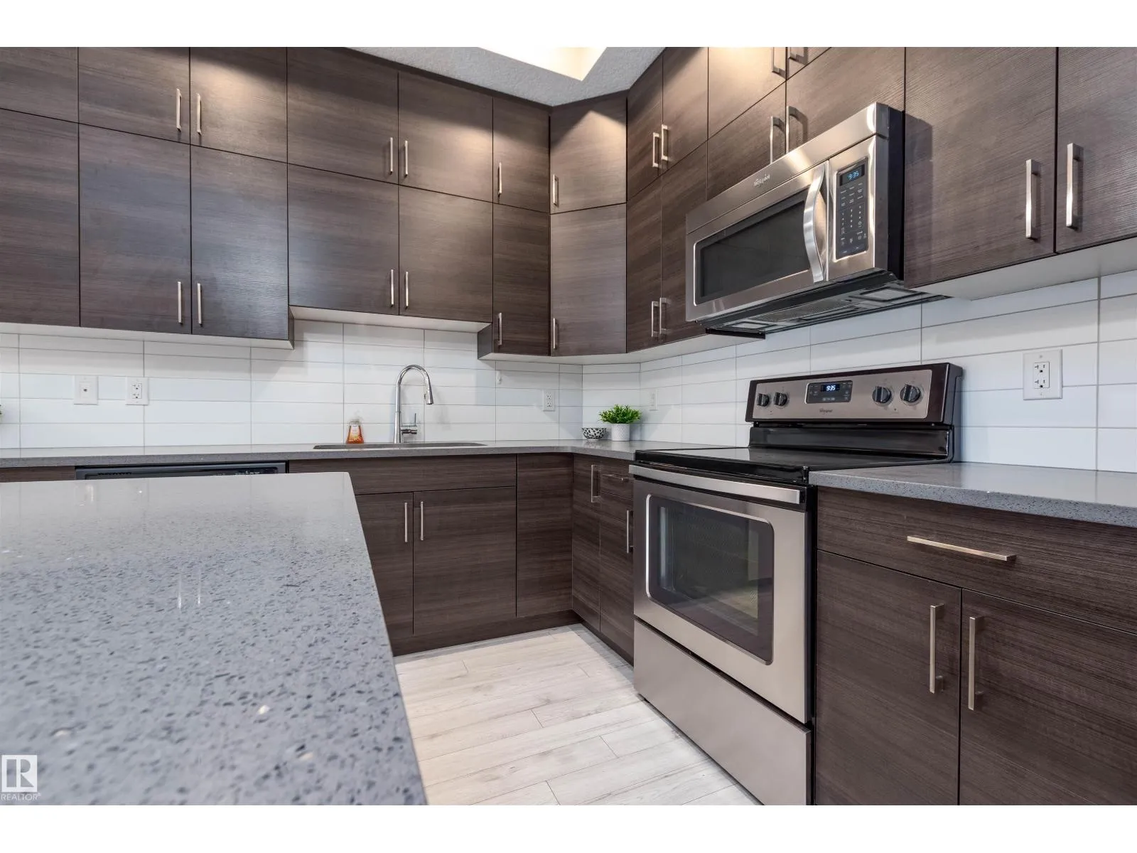 BEAUTIFUL & AFFORDABLE! This one bedroom condo in Strathcona offers an open concept with contemporary finishings, laminate flooring and 10 ft ceilings. Featuring a gorgeous kitchen with QUARTZ countertop island, modern cabinetry, and stainless steel appliances. Dining area, living room and direct access to your private patio. AMAZING ROOFTOP TERRACE with PANORAMIC CITY SKYLINE VIEWS! ONE TITLED UNDERGROUND PARKING STALLS plus a TITLED MAIN FLOOR STORAGE UNIT. Monthly condo fee is $534.72 includes heat and water and professional management. Super location close to the River Valley, U of A, Whyte Avenue, restaurants and shopping. Great value and location! Visit REALTOR® website for information. (id:27476)