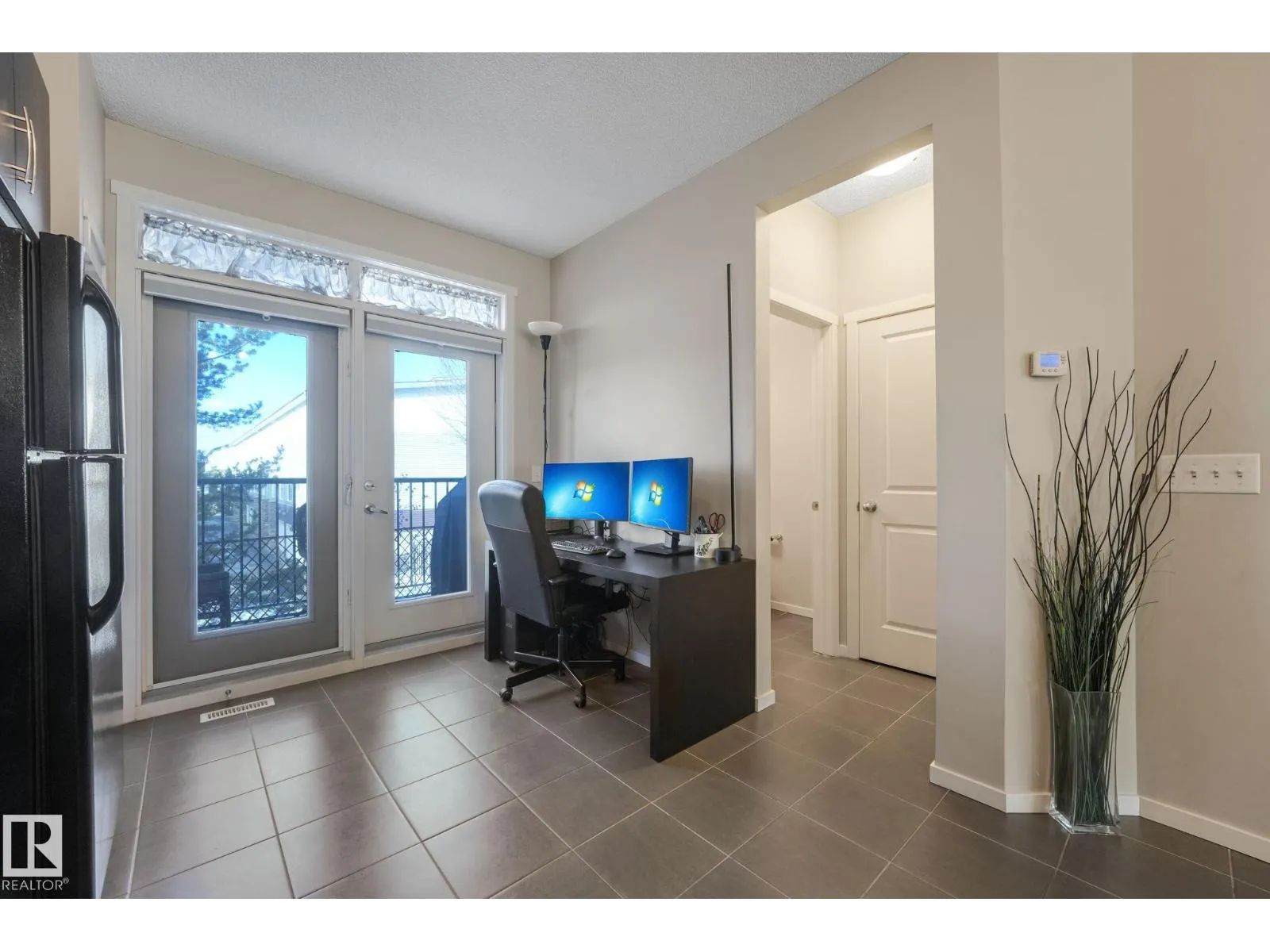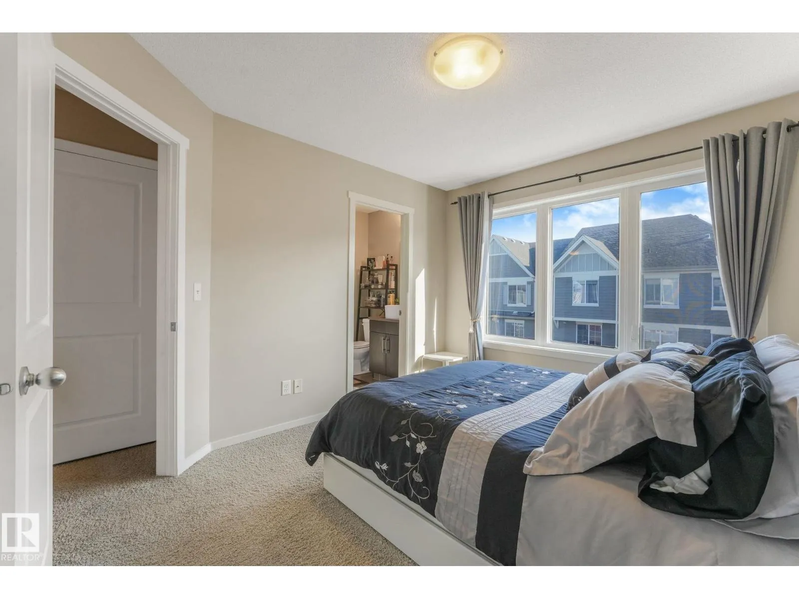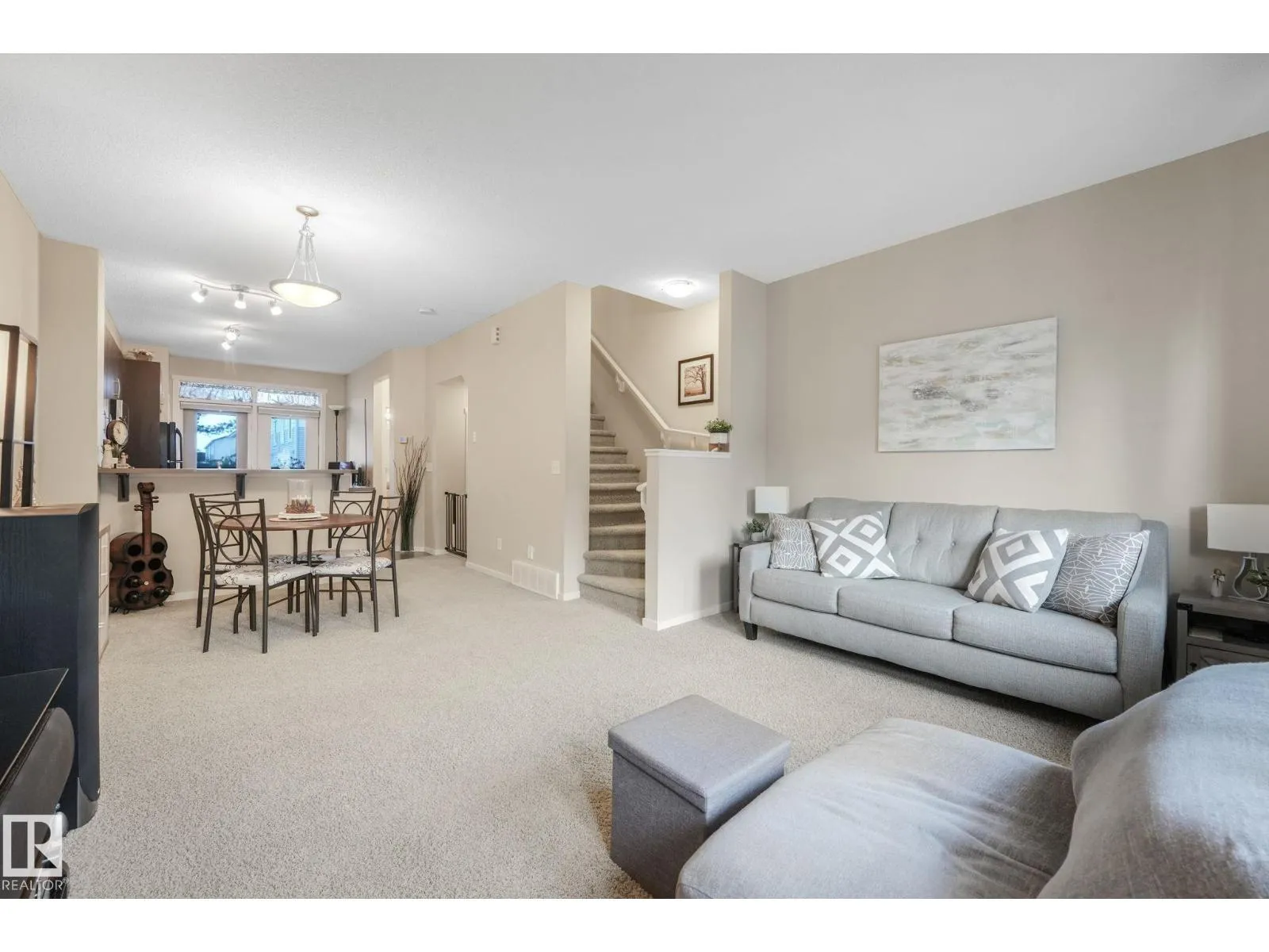 Charming and beautifully maintained 3-storey townhouse in Walker with low condo fees and central A/C for summer comfort. This bright home offers 2 bedrooms plus a den, ideal for a home office or extra living space. Upstairs features a spacious primary bedroom with walk-in shower, a second full bedroom and bathroom, and convenient upper-level laundry. The main floor boasts high ceilings, large windows, an open living and dining area, and a modern kitchen with newer stainless steel stove and over-the-range microwave. Step onto the balcony overlooking a tree-lined walking path leading to the lake. Additional highlights include a welcoming foyer, half bath on the main floor, tandem garage for 2 vehicles with extra storage, and beautifully maintained grounds with no mowing required. Located in a quiet neighbourhood with quick access to Anthony Henday, 50th Street, Highway 2, schools, shopping, transit, and just 20 minutes to Edmonton International Airport. (id:27476)