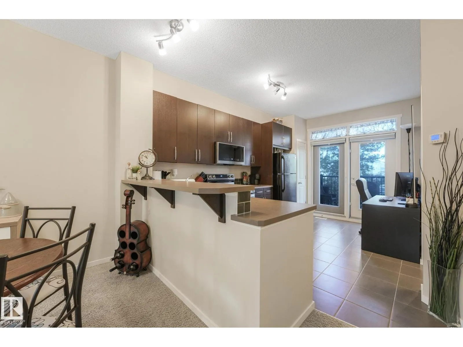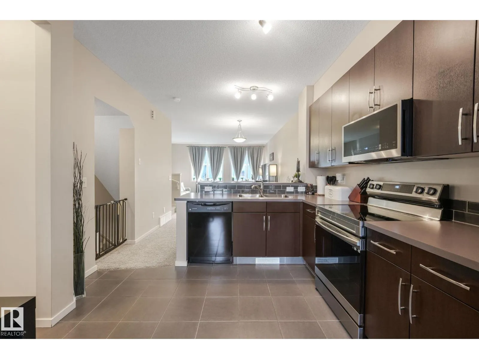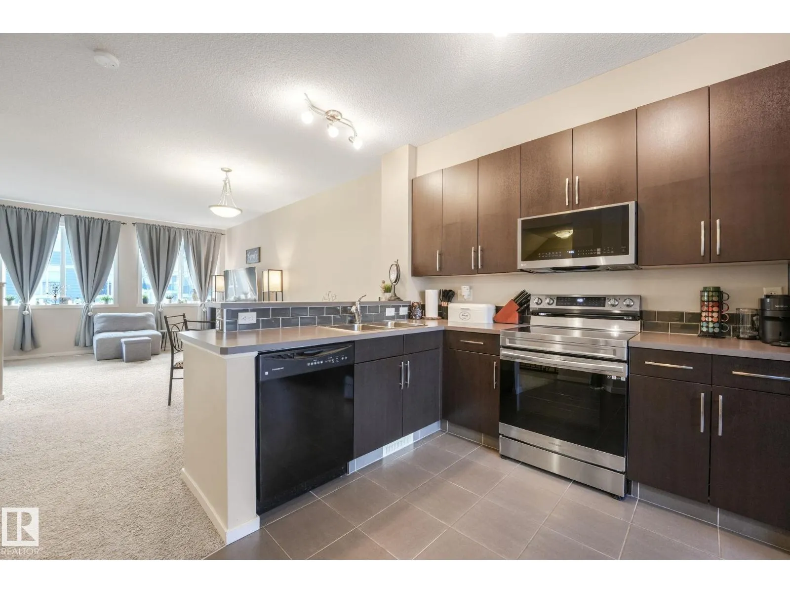 Charming and beautifully maintained 3-storey townhouse in Walker with low condo fees and central A/C for summer comfort. This bright home offers 2 bedrooms plus a den, ideal for a home office or extra living space. Upstairs features a spacious primary bedroom with walk-in shower, a second full bedroom and bathroom, and convenient upper-level laundry. The main floor boasts high ceilings, large windows, an open living and dining area, and a modern kitchen with newer stainless steel stove and over-the-range microwave. Step onto the balcony overlooking a tree-lined walking path leading to the lake. Additional highlights include a welcoming foyer, half bath on the main floor, tandem garage for 2 vehicles with extra storage, and beautifully maintained grounds with no mowing required. Located in a quiet neighbourhood with quick access to Anthony Henday, 50th Street, Highway 2, schools, shopping, transit, and just 20 minutes to Edmonton International Airport. (id:27476)