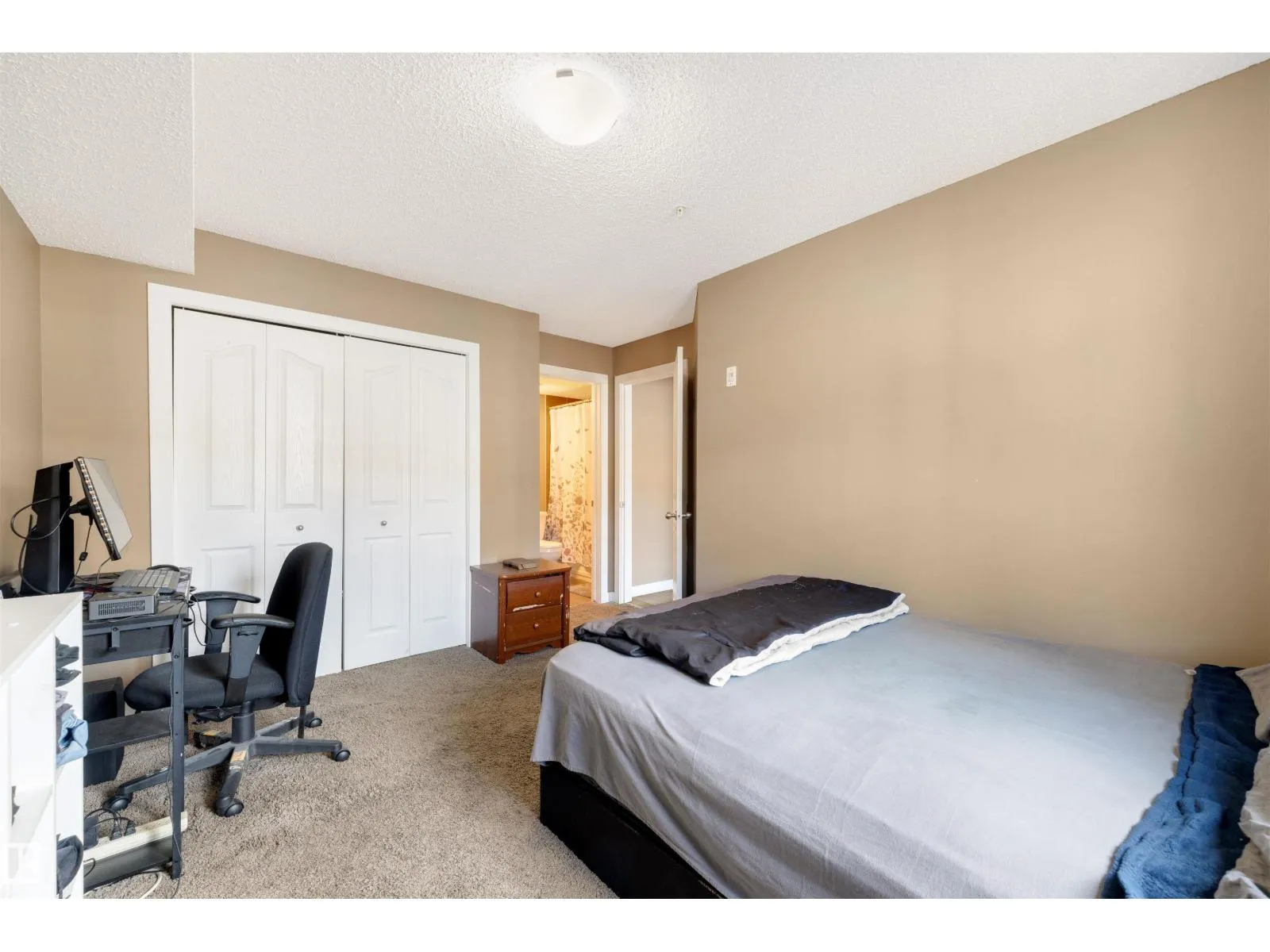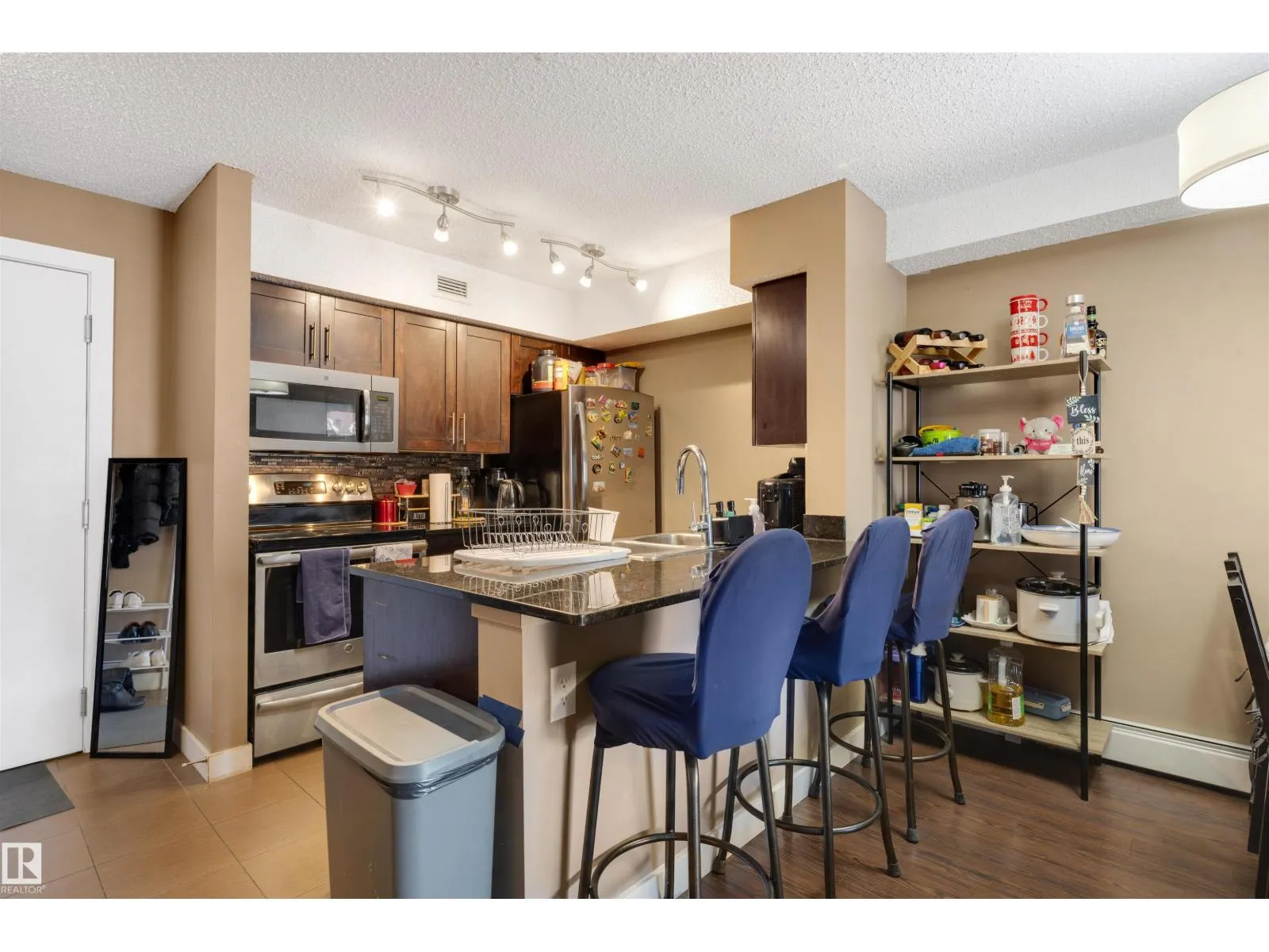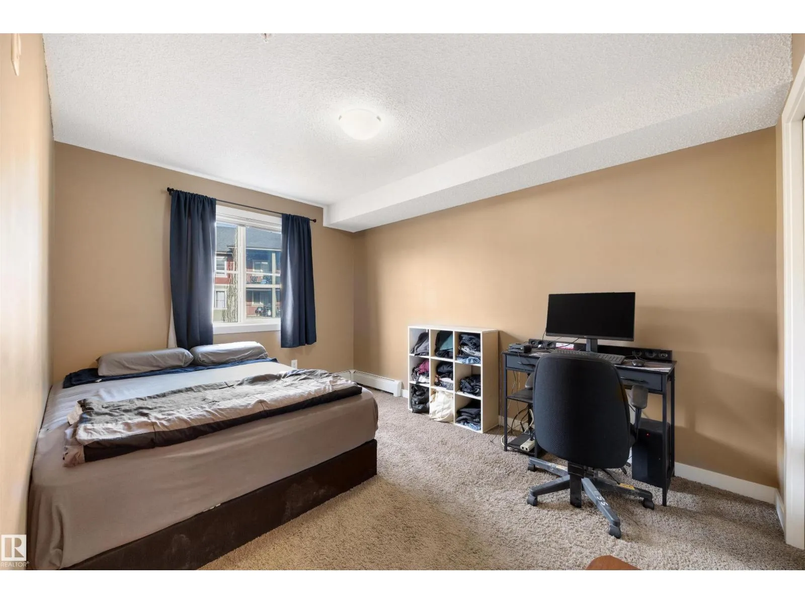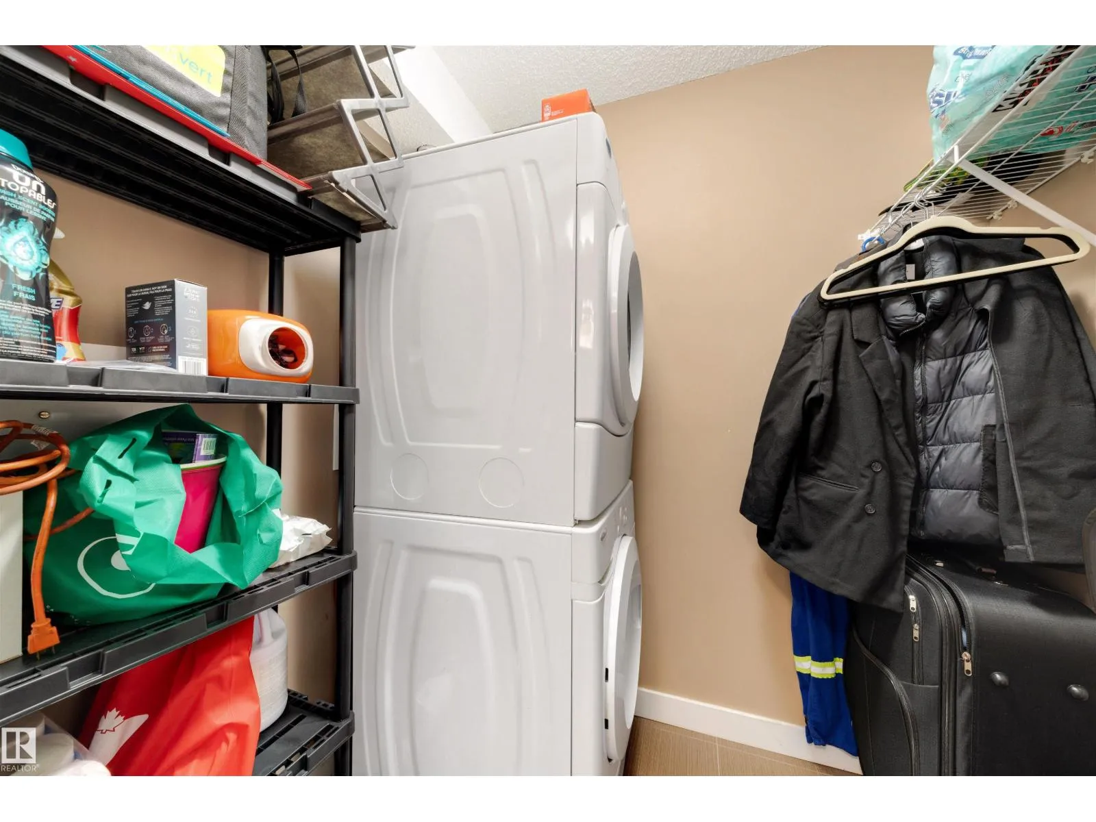 Welcome to this beautifully maintained condo offering modern comfort and effortless living. This unit features two nicely sized bedrooms, two full bathrooms, ensuite laundry, a titled underground parking stall, a titled storage unit, and visitor parking! Condo fees include heat and water! The contemporary kitchen features dark cabinetry, granite countertops, and stainless steel appliances, opening into a bright, open-concept living space. Large patio doors lead to the balcony âperfect for morning coffee or evening relaxation. The primary bedroom includes a spacious closet and private ensuite bathroom. A stackable washer and dryer complete the unit. Enjoy the convenience of the underground parking stall located immediately upon entering the parkade, with a private storage room directly in front. Easy access to stairwell and elevator. Near parks, walking trails, shopping amenities, schools, and major routes including Anthony Henday and Manning Drive. Amazing condo option for homeowners or investors alike! (id:27476)