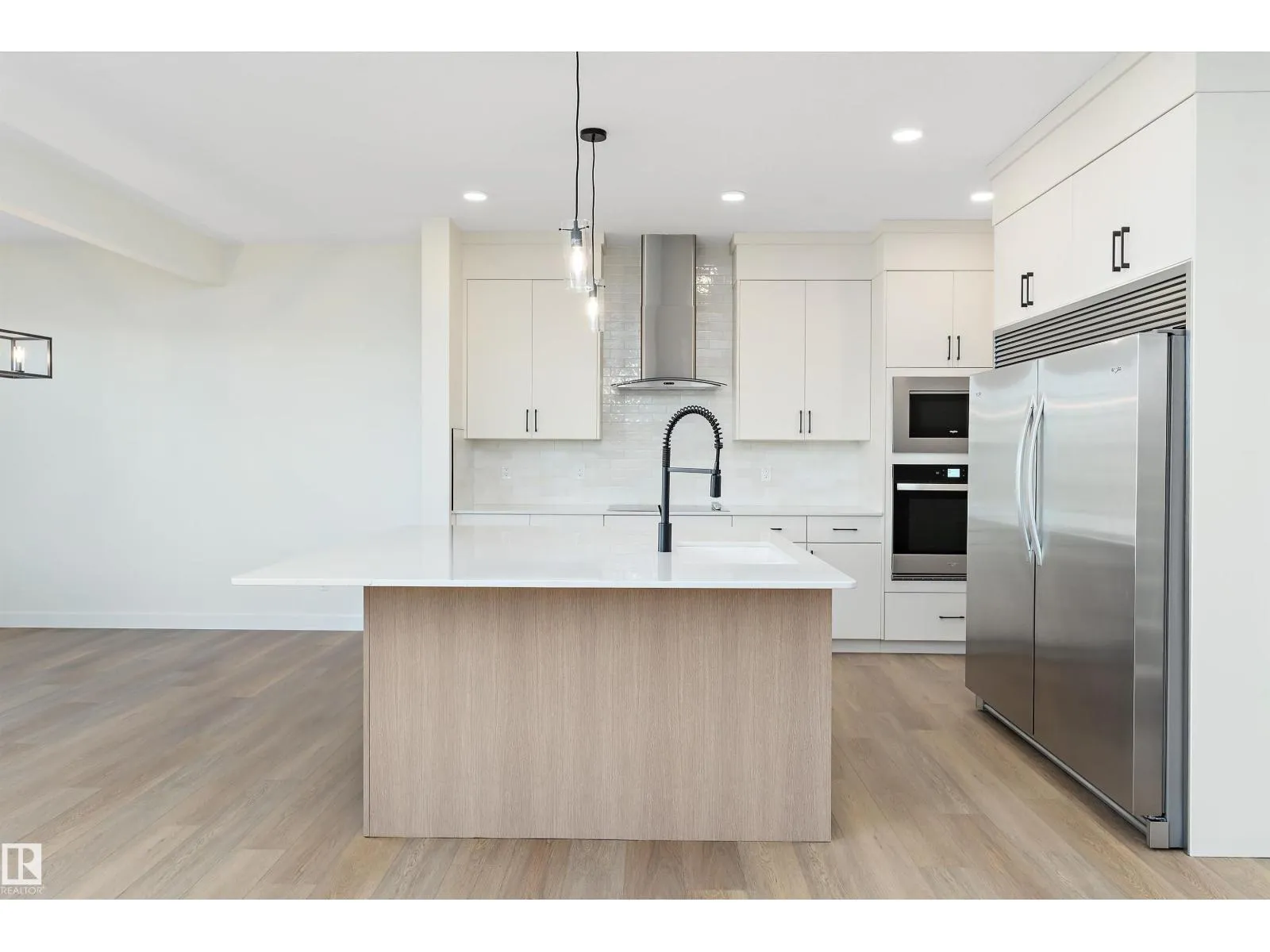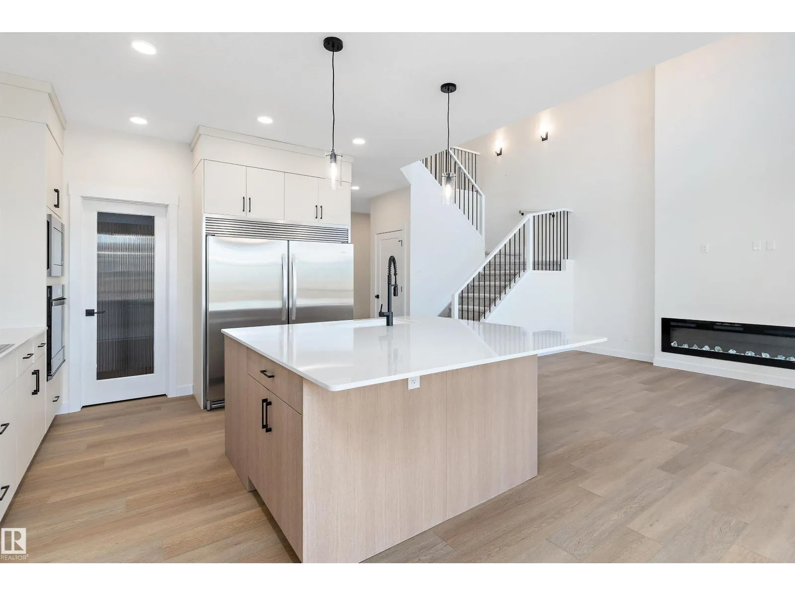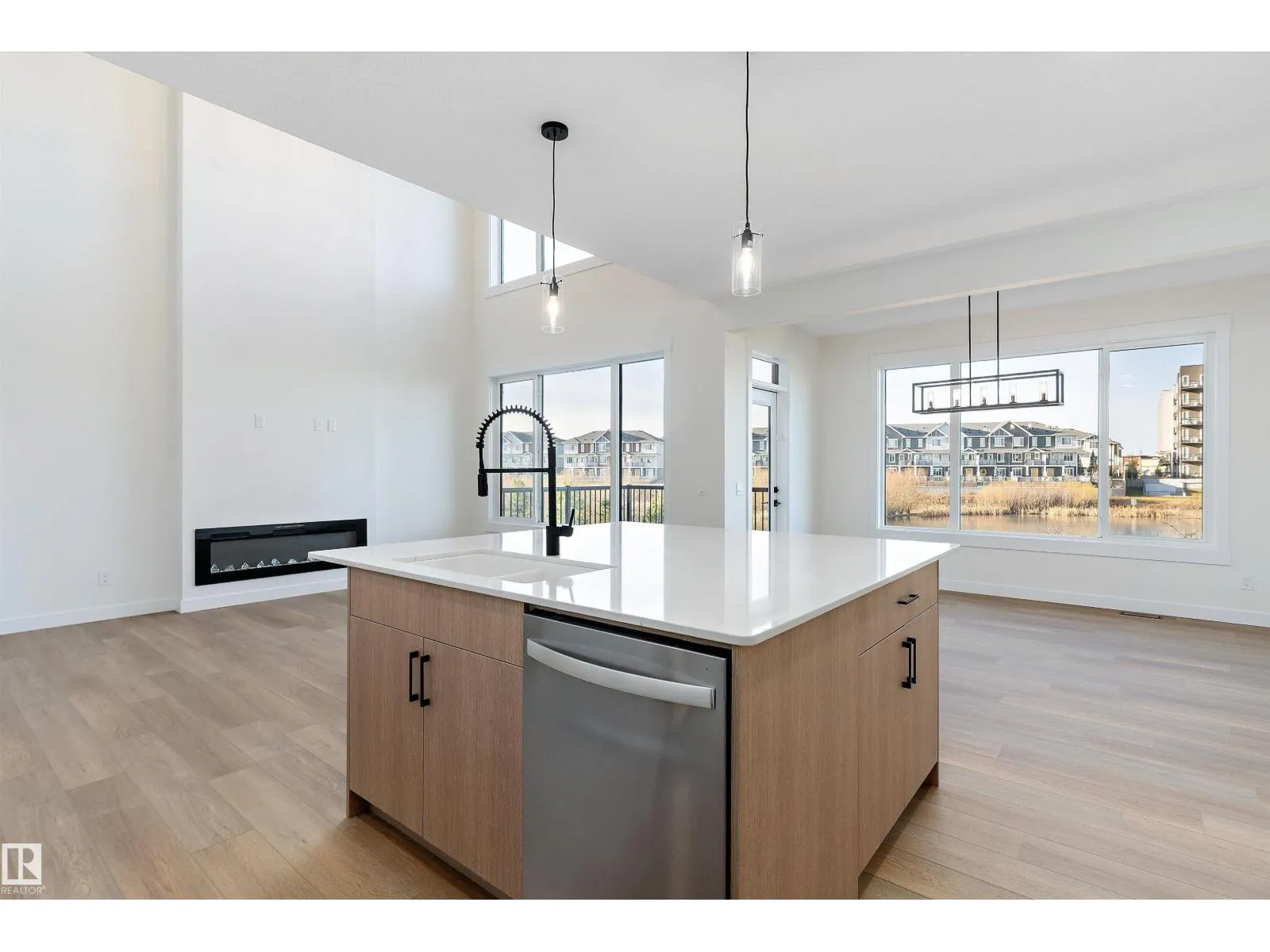 Welcome to this stunning 2,308 sq ft home, crafted for modern living with elevated style. This spacious 3-bedroom layout is designed for both family life and entertaining. The main floor features a bright den, full bathroom, and a functional mudroom off the garage for everyday convenience. At the heart of the home is a chef-inspired kitchen with quartz countertops and generous cabinetry, flowing into an impressive open-to-above great roomâperfect for hosting and cozy evenings alike. Upstairs, unwind in the vaulted-ceiling primary retreat with a spa-like 5-piece ensuite offering dual sinks, a soaker tub, and separate shower. The additional bedrooms are spacious and filled with natural light. Optional legal basement suite with separate side entrance provides added flexibility and income potential. Backing onto a pond and walking path for peaceful summer walks. Immediate possession available. (id:27476)