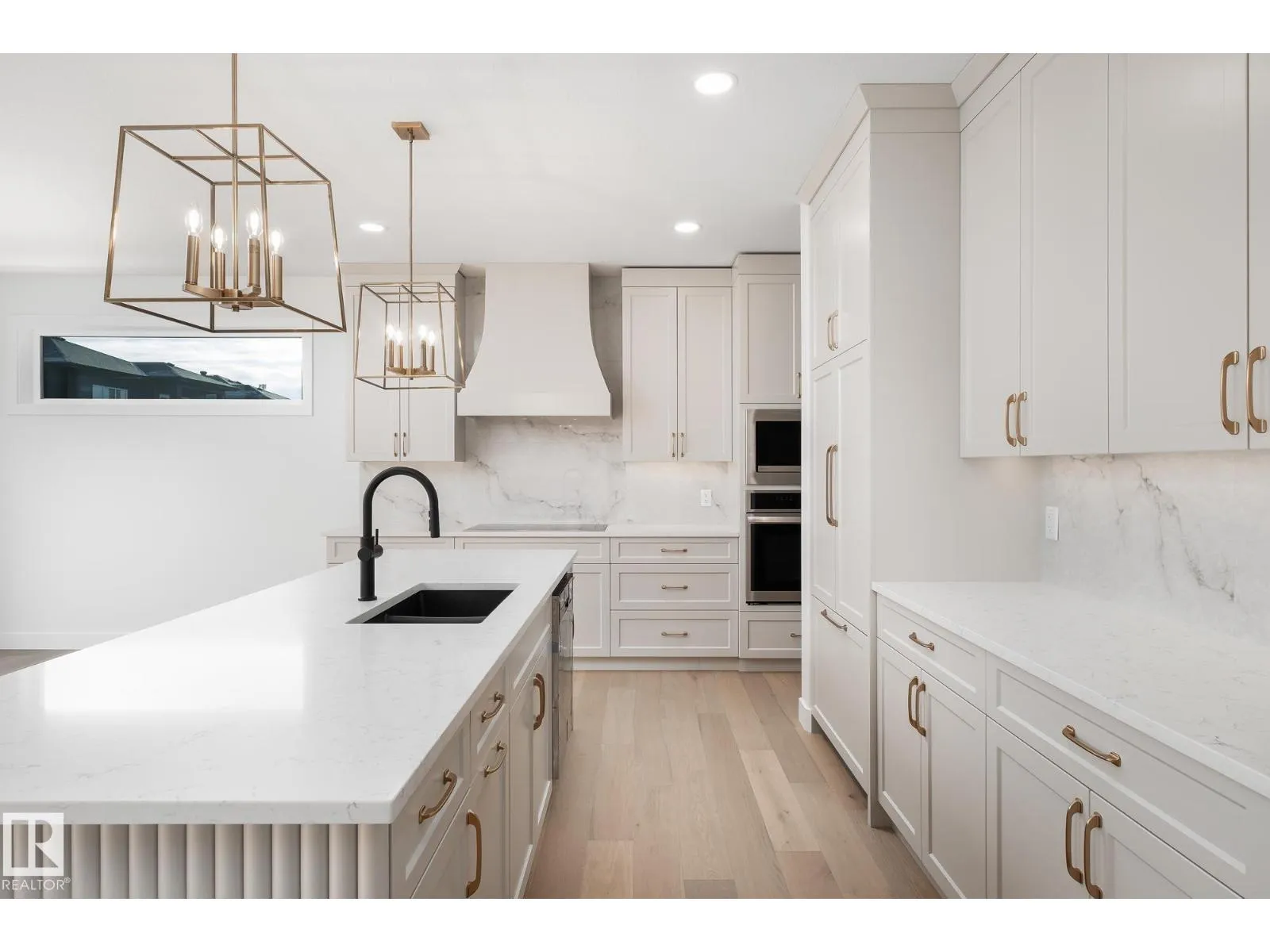Built by Kimberley Homes, Edmontonâs award-winning builder, this stunning FOUR bedroom home is located in the final phase of the Estates of Arbours of Keswick and offers over 2,700 developed SQFT plus a triple car garage. Designed with elevated finishes throughout, youâll find 9â ceilings on the main and upper floors, a main floor den, and a chef-inspired kitchen featuring a 10â central island and built-in appliances. The open-concept layout is perfect for both everyday living and entertaining. Upstairs, the luxurious primary suite showcases a spa-like 5-piece ensuite complete with a freestanding soaker tub, tile-base shower, double vanities, and a dedicated makeup desk. The main bath also features dual sinks, ideal for busy mornings. A convenient upper-level laundry room with sink and cabinetry adds everyday functionality. Some photos are virtually staged. (id:27476)