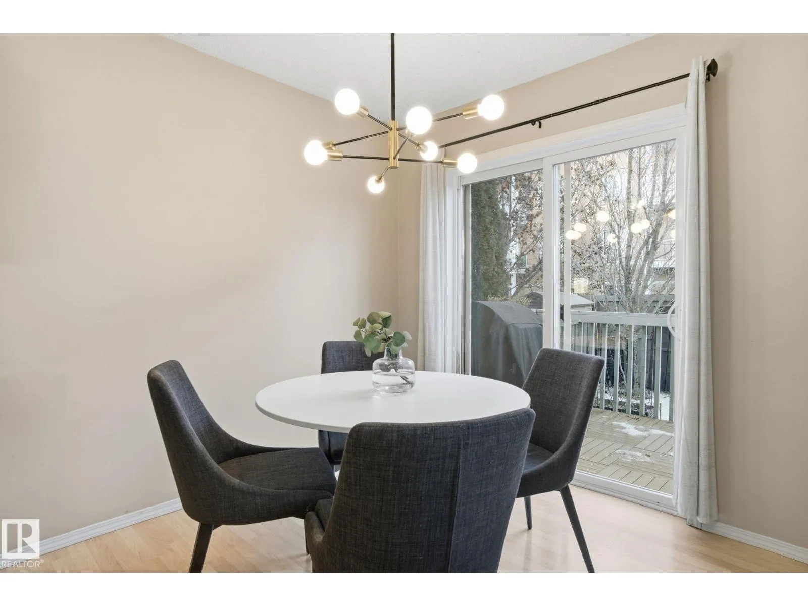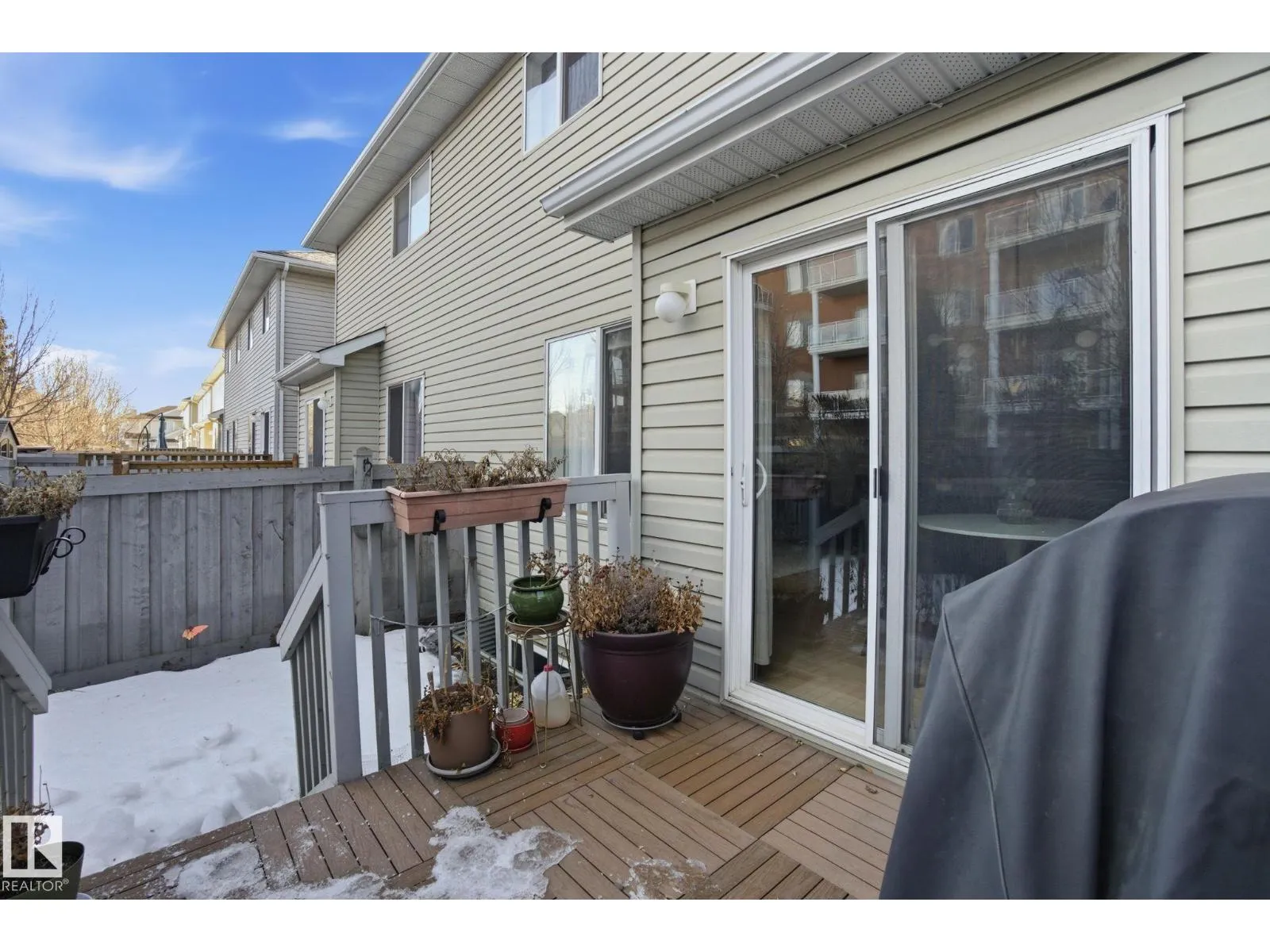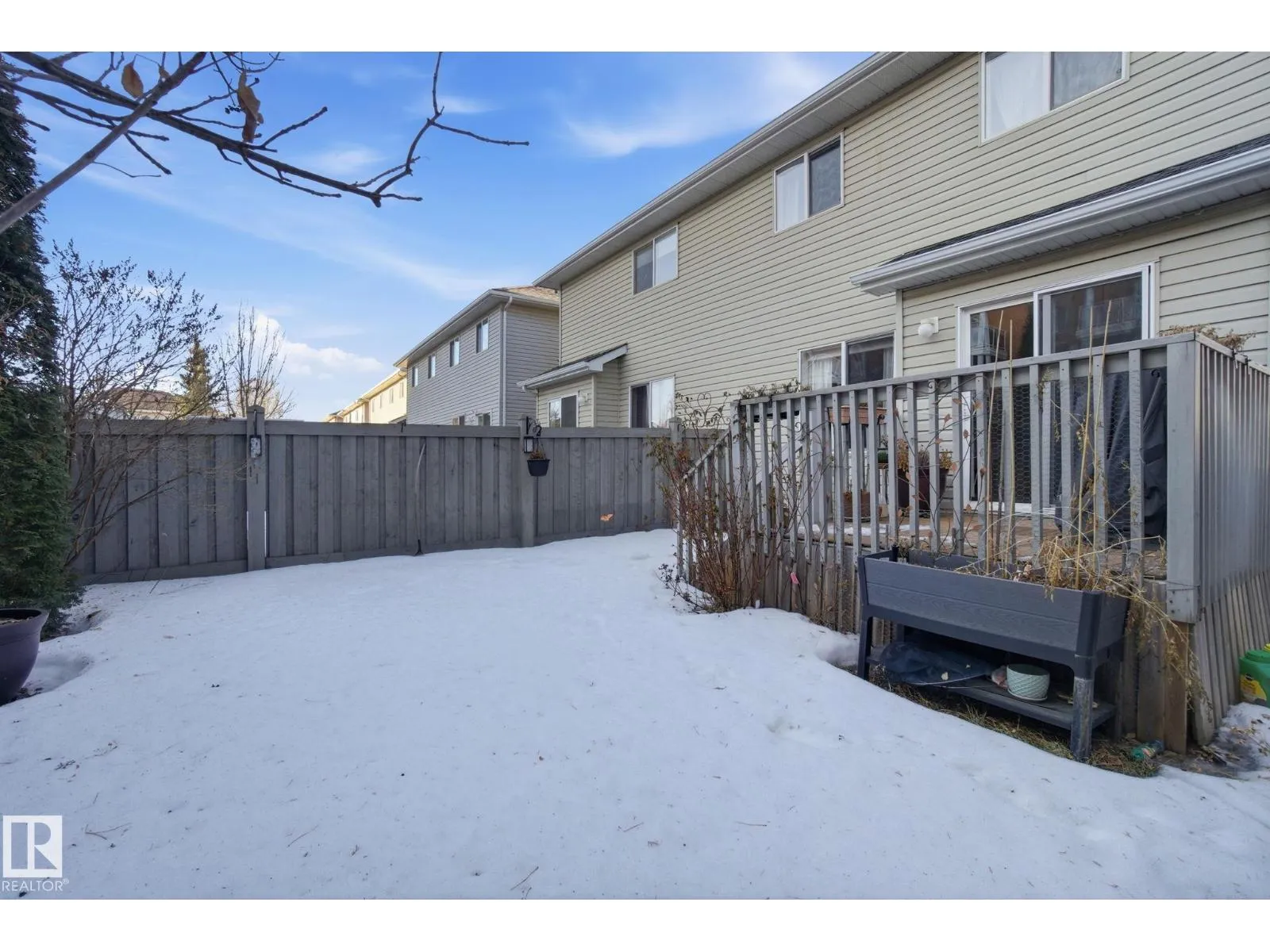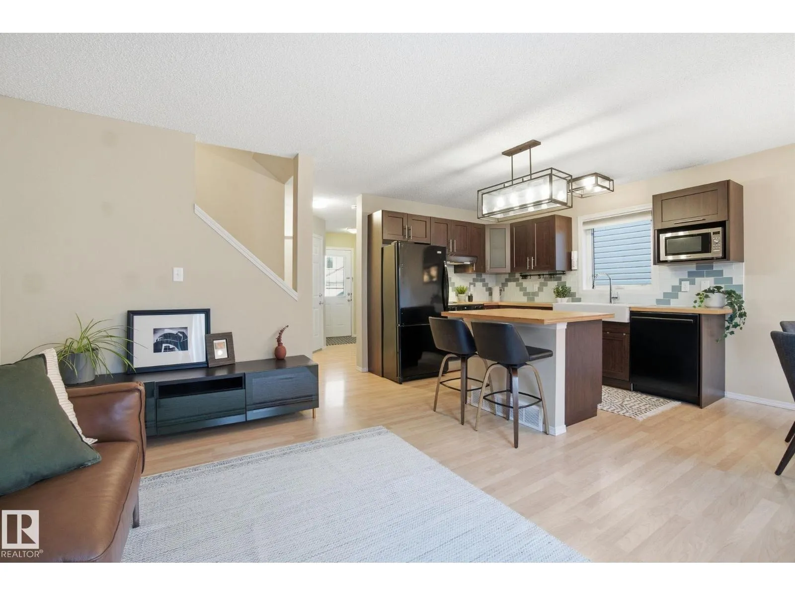 Well kept & nicely updated! This 1300sf 2 story duplex has a finished basement, fenced in yard & attached garage! Open concept floor plan anchored by a beautiful kitchen with dark cabinets, chop block counters, glass subway tile backsplash & an island for extra work space. The dining area features modern lighting & access to the SE facing deck & yard. The living room is a comfortable size & is flexible for furniture placement. Upstairs are 3 bedrooms & 2 full baths. Large primary with ensuite. The basement is finished with a great rec room featuring surround sound & a built-in media unit. Off of this is the utility, laundry & storage area. Single garage with room for another vehicle on the driveway. Lots of room for visitors to park & easy ETS access on Macewan Road a few units down. Great location across the street from Macewan Park, nearby trails & Blackmud Ravine. All amenities walkable on 111th St and Ellerslie. Quick to Henday! New hot water tank, smart electric range, dishwasher & central A/C ! (id:27476)