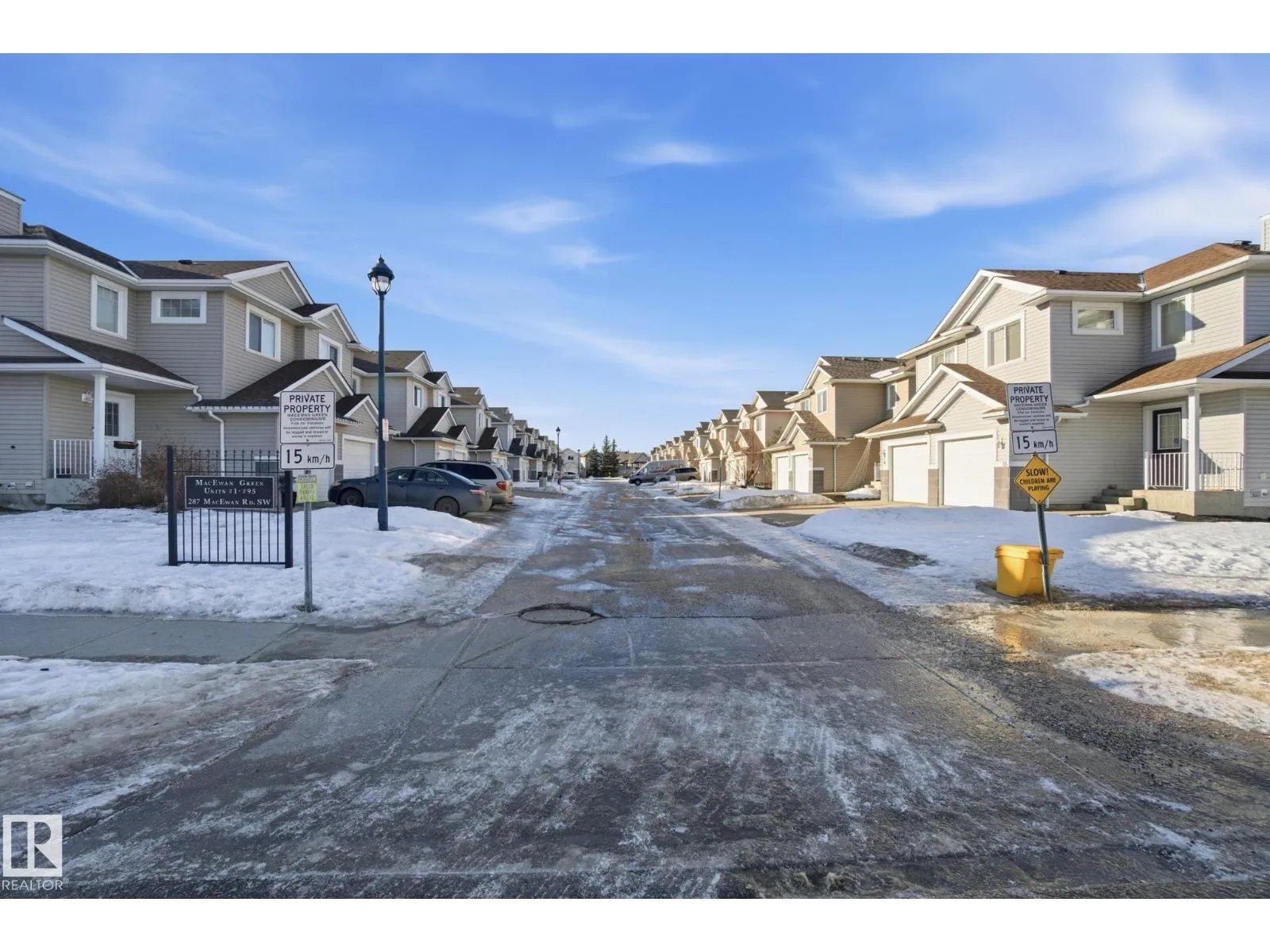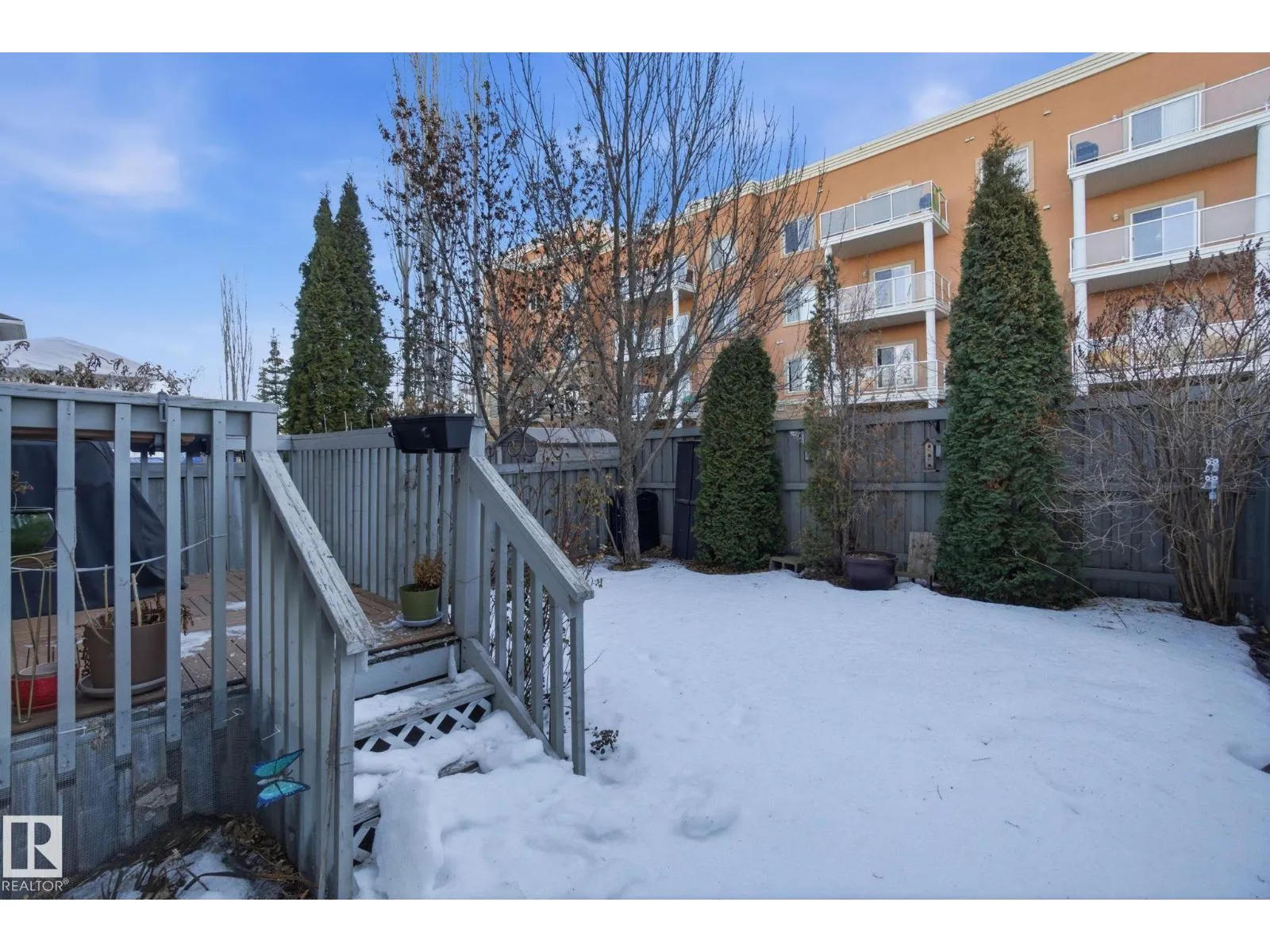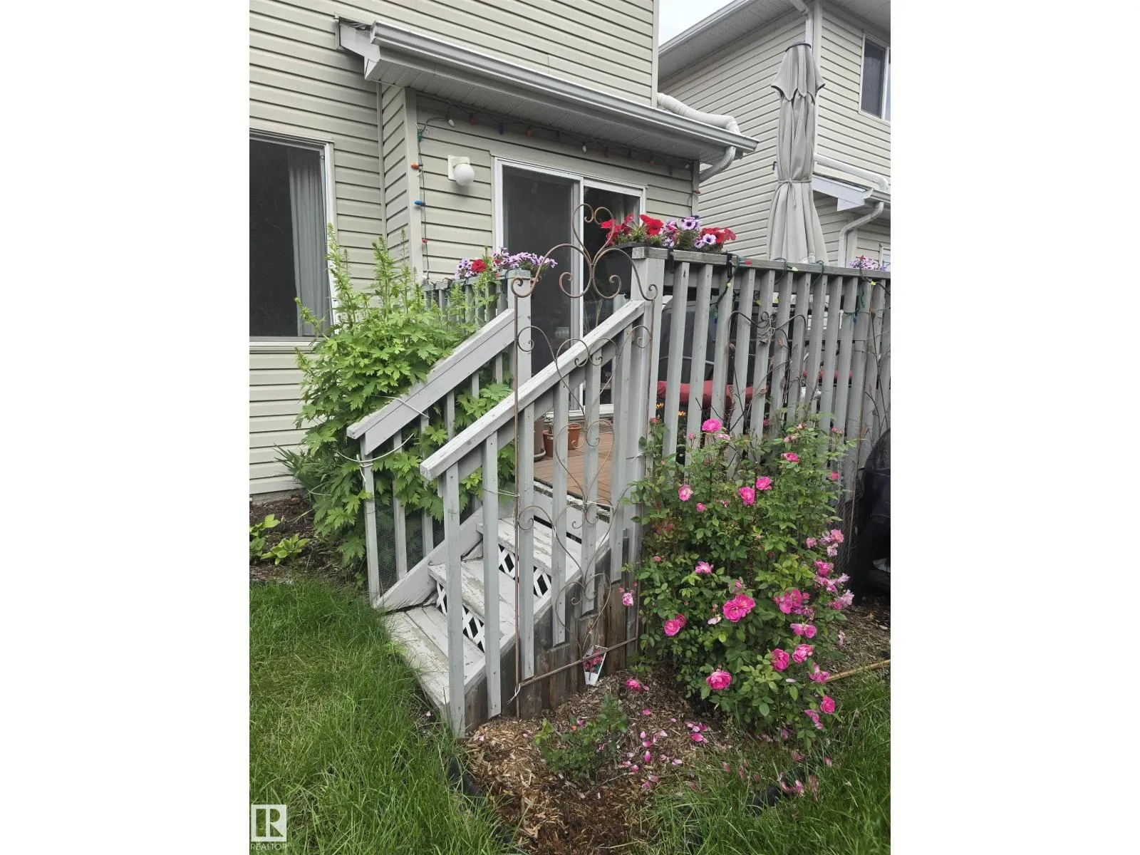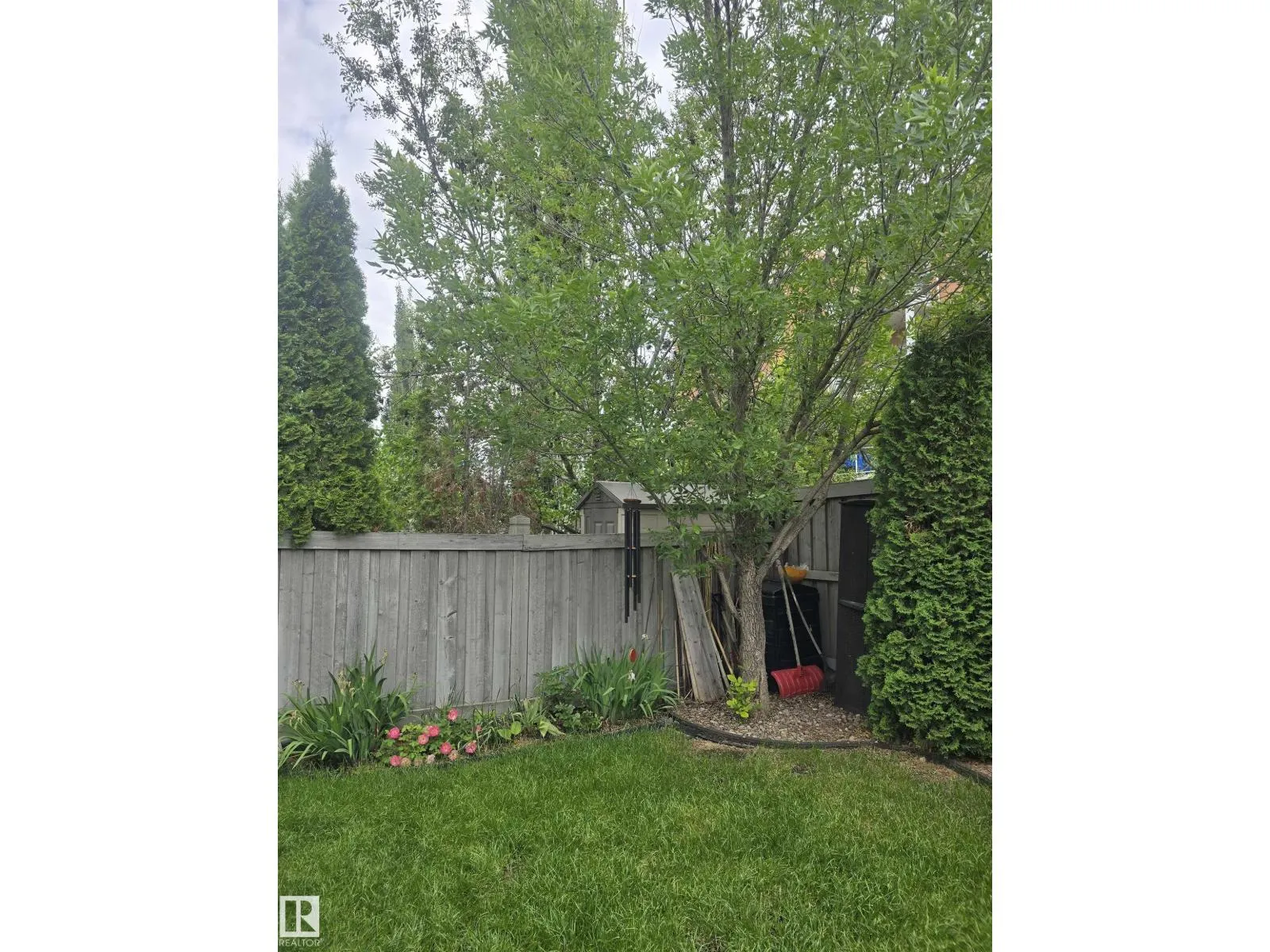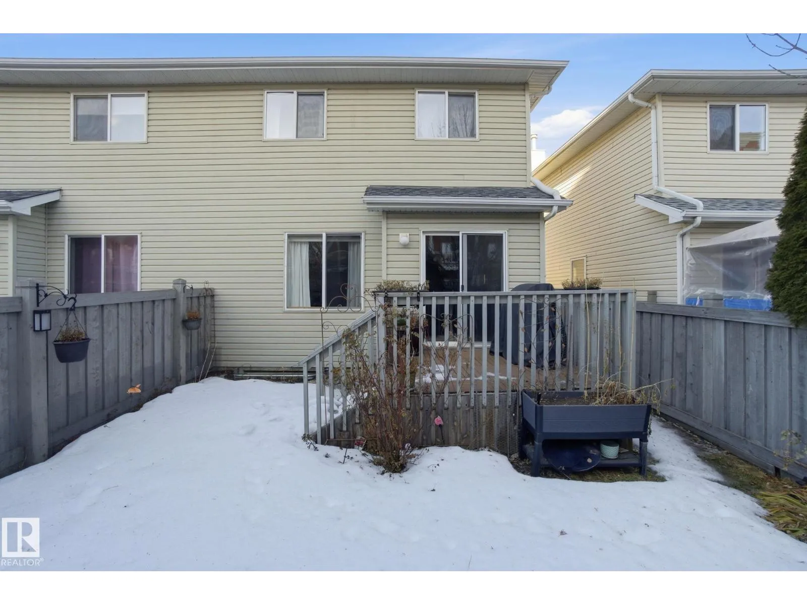 Well kept & nicely updated! This 1300sf 2 story duplex has a finished basement, fenced in yard & attached garage! Open concept floor plan anchored by a beautiful kitchen with dark cabinets, chop block counters, glass subway tile backsplash & an island for extra work space. The dining area features modern lighting & access to the SE facing deck & yard. The living room is a comfortable size & is flexible for furniture placement. Upstairs are 3 bedrooms & 2 full baths. Large primary with ensuite. The basement is finished with a great rec room featuring surround sound & a built-in media unit. Off of this is the utility, laundry & storage area. Single garage with room for another vehicle on the driveway. Lots of room for visitors to park & easy ETS access on Macewan Road a few units down. Great location across the street from Macewan Park, nearby trails & Blackmud Ravine. All amenities walkable on 111th St and Ellerslie. Quick to Henday! New hot water tank, smart electric range, dishwasher & central A/C ! (id:27476)