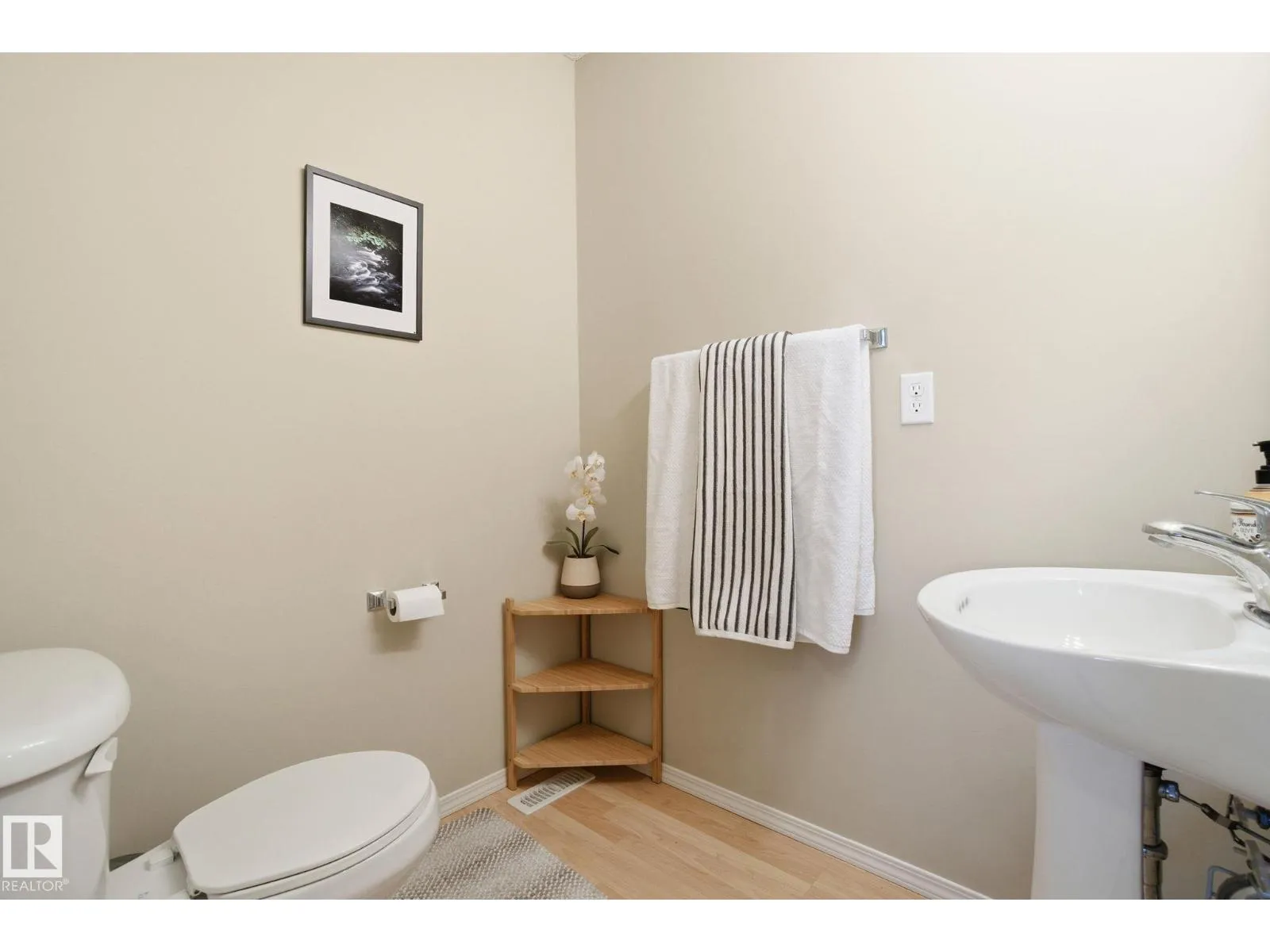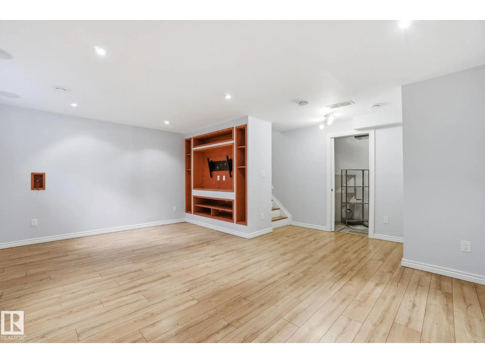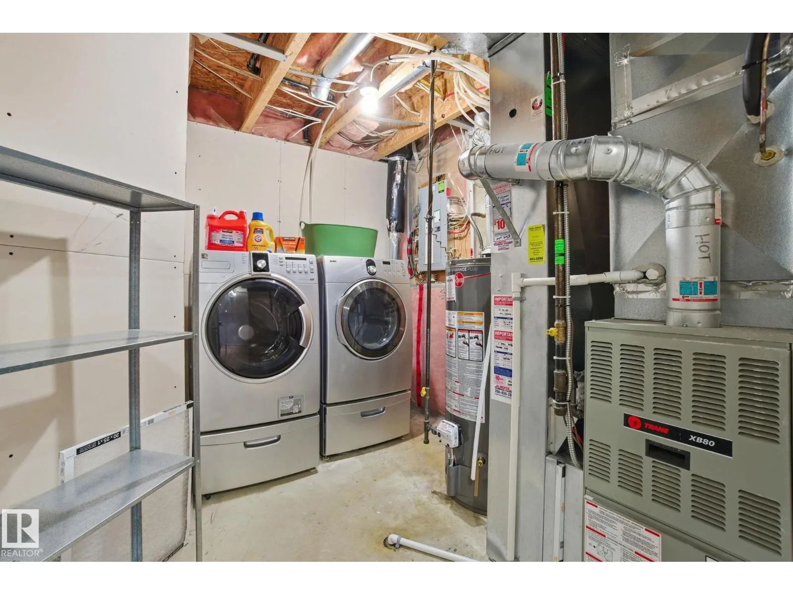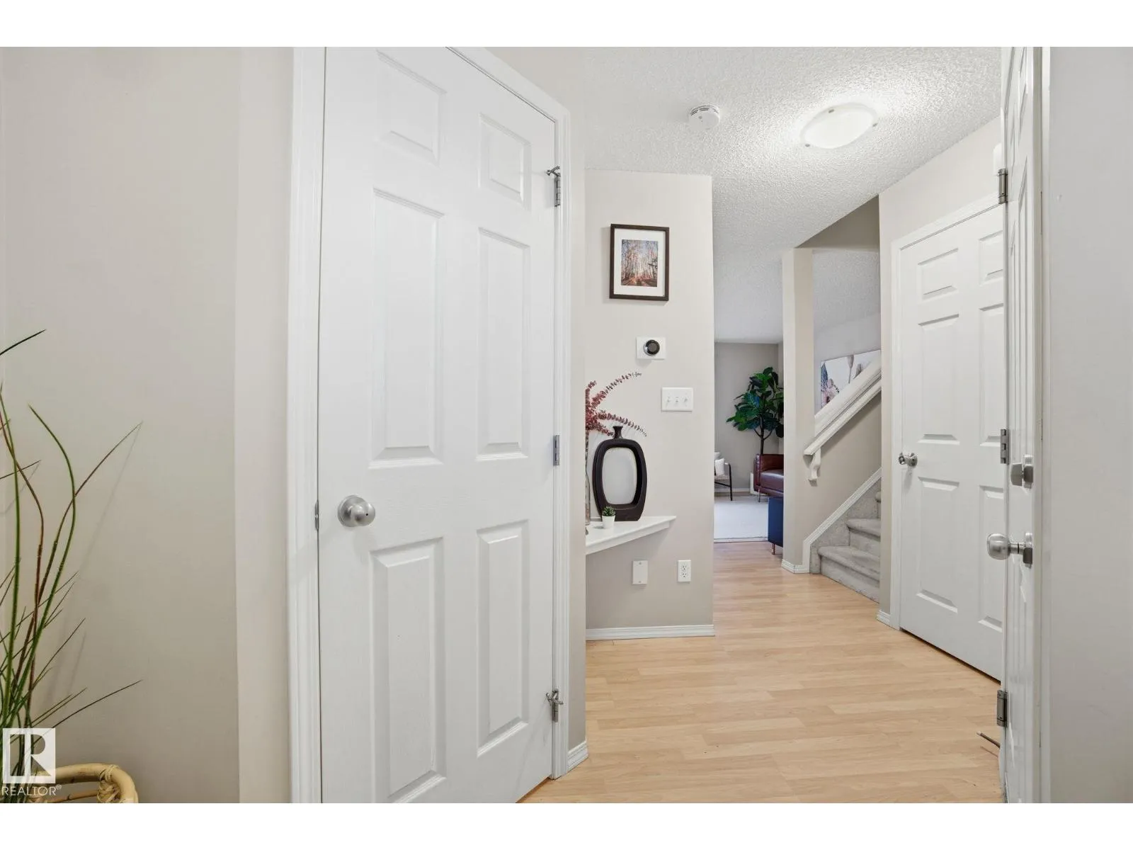 Well kept & nicely updated! This 1300sf 2 story duplex has a finished basement, fenced in yard & attached garage! Open concept floor plan anchored by a beautiful kitchen with dark cabinets, chop block counters, glass subway tile backsplash & an island for extra work space. The dining area features modern lighting & access to the SE facing deck & yard. The living room is a comfortable size & is flexible for furniture placement. Upstairs are 3 bedrooms & 2 full baths. Large primary with ensuite. The basement is finished with a great rec room featuring surround sound & a built-in media unit. Off of this is the utility, laundry & storage area. Single garage with room for another vehicle on the driveway. Lots of room for visitors to park & easy ETS access on Macewan Road a few units down. Great location across the street from Macewan Park, nearby trails & Blackmud Ravine. All amenities walkable on 111th St and Ellerslie. Quick to Henday! New hot water tank, smart electric range, dishwasher & central A/C ! (id:27476)