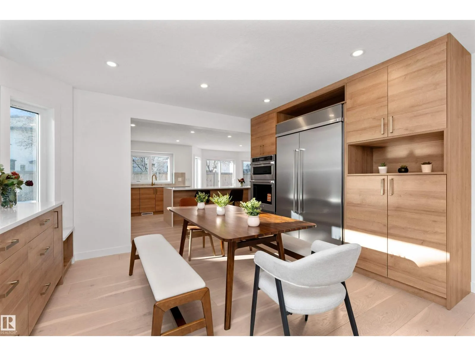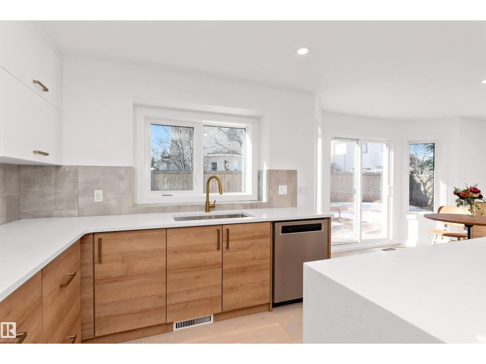 This newly renovated two-storey home is located in the Bulyea Heights community on a quiet cul-de-sac, offering over 4,284 sq. ft. of living space, 7 bedrooms, 4 bathrooms, a fully finished basement, and a triple attached garage. The grand entrance with vaulted ceilings opens to a bright living room, formal dining area, cozy family room, and a stunning kitchen featuring brand-new KitchenAid built-in appliances, gas cooktop, quartz countertops with waterfall island, ceiling-height cabinetry, and tile backsplash. The breakfast nook overlooks the backyard. A main floor bedroom, walk-in closet, and 3-pc bath complete this level. Upstairs boasts a spacious primary bedroom with sitting area, walk-in closet, and 5-pc ensuite, along with three generous bedrooms and a full bath. The fully developed basement offers a large rec room, two bedrooms, and a 3-pc bathroomâperfect for extended family or guests. Conveniently located with easy access to Whitemud Drive. New Two Furnace, watertank, triple pane Windows and etc (id:27476)