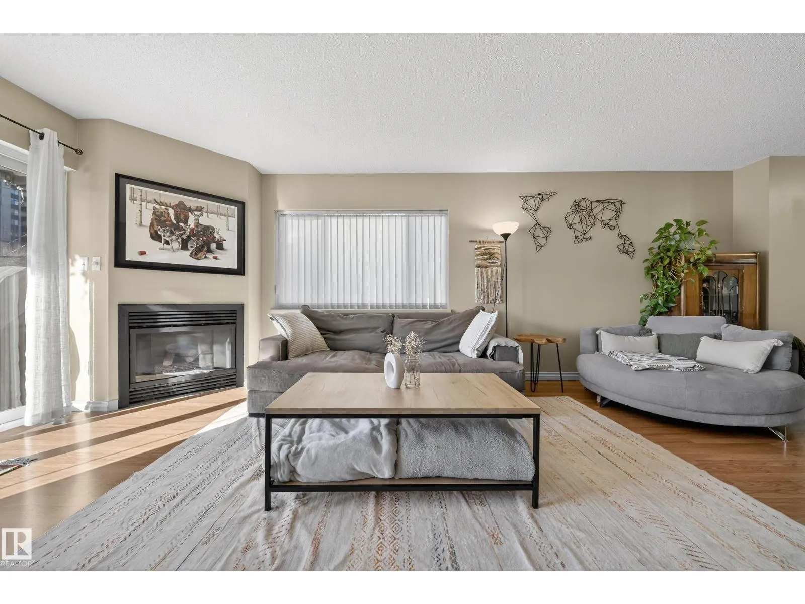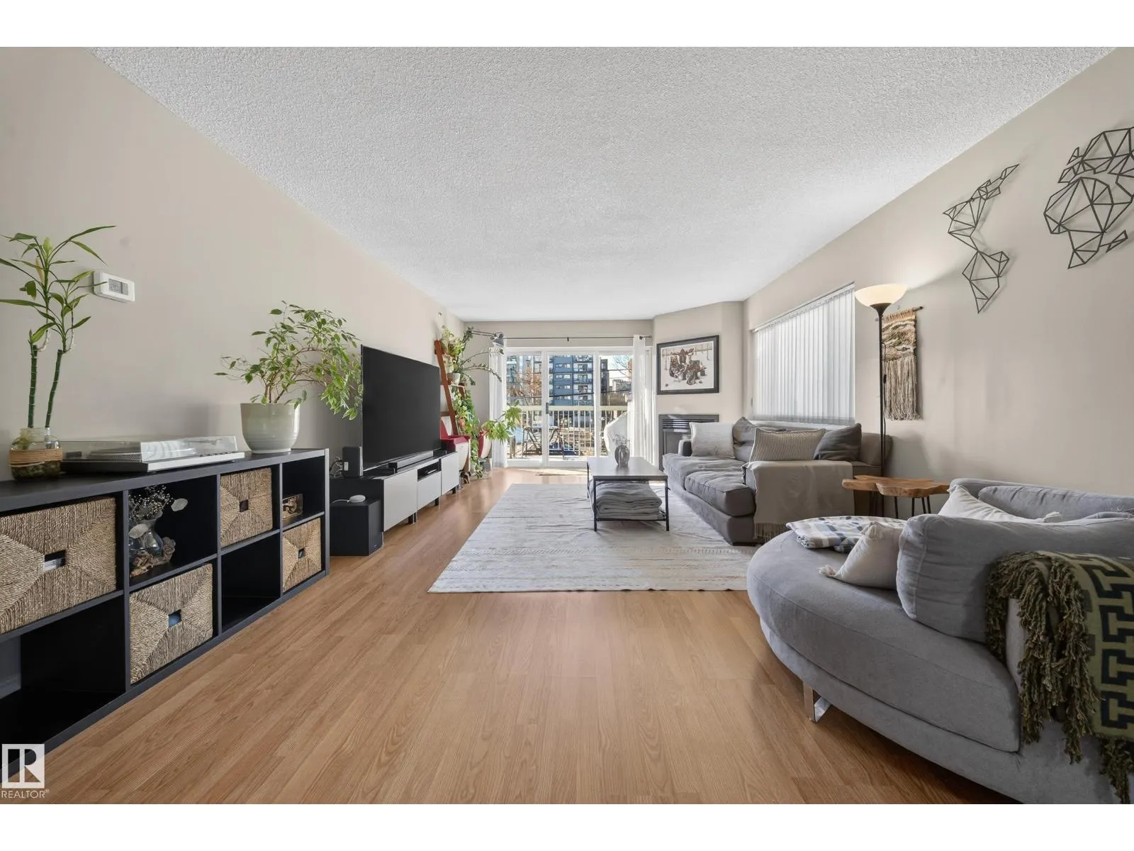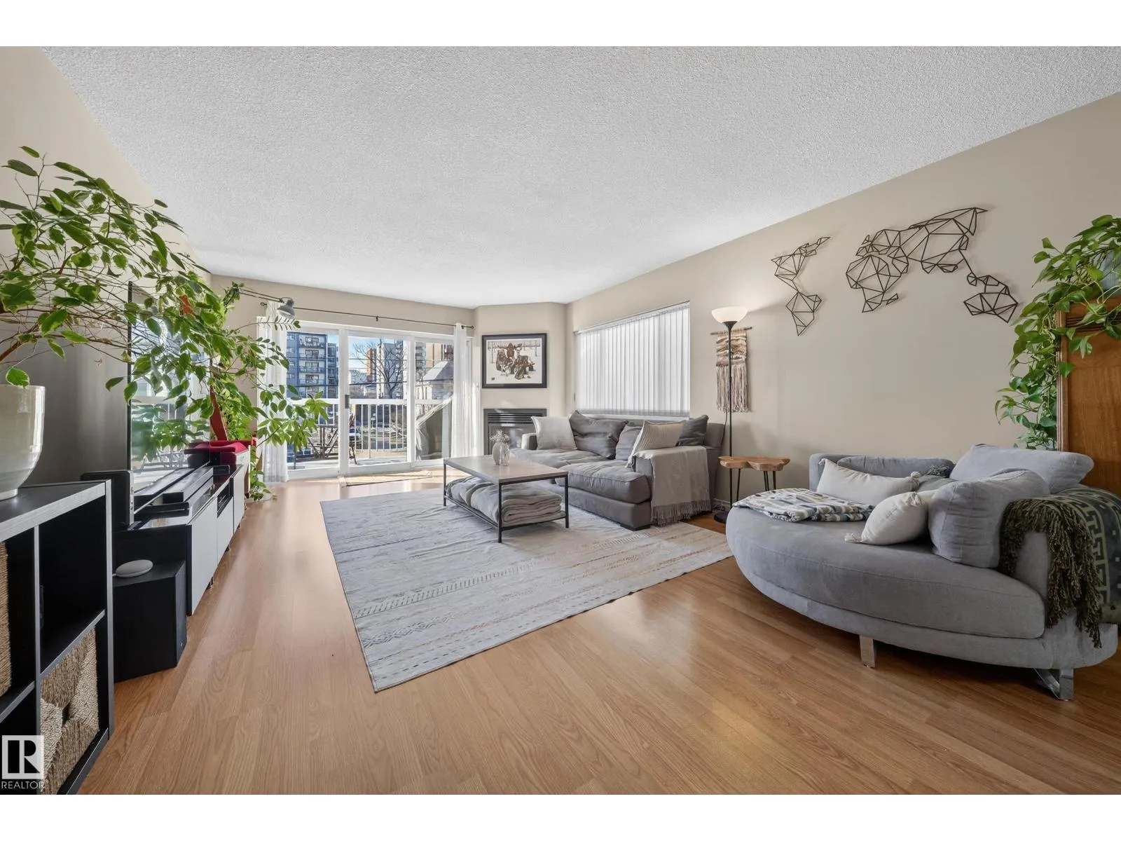 Wake up, grab a coffee, and step into a downtown lifestyle where work, restaurants, and late nights out are all part of your daily rhythm. Offering 1174 SF of comfortable living space, this 2 bedroom, 2 bath condo delivers room to breathe without giving up the energy of the city. The generous living area is anchored by a cozy gas fireplace and large windows that fill the space with natural light, while the kitchen flows effortlessly into dining and living areas, perfect for quiet nights in or hosting friends before heading to Rogers Place or nearby hotspots. Separated bedrooms create privacy for guests or a home office, with central A/C and in-suite laundry adding everyday ease. Step onto the oversized balcony, over 25 ft of outdoor space where mornings feel slower and evenings feel electric. The parking stall in the heated parkade means you never have to face the elements. If downtown living has been calling your name, this is where it starts. (id:27476)