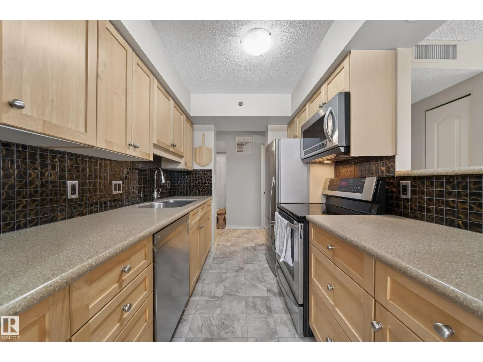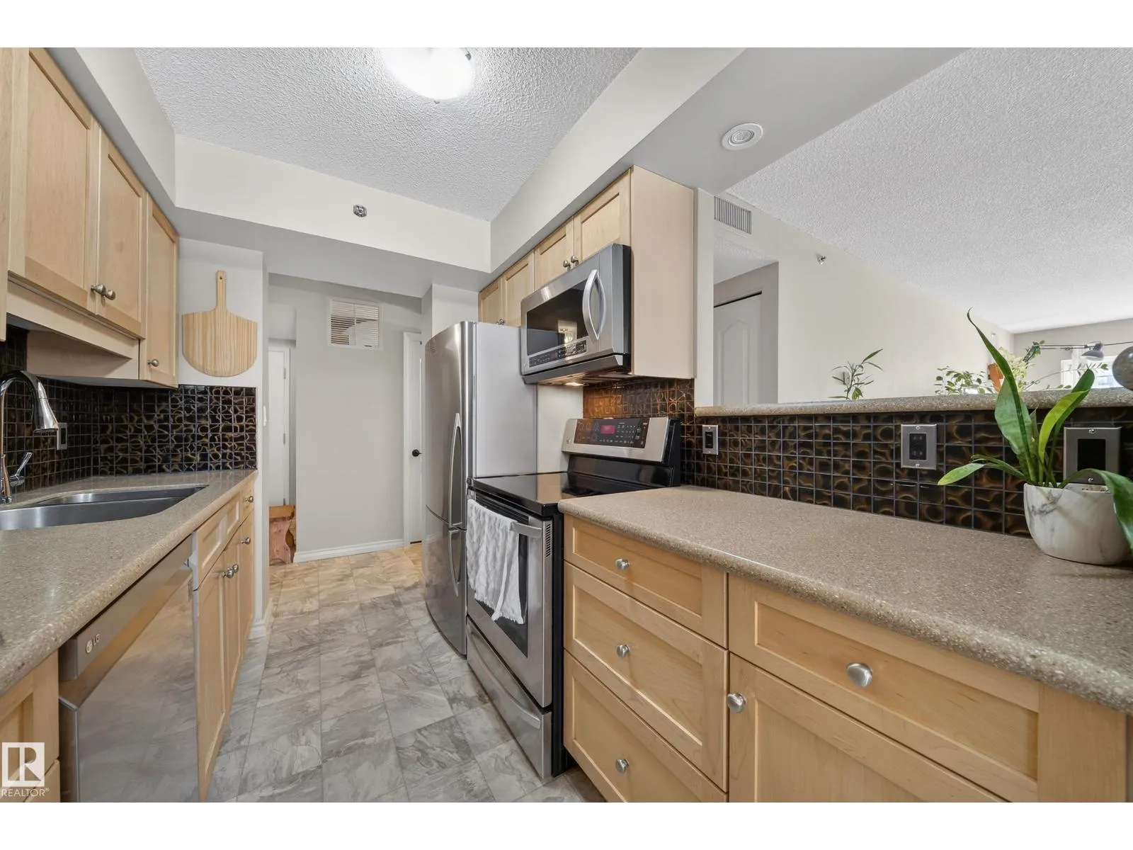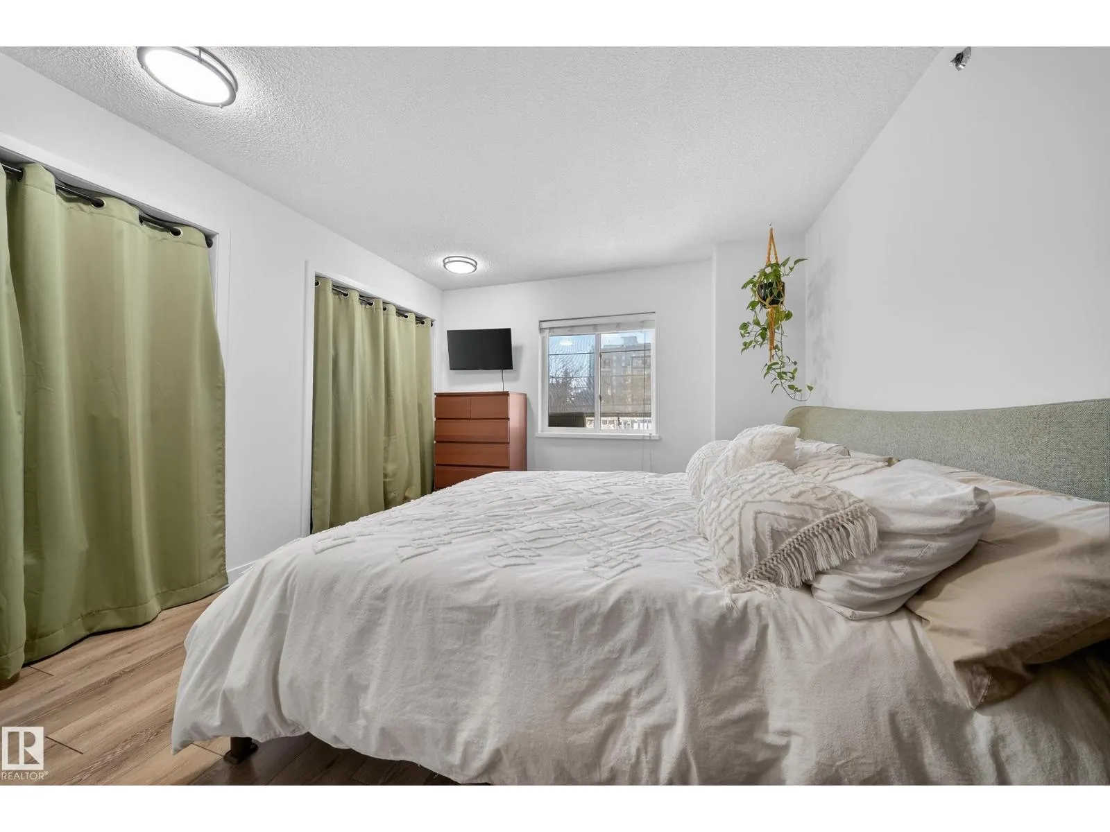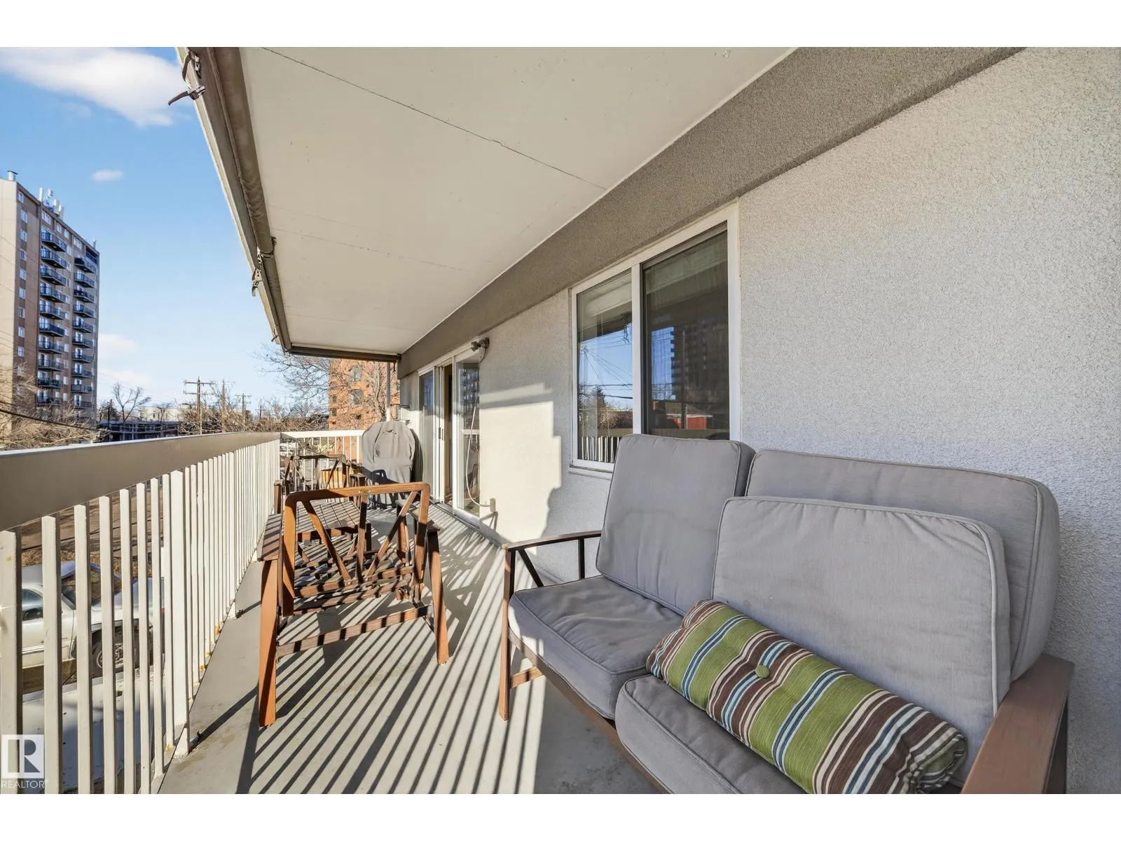 Wake up, grab a coffee, and step into a downtown lifestyle where work, restaurants, and late nights out are all part of your daily rhythm. Offering 1174 SF of comfortable living space, this 2 bedroom, 2 bath condo delivers room to breathe without giving up the energy of the city. The generous living area is anchored by a cozy gas fireplace and large windows that fill the space with natural light, while the kitchen flows effortlessly into dining and living areas, perfect for quiet nights in or hosting friends before heading to Rogers Place or nearby hotspots. Separated bedrooms create privacy for guests or a home office, with central A/C and in-suite laundry adding everyday ease. Step onto the oversized balcony, over 25 ft of outdoor space where mornings feel slower and evenings feel electric. The parking stall in the heated parkade means you never have to face the elements. If downtown living has been calling your name, this is where it starts. (id:27476)