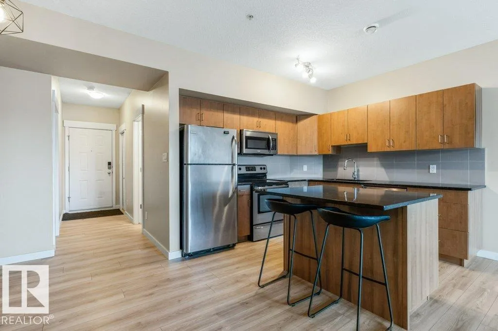 Discover Maxx Urban Living in the heart of Queen Mary Park â just blocks from Grant MacEwan University, Rogers Place, and the River Valley trails. This beautifully refreshed 1 bedroom + den offers flexibility, with the den easily used as a guest room or home office. Featuring 2 full bathrooms (including a private ensuite) and a spacious kitchen with quartz countertops, this home blends comfort and style. Enjoy in-suite laundry, underground titled parking, and a locked mudroom off the patio â perfect for bikes or gear â plus your own private street entrance. Recent updates include new vinyl plank flooring, new carpet, fresh paint, and 9-ft ceilings that make the space feel bright and open. Appliances included, & condo fees cover heat & water/sewer. Whether youâre a homebuyer or investor, Maxx Urban Living offers modern convenience, lasting value, and the best of downtown living. (id:27476)
