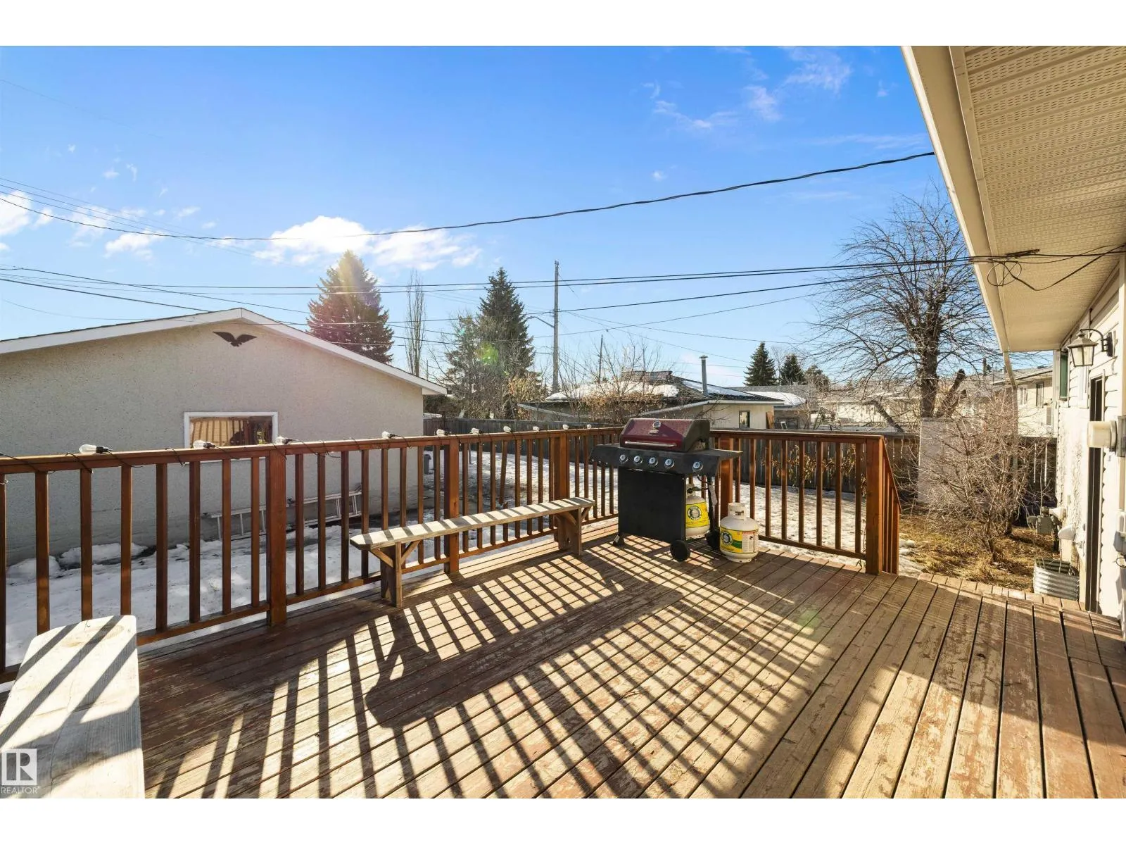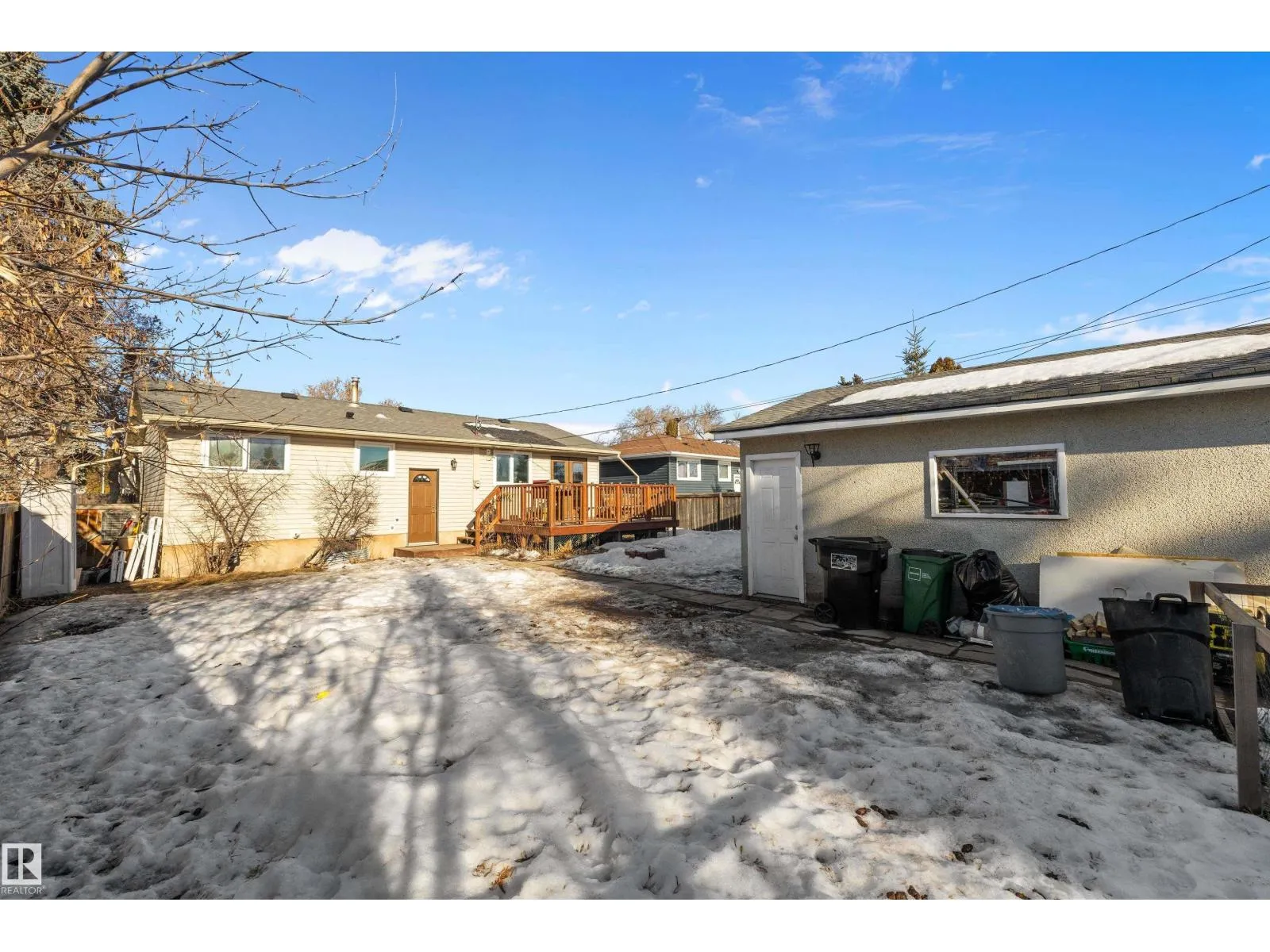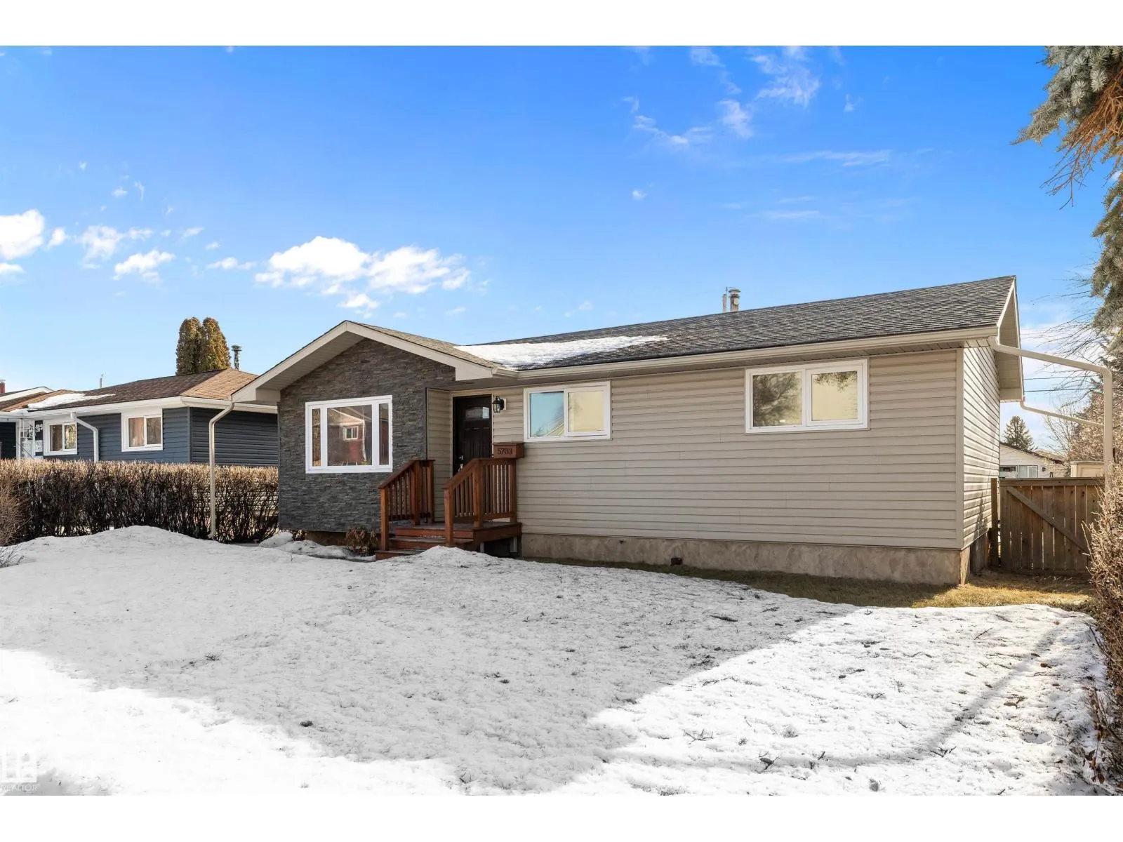 This 949 sq. ft. home in York could be what you have been waiting for to make your own. On the main level this home features a spacious living room, south facing kitchen with French doors to the backyard deck, 3 bedrooms and 4 piece bathroom. There is a separate back entrance to the downstairs where there is an area that has extra cabinets, a fridge and freezer. Two extra bedrooms, sitting area, 4 piece bathroom and laundry room complete the basement. The upgrades over the years include exterior insulation around the house before siding and stone brick work was completed (2009), vinyl windows (2008), hot water tank (2016) and the furnace was just installed (2025). The sunny backyard has plenty of space and a double detached garage. This home is in a great neighbourhood close to schools, public transportation, shopping and has great access to the Anthony Henday. With a little love you could make this house your home. (id:27476)