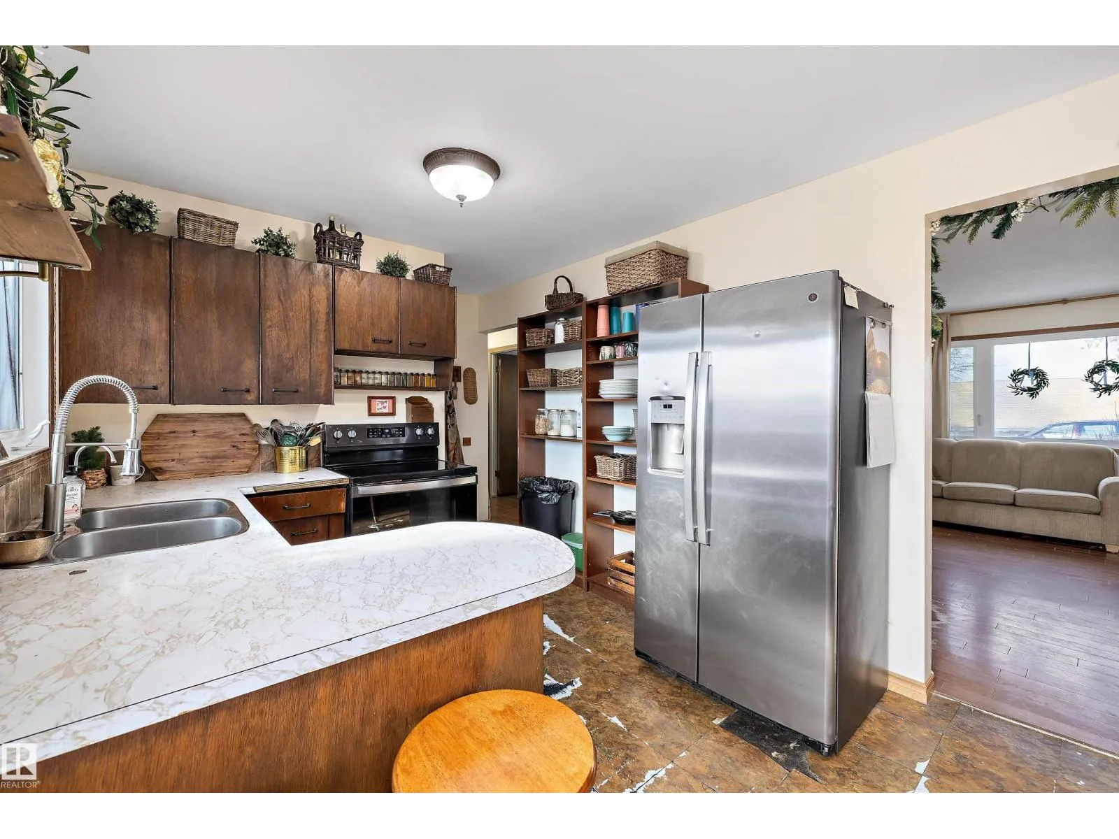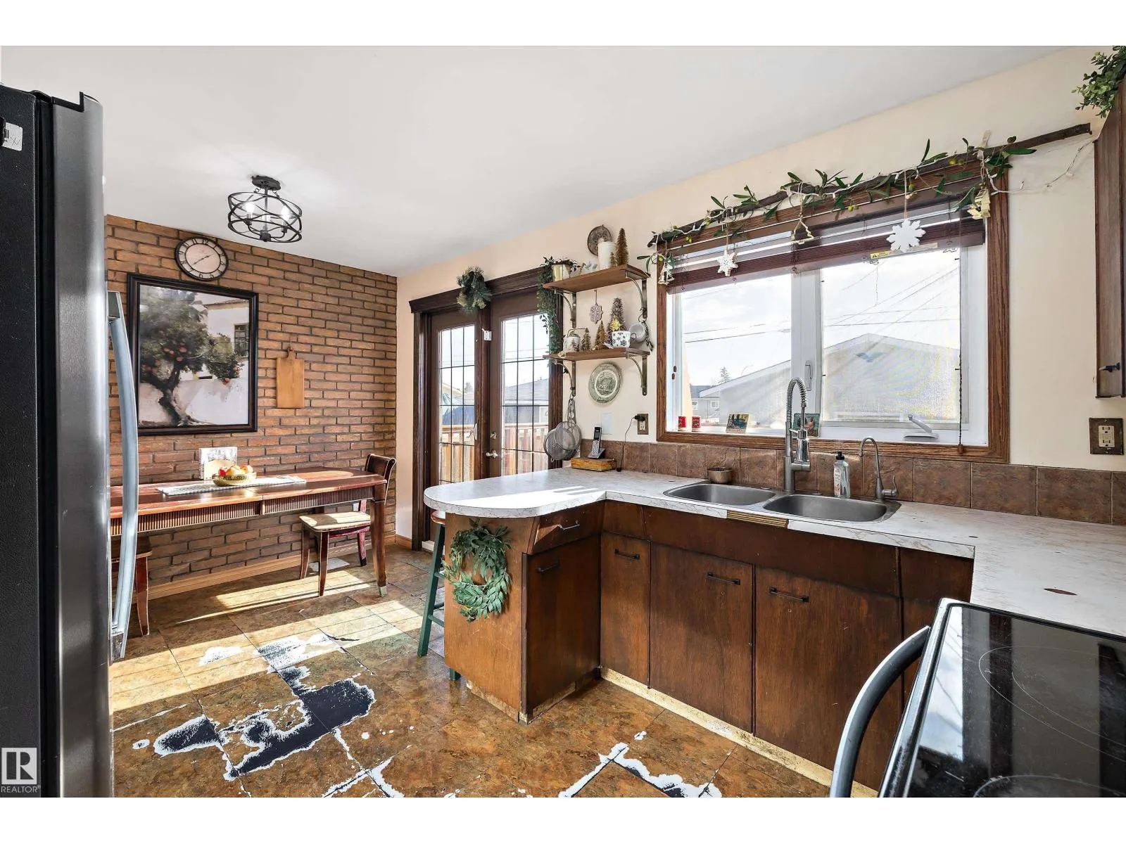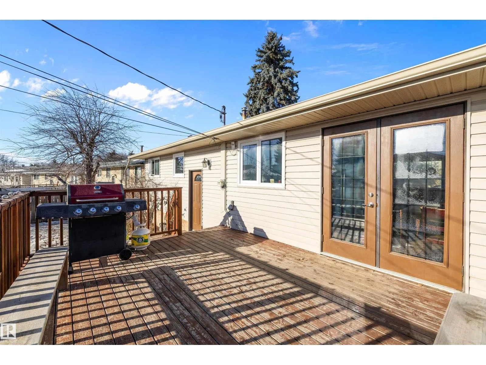 This 949 sq. ft. home in York could be what you have been waiting for to make your own. On the main level this home features a spacious living room, south facing kitchen with French doors to the backyard deck, 3 bedrooms and 4 piece bathroom. There is a separate back entrance to the downstairs where there is an area that has extra cabinets, a fridge and freezer. Two extra bedrooms, sitting area, 4 piece bathroom and laundry room complete the basement. The upgrades over the years include exterior insulation around the house before siding and stone brick work was completed (2009), vinyl windows (2008), hot water tank (2016) and the furnace was just installed (2025). The sunny backyard has plenty of space and a double detached garage. This home is in a great neighbourhood close to schools, public transportation, shopping and has great access to the Anthony Henday. With a little love you could make this house your home. (id:27476)