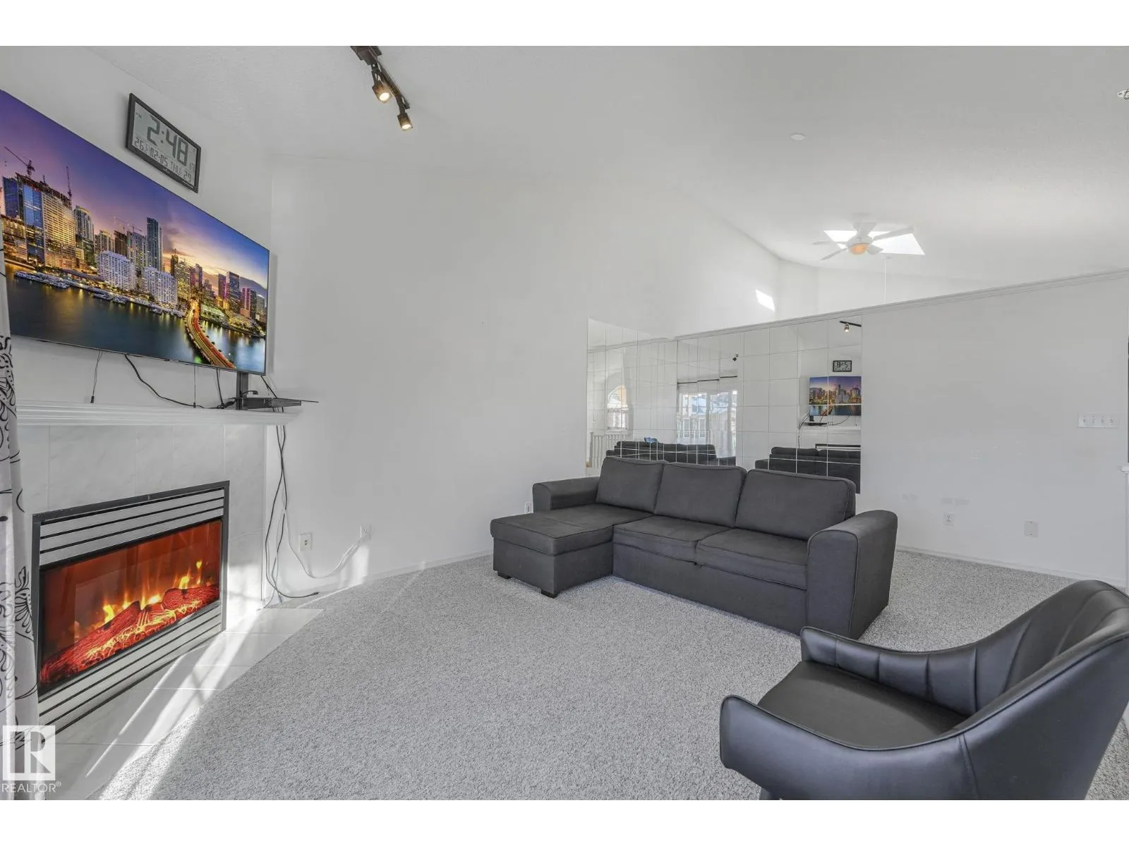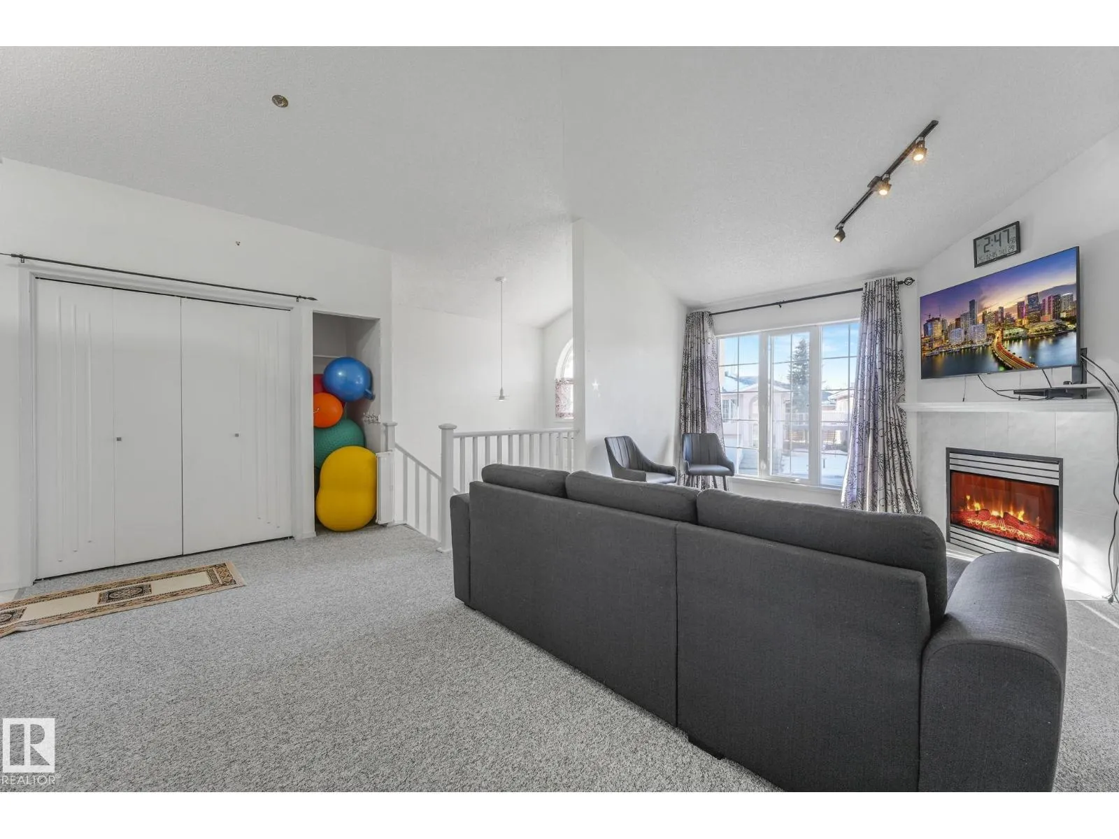 Stylish end-unit condo offering ~2,400 sq ft of versatile livingâperfect for young professionals seeking space, comfort, and convenience. The bright living room features a soaring 15-ft vaulted ceiling and gas fireplace, while the large kitchen includes a walk-in pantry, skylight, and plenty of prep space. Enjoy central A/C, pre-wired alarm, two fireplaces, and a private composite deck with BBQ hookup. Upstairs offers two bedrooms, including a spacious primary with walk-in closet and ensuite. The fully finished basement adds a large third bedroom, full bath, and flexible space for a home office or gym. Single garage plus driveway parking. Located in a quiet, well-kept complex of only 38 units with mature landscaping. Steps to shops, medical services, coffee, and future LRT, and minutes to trails, schools, Henday, Whitemud, and major shoppingâan ideal blend of lifestyle and location. (id:27476)