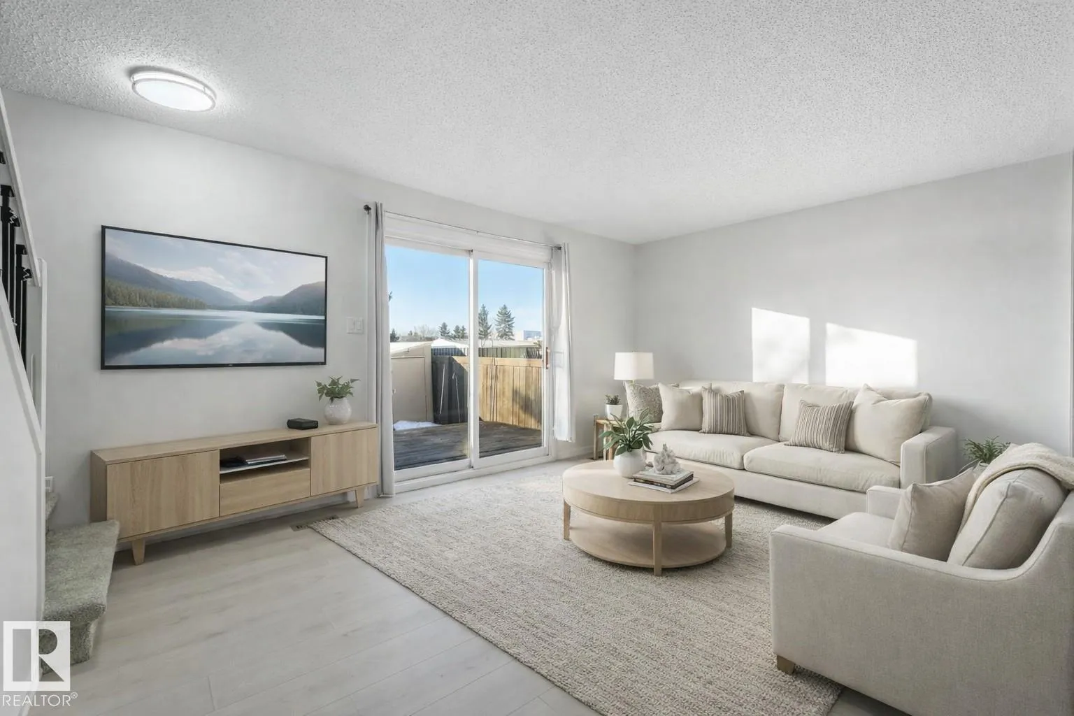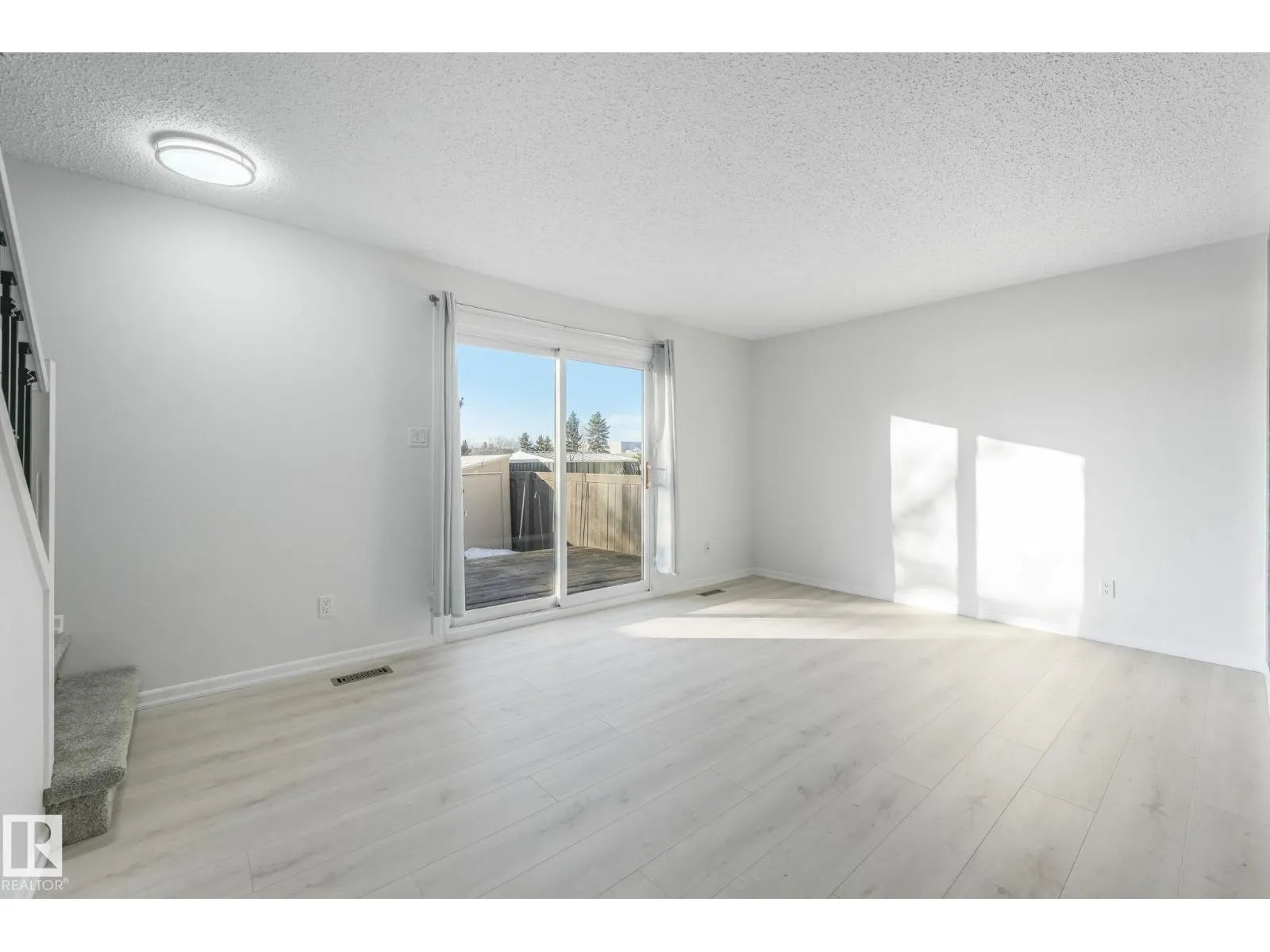 Fresh, squeaky clean, and newly renovated. Backing onto the park GREEN SPACE, this beautiful 3-bedroom, 2 full-bath townhome is sure to please the discerning buyer or investor. Every detail is seen to. Shows 10 +!! 2026 additions: brand-new furnace, beautiful vinyl plank flooring, new paint (walls & ceiling) & new lighting! Assigned parking right outside the front door. Bright & sunny main floor with spacious eat-in kitchen. The finished basement family room includes an adjacent full 3-piece bathroom & laundry/utility/storage area. Sunny, south-facing backyard features a deck, storage shed, views of mature spruce trees, and convenient gate access to the park area. Affordable condo fees, too. A lovely home in a great location! Near Costco, Wal-Mart, Superstore & Cinema. Walk to school & shopping, and Hermitage Park dog park. Welcome Home to Clareview Lane! *(some photos are virtually staged) (id:27476)