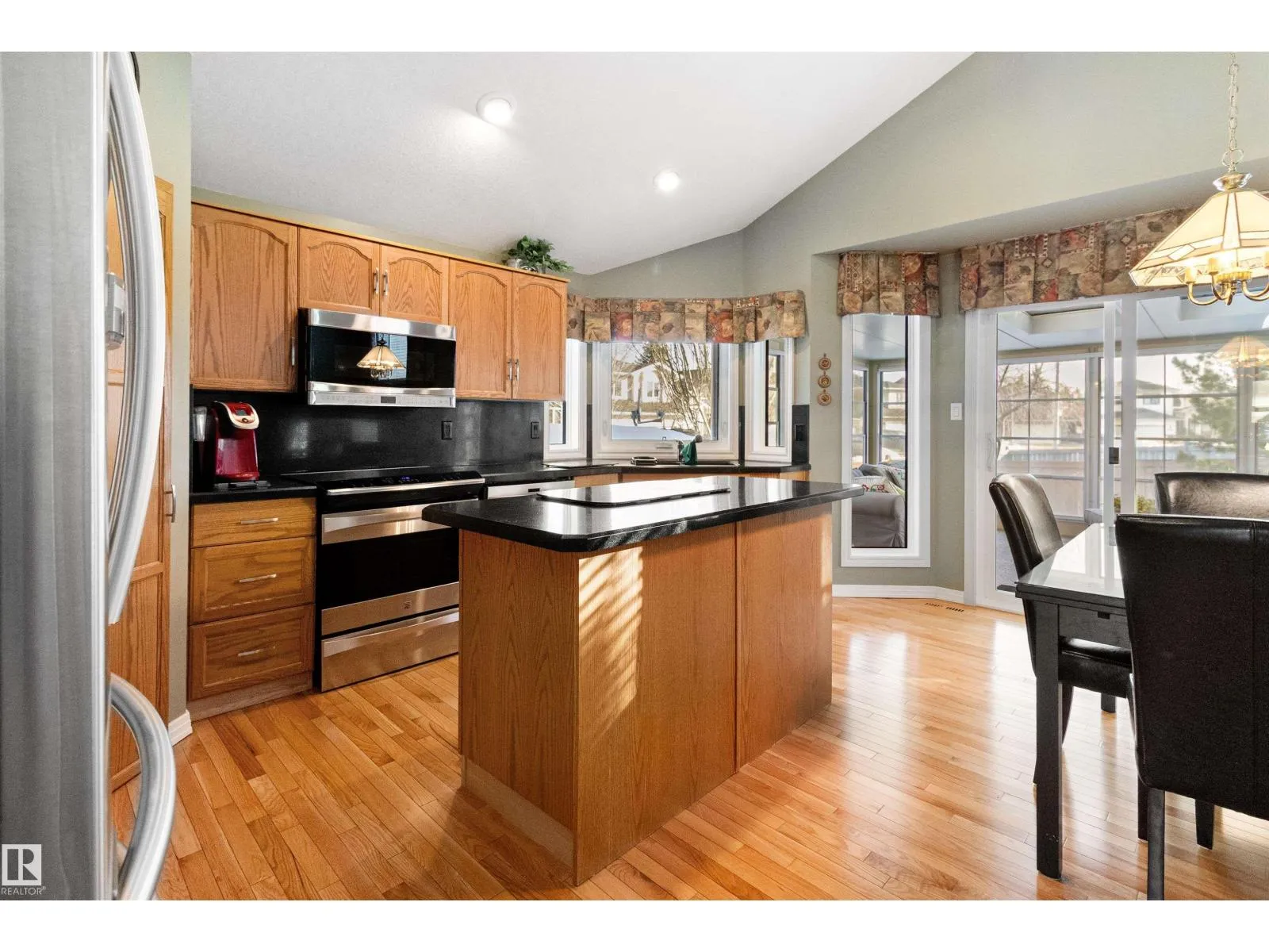 Located in one of south Edmonton's BEST communities is this beautiful custom built home! Meticulously maintained over the years. Situated on a corner lot and offering over 2300 square feet of living space. Very open and bright design with vaulted ceilings and hardwood floors. Huge front living room & open dining area. Large eat-in kitchen with an abundance of cabinetry, pot drawers, island, appliances & granite countertops. The spacious family room features a cozy gas fireplace plus flex space/office. There are 4 bedrooms in total & 3 bathrooms. The Primary Bedroom has a 4 piece ensuite plus walk-in closet. You'll LOVE the 3 Season Sunroom! Low-maintenance backyard (no grass) with perennials, interlocking brick patio, firepit with stone surround, shed, gazebo & swing. New triple glazed windows, new front door & exterior glass, new washer & dryer & a new furnace. Utility room with workshop area. Double attached garage and great curb appeal! Close to schools, park and community centre. See it today (id:27476)