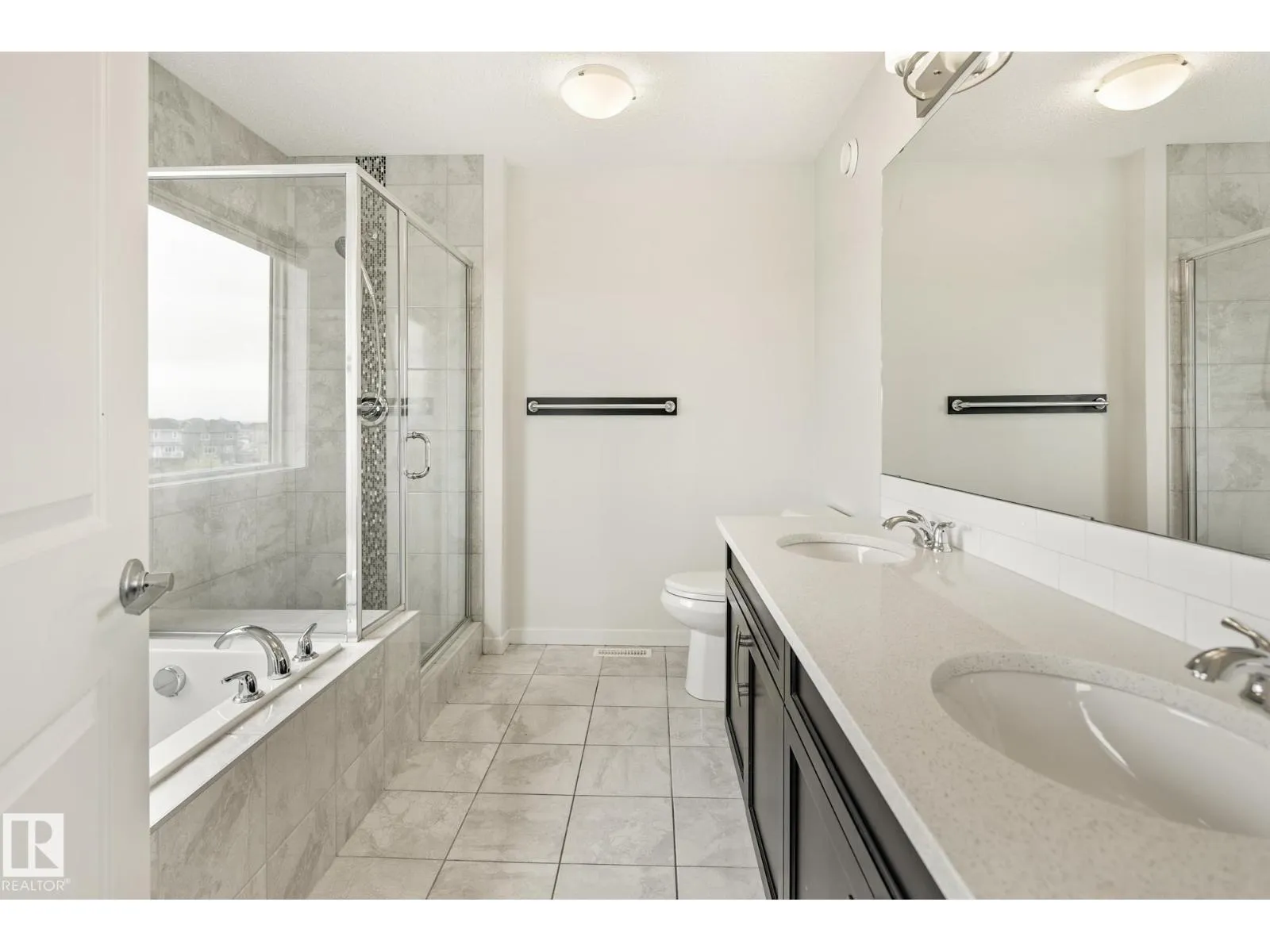 Welcome to this inviting family home in the friendly community of Walker! With an attached double garage, separate side entrance, rear deck, and a landscaped, partially fenced backyard, thereâs plenty of space for outdoor play, BBQs, and everyday living. Inside, the open-concept main floor brings everyone together with a bright living room featuring a cozy electric fireplace and a modern kitchen with stainless steel appliancesâperfect for cooking, gathering, and making memories. Upstairs, a spacious bonus room offers an ideal spot for movie nights or a play area, while convenient second-floor laundry makes busy routines easier. Three comfortable bedrooms complete the level, including a generous primary suite with a walk-in closet and a relaxing ensuite with double sinks, a walk-in shower, and a soaker tubâyour own little retreat after a long day. A wonderful place to grow, play, and call home in family-friendly SE Edmonton. (id:27476)