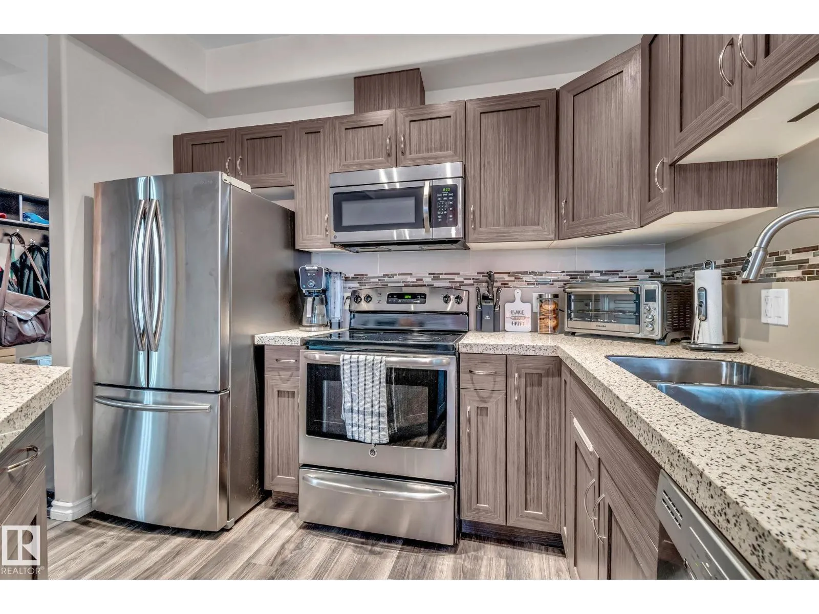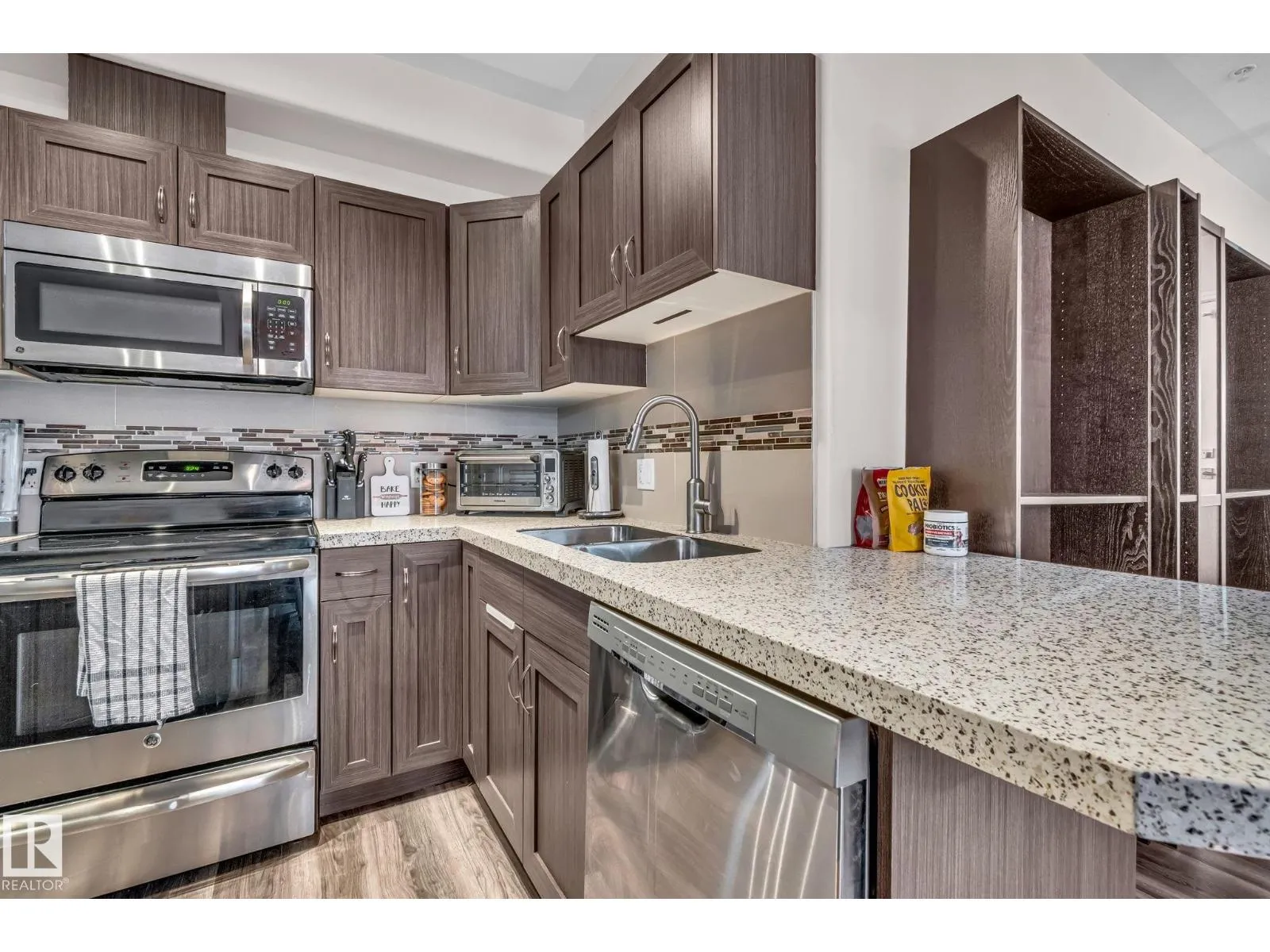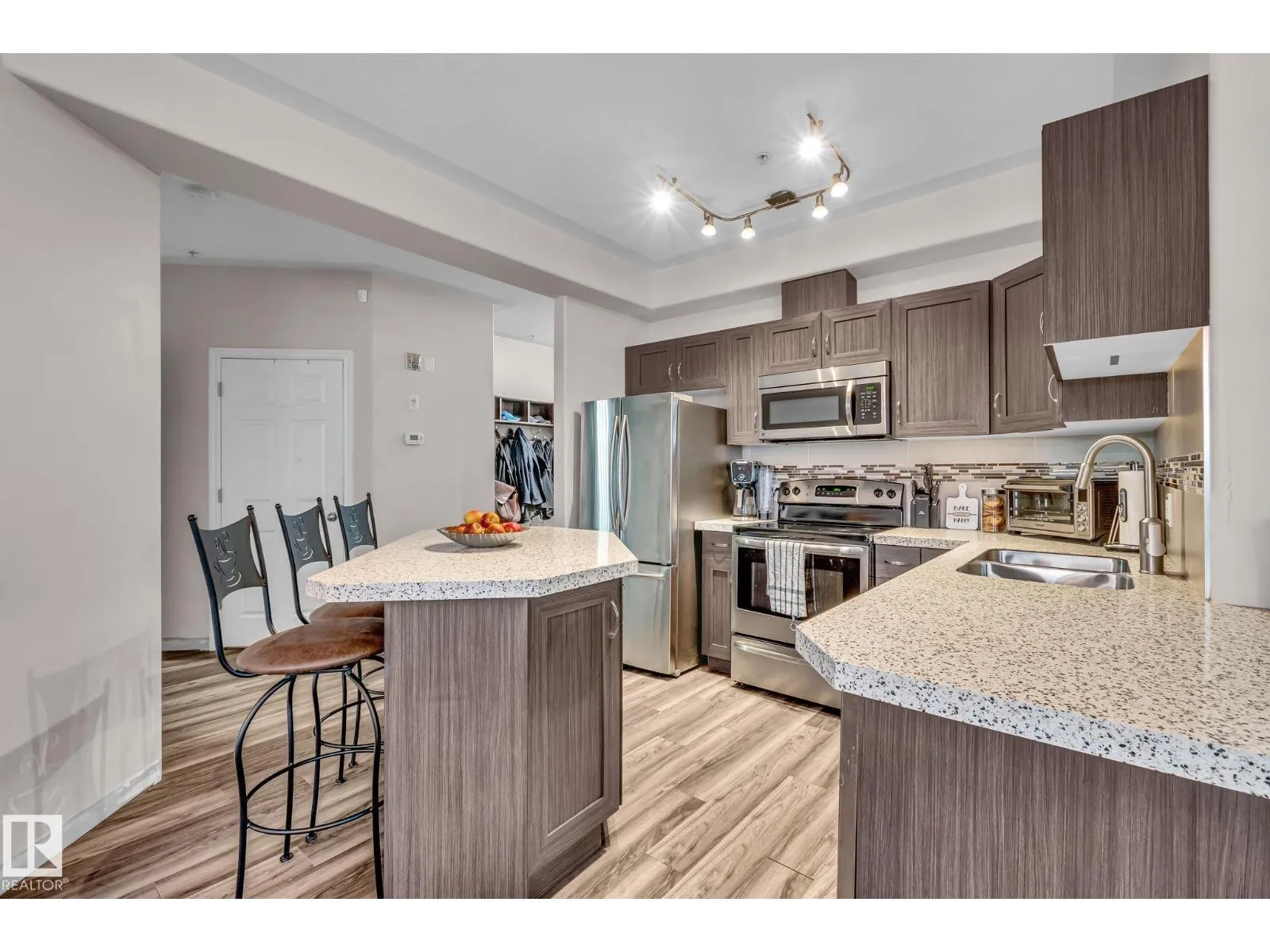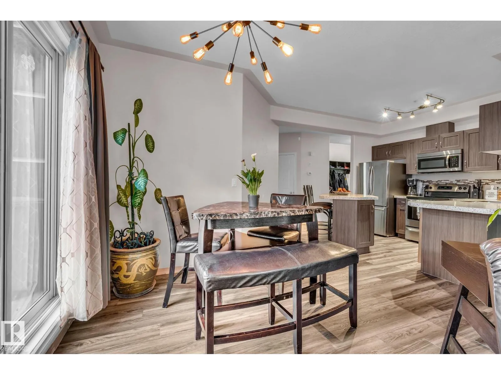 Wake up to sunlight streaming through oversized windows and enjoy coffee on either of your two private patiosâone opening to a grassy area where your dog can actually run, a rare perk only a pet-friendly ground-floor home can offer. Inside, the fresh new flooring and modern baseboards elevate the space, while the open-concept design pairs warmth and style with quartz counters and a gas fireplace. A natural-gas BBQ hookup lets you grill year-round. Just steps from Unity Square and the River Valley trail system, youâre perfectly positioned for weekend walks, errands, or meeting friends. With two full bathrooms (including an ensuite), hosting stays effortlessly, and the heated underground parking with storage plus a car-wash adds next-level convenience. From gardening to patio lounging to letting your pup roam safely, this Wîhkwêntôwin home delivers a lifestyle that feels spacious, modern, and unmistakably comfortable. (id:27476)