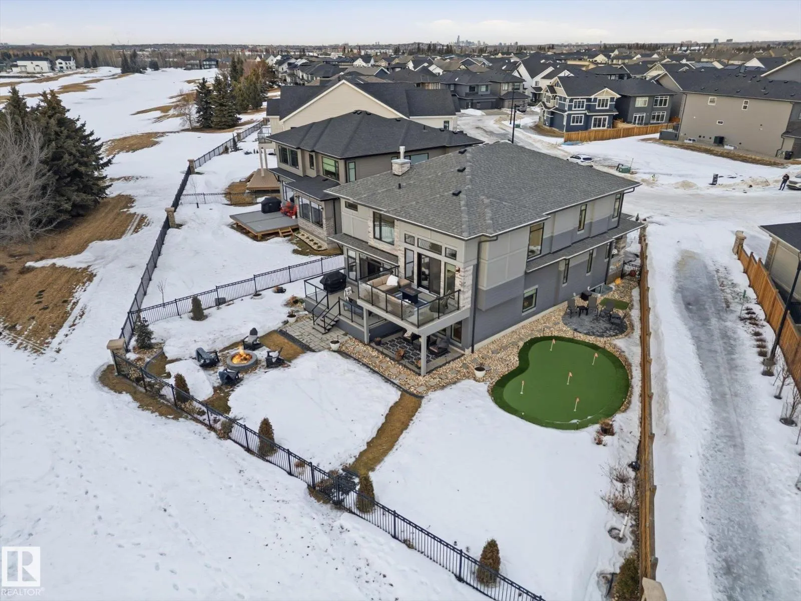 Award-winning luxury residence in exclusive Jagare Ridge backing the 17th tee box with SW exposure. This architecturally inspired split-level design offers beautifully planned living space with an outstanding, functional layout. The main level flows effortlessly from elegant living areas to a gourmet kitchen featuring premium appliances, abundant cabinetry, walk-in pantry, & a convenient butlerâs pantryâperfect for entertaining & everyday living. A private office tucked on its own level provides an ideal work-from-home retreat. Upstairs youâll find a spacious bonus room, convenient laundry w/sink, & two generous bedrooms connected by a stylish shared ensuite bathroom. The primary suite is a true sanctuary w/dual sinks, large glass shower, stand-alone tub, & two walk-in closets. Outdoor living is exceptional with two maintenance-free decks, firepit lounge, & private putting green overlooking the golf course. Fully developed basement, heated triple garage, hot water on demand, water softner & much more. (id:27476)