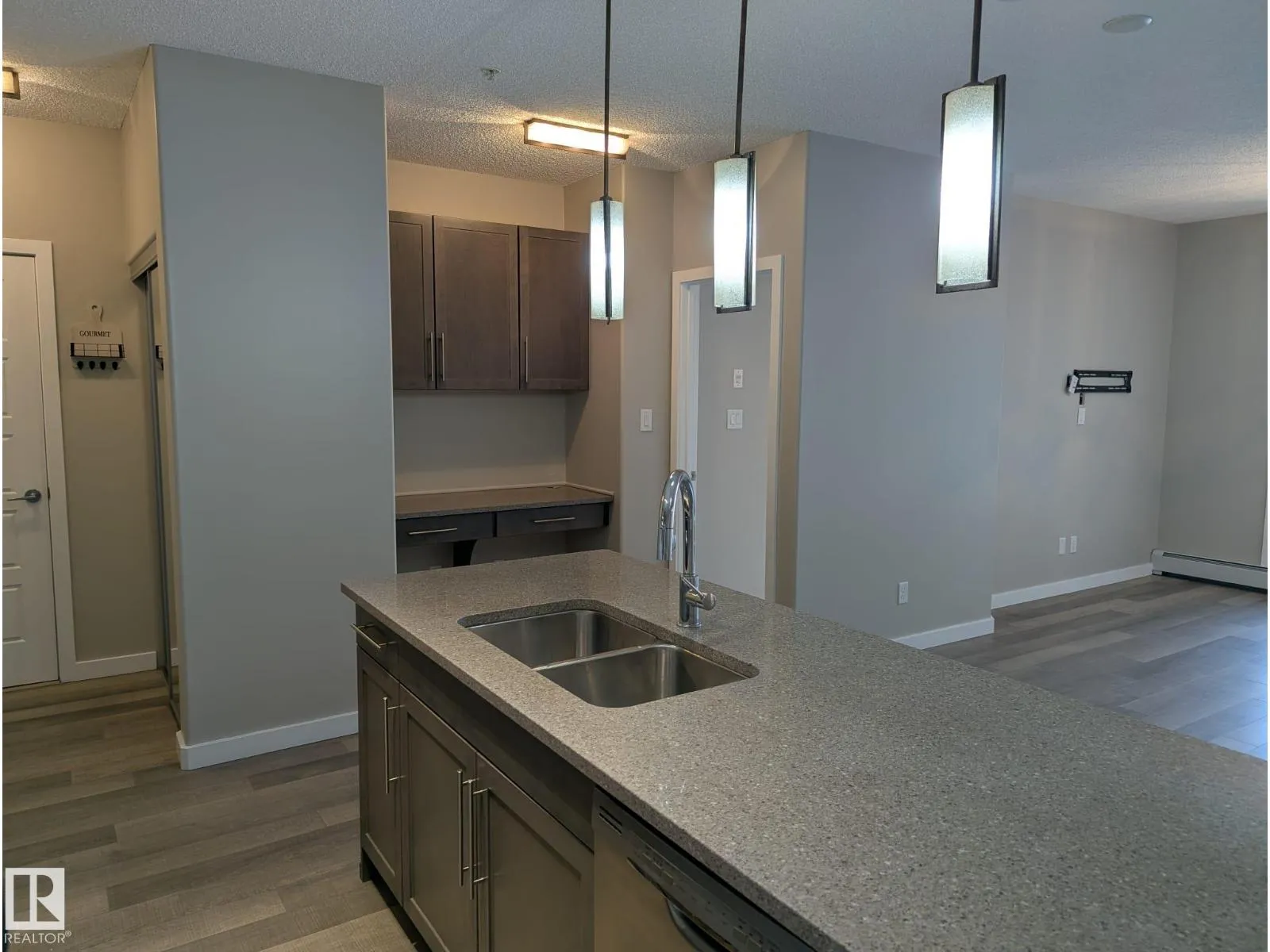This is the one - Exquisite 2 bedroom/2 ensuite bathroom condo on the 3rd floor. Walk into this unit and you will immediately notice the extra square footage compared to some of the other 2 bedroom units. Optimal layout with a large bedroom on either side, each with their own full ensuite. Premium color scheme and finishes throughout. Stylish kitchen cabinets with quartz countertops, tiled backsplash, stainless steel appliances. Built in separated office space, stackable laundry and double front entry closet. Good sized balcony that protrudes out a bit more than the others which helps add to the privacy. Titled underground parking stall and a storage room attached. Low condo fees, and extra amenities include a fitness room and a social room. All this right next to the ravine, yet still close to major commuter roads, shopping and schools. This unit has everything you need and more! (id:27476)