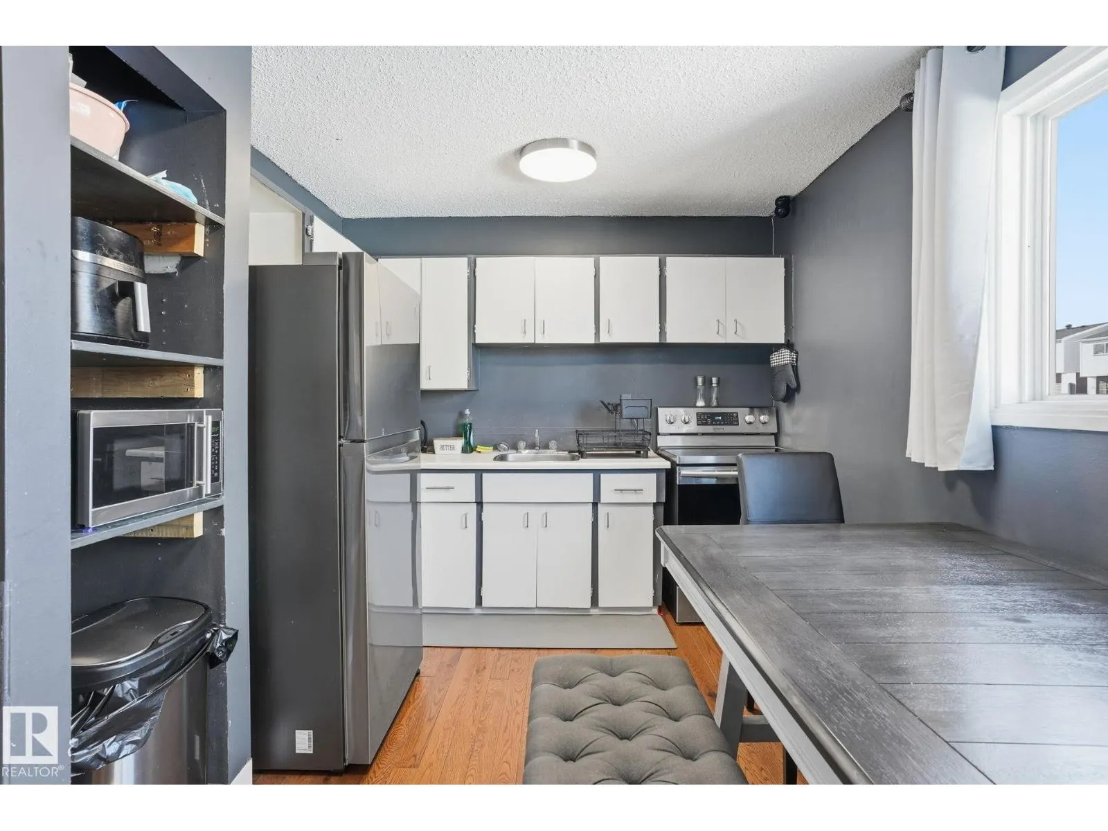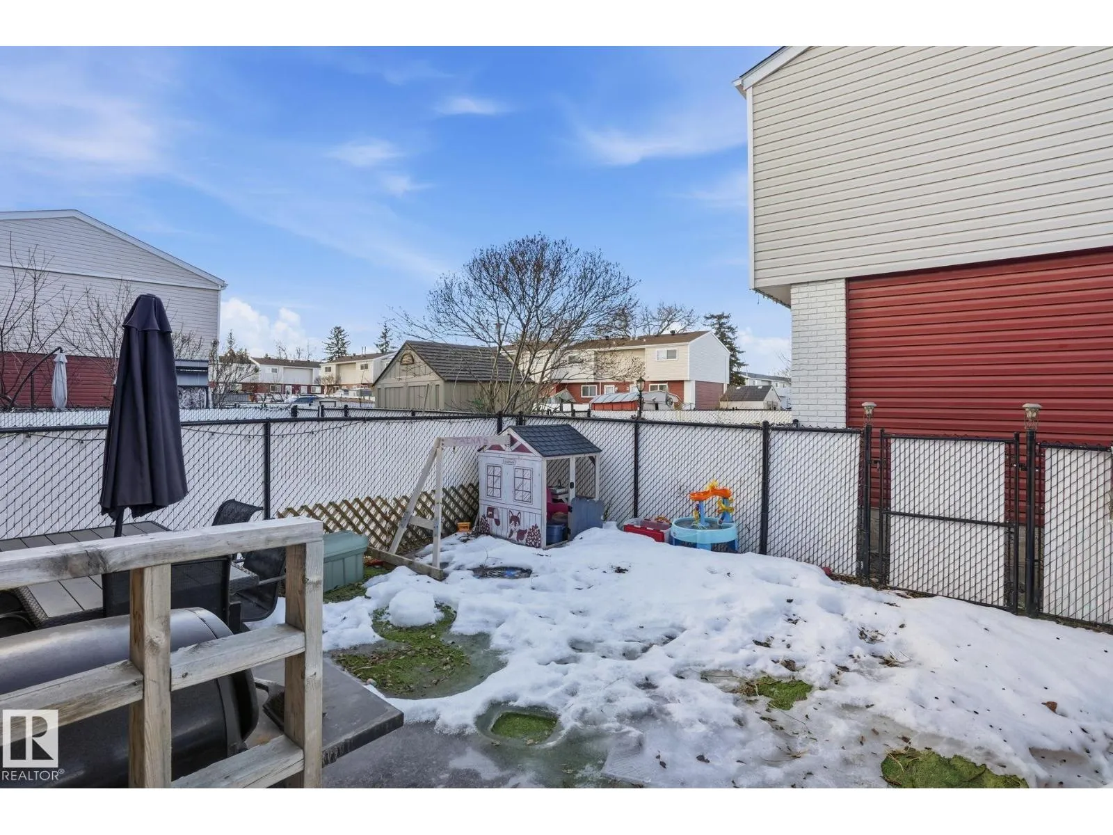 Welcome to this 3-bedroom, 1.5-bathroom townhouse located in the community of Homesteader in Northeast Edmonton. Offering approximately 883 sq ft of above-grade living space, this home provides a functional layout and convenient access to major routes and amenities. The main floor features a living area with large windows allowing natural light, along with a kitchen and dining space designed for everyday use. The kitchen includes cabinet storage and appliance space with an efficient layout. The upper level includes three bedrooms and a full bathroom. The lower level offers additional space and includes a 2-piece bathroom. This property is situated with convenient access to Yellowhead Trail, providing connectivity across the city. Schools, parks, public transit, and shopping amenities are located within a short distance. An opportunity to own in the established neighborhood of Homesteader. (id:27476)