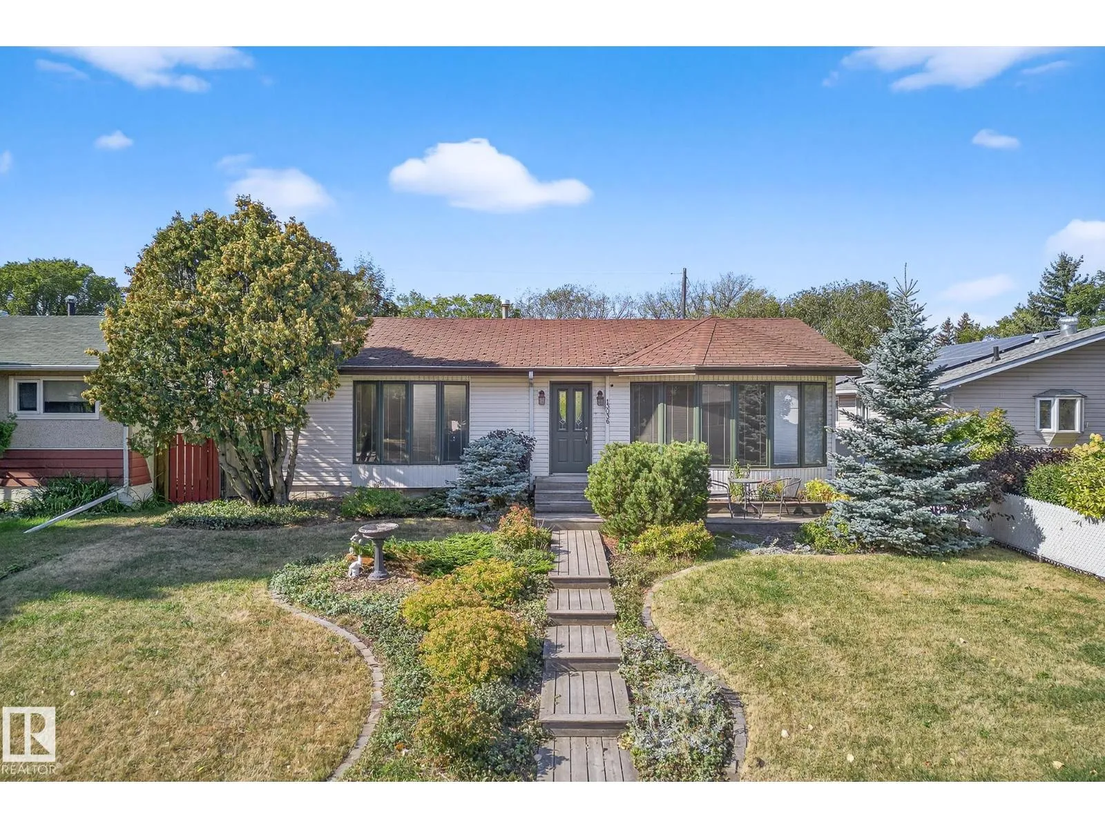 Welcome to one of the neighborhoodâs most charming bungalows, offering over 2,000 sq ft of total living space. This beautifully updated 3-bedroom home sits next to Chalmers Park & is a rare findâperfect as a long-term residence or a smart investment. The open, bright interior features oversized bedrooms & large bay windows, complemented by thoughtful renovations. Updates include a brand-new custom white kitchen with built-in shelving/pantry, fresh paint throughout, brand new custom roller blinds, luxury vinyl plank flooring throughout, new baseboards, stairs, interior doors & hardware, a new double sink and faucet, plus freshly painted window trims & exterior doors. Situated on an almost 6,300 sq ft lot, the customized landscaping sets this home apart. Enjoy a welcoming front step-up walkway & balcony, a beautifully maintained two-tier backyard garden, stone firepit area, expansive deck, & mature apple & cherry treesâyour own private outdoor oasis. Blending modern updates with classic bungalow character! (id:27476)