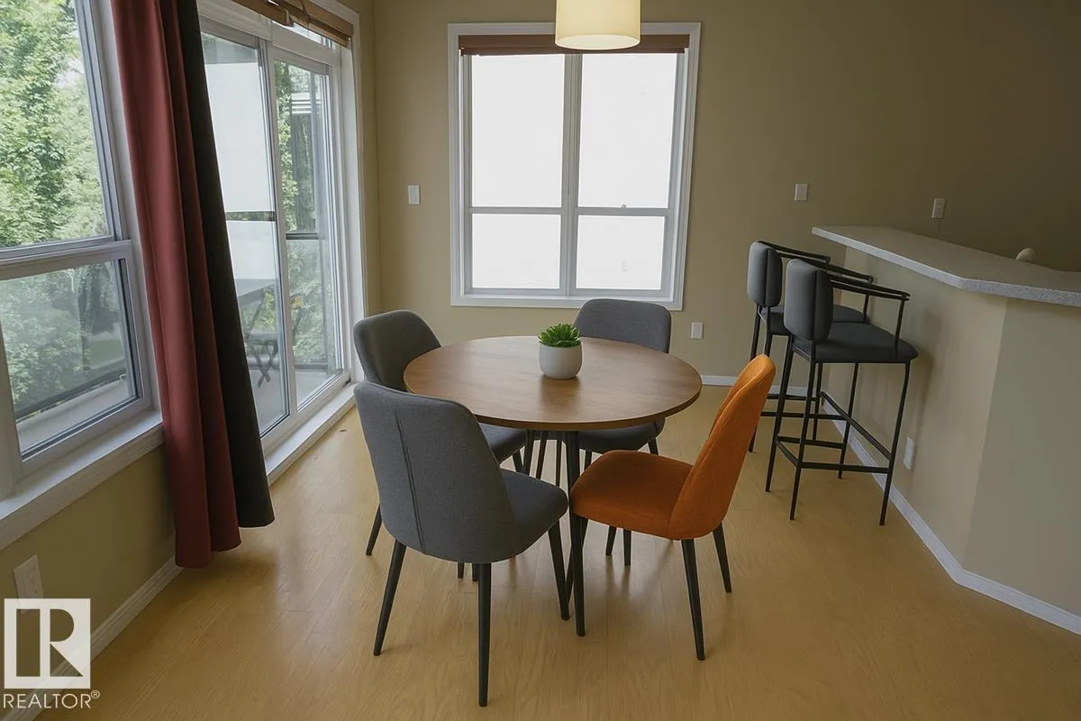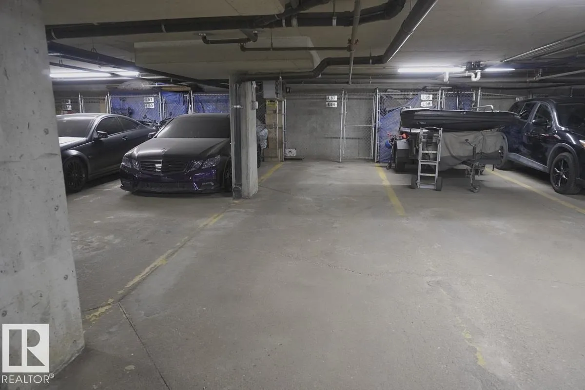 Step into this stylish 4th-floor corner unit in downtown Edmonton, perfectly situated just steps from the LRT, and moments from trendy restaurants, coffee shops, and boutique shopping. Enjoy quick access to the Ice District, Brewery District, Legislature, U of A, and the scenic river valley trails. This bright AIR CONDITIONED 2-bedroom unit features an open-concept with an abundance of windows. The kitchen boasts a large raised island with built-in wine rack, updated STAINLESS steel appliances. The inviting living room is warmed by a cozy electric fireplace, while the dining area opens to a spacious west-facing balconyâcomplete with a gas BBQ hookupâoverlooking a beautiful tree-lined street. The bathroom impresses with a DOUBLE sink, generous counter space, a JETTED SOAKER tub, and private ensuite access from the primary bedroom. A second bedroom and convenient IN-SUITE LAUNDRY add to the functionality. Your TITLED UNDERGROUND TANDEM parking includes a storage cage. With immediate possession available. (id:27476)