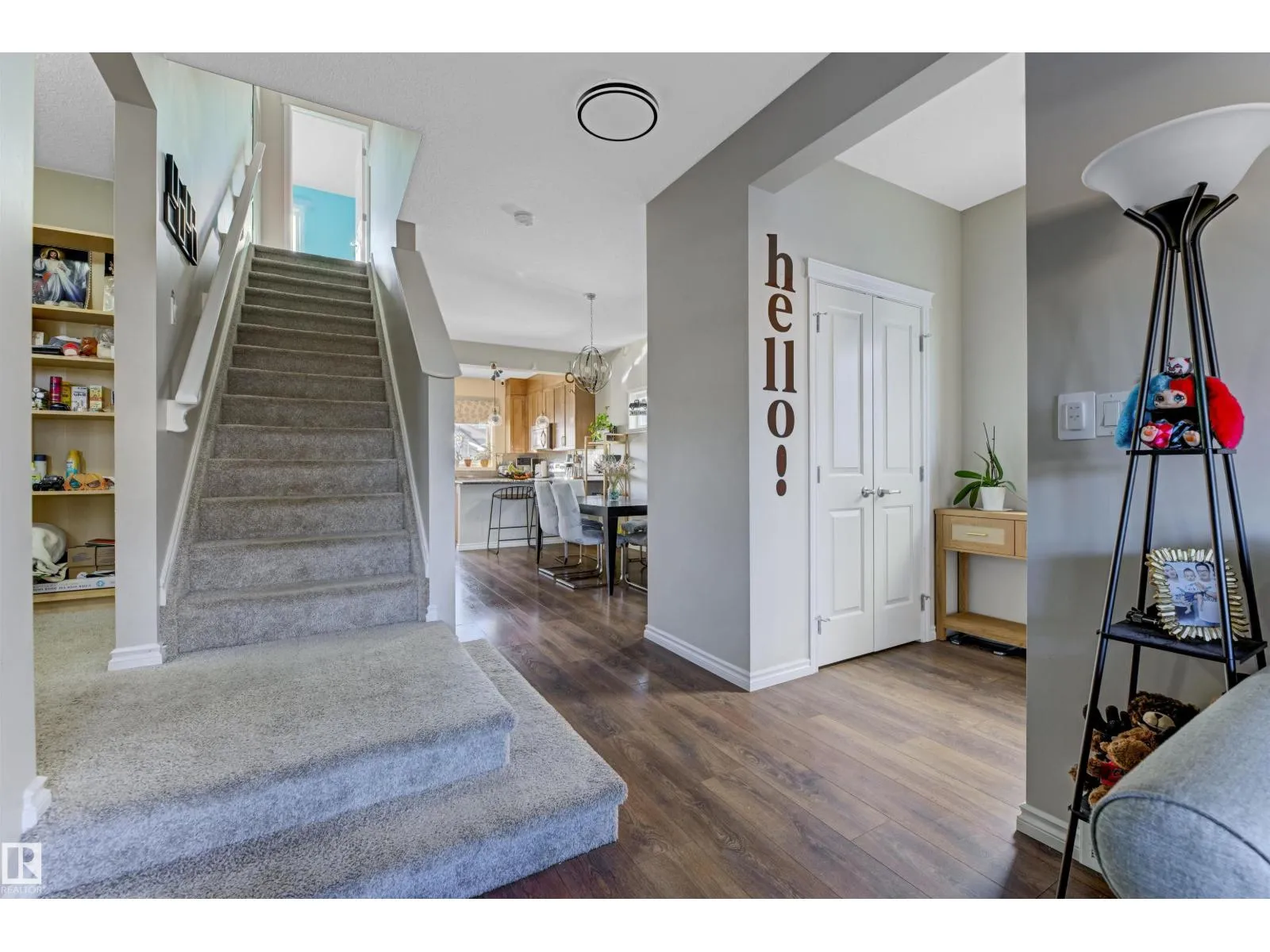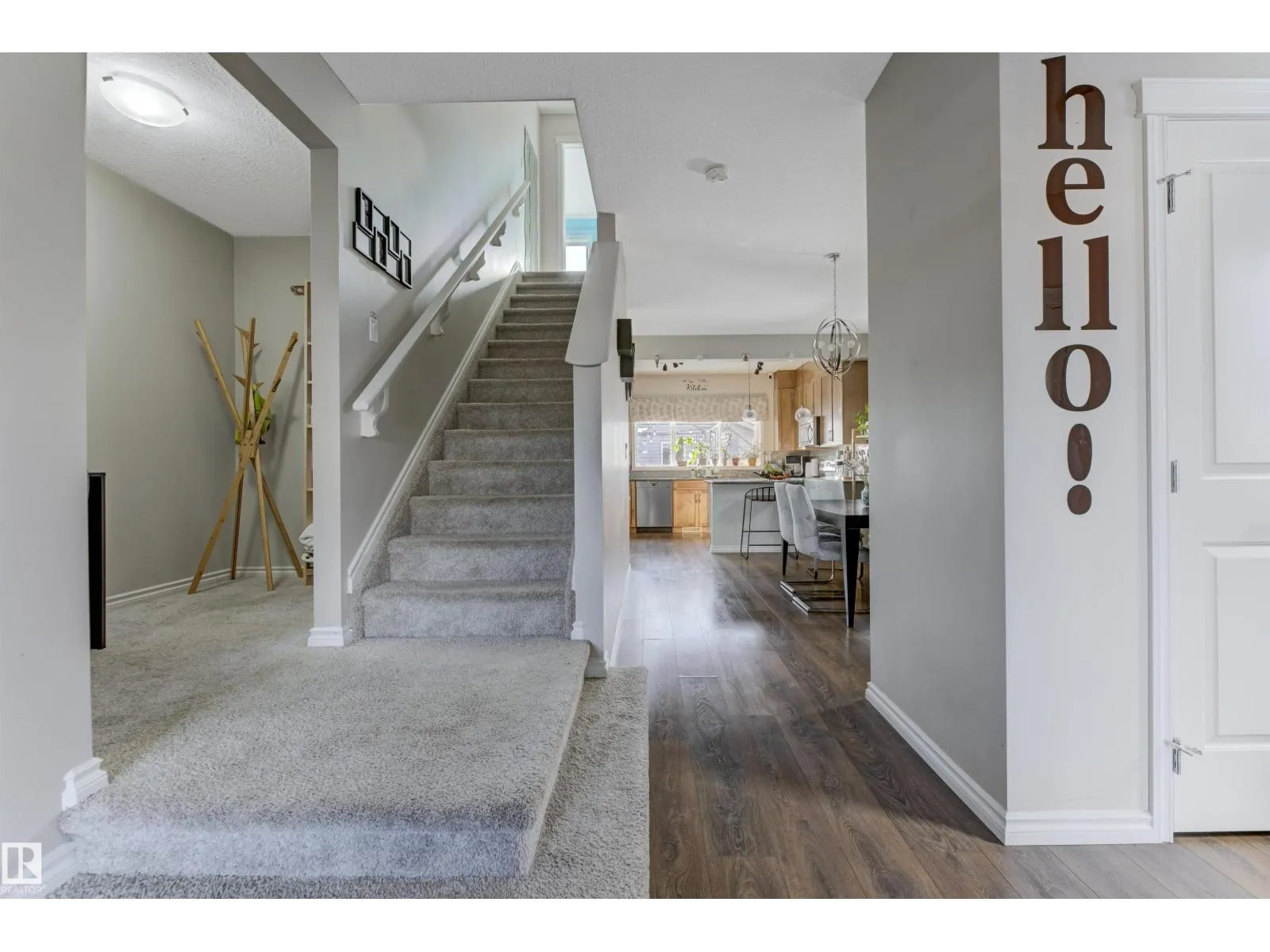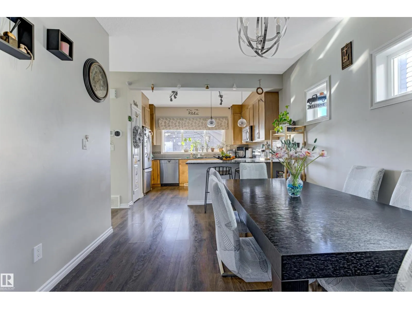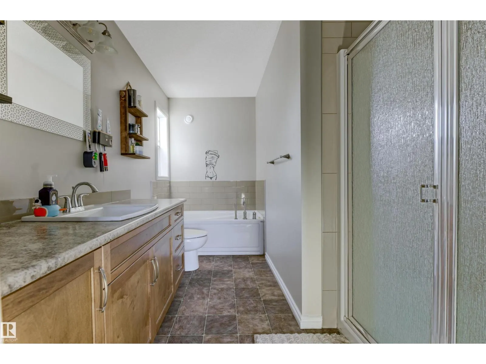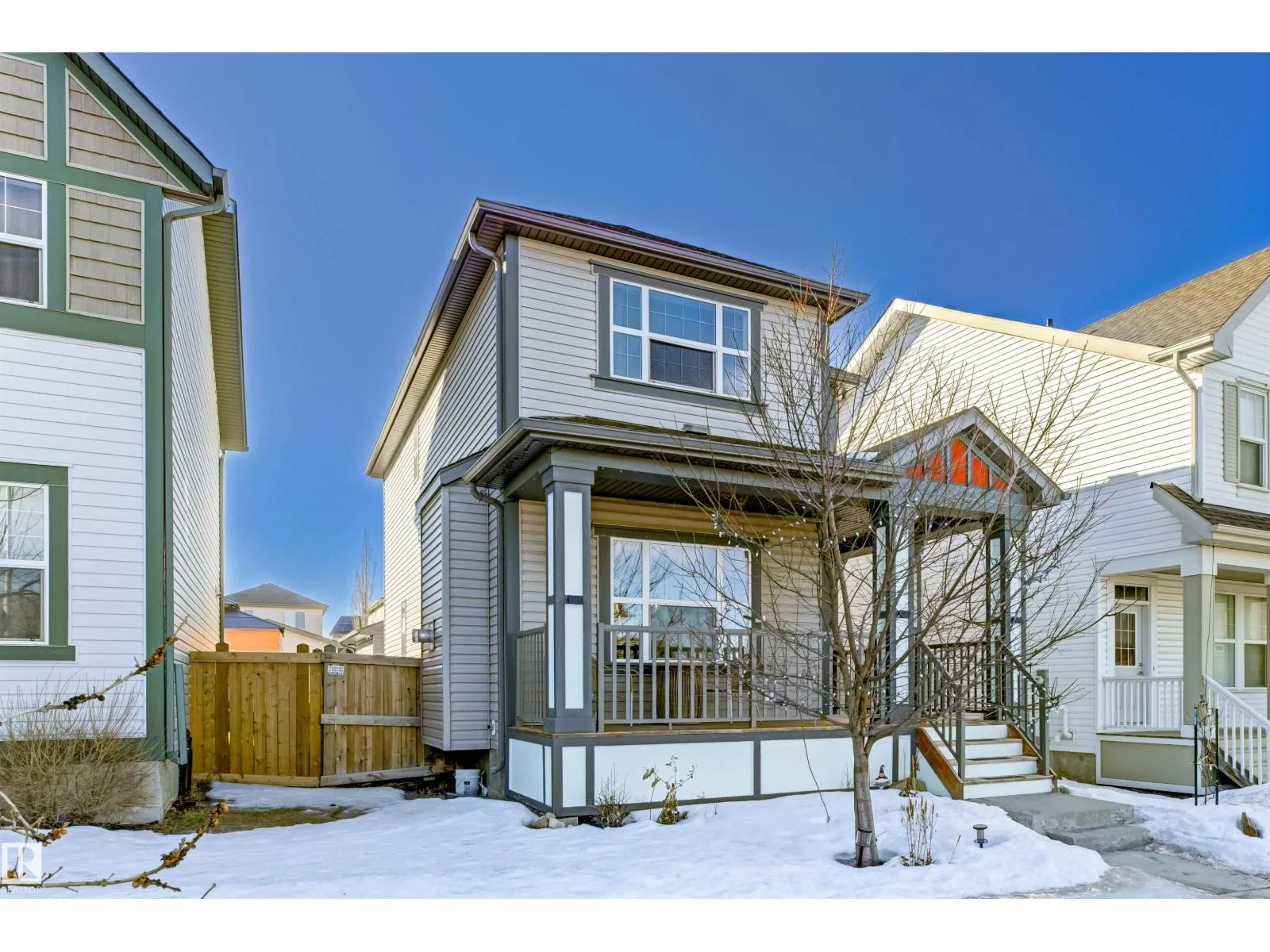 Welcome to this well-maintained 2-storey home in the family-friendly community of McConachie! Offering 1,604 sqft of above-grade living space, the main floor features a bright open-concept layout with spacious living and dining areas. The kitchen includes ample cabinetry, modern appliances, and a central island for added prep and seating space. Upstairs offers three well-sized bedrooms, including a primary suite with a private ensuite featuring a stand-up shower and a relaxing air-jetted soaker tub. The laundry room is conveniently located on the upper level. In total, the home offers 2.1 bathrooms. The unfinished basement provides great potential for future development. Enjoy the front porch, rear deck, fully fenced yard, and double detached garage. Situated directly across from a playground and bus stop, with schools and shopping just a short drive away, and easy access to Anthony Henday Drive. This home offers comfort, functionality, and everyday convenience in Northeast of Edmonton. (id:27476)