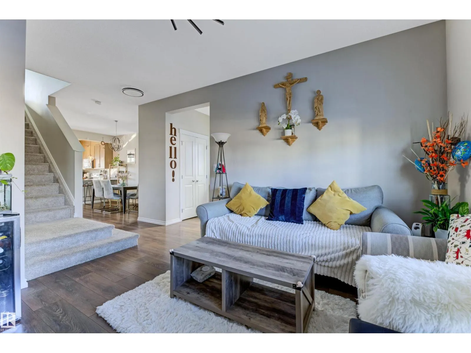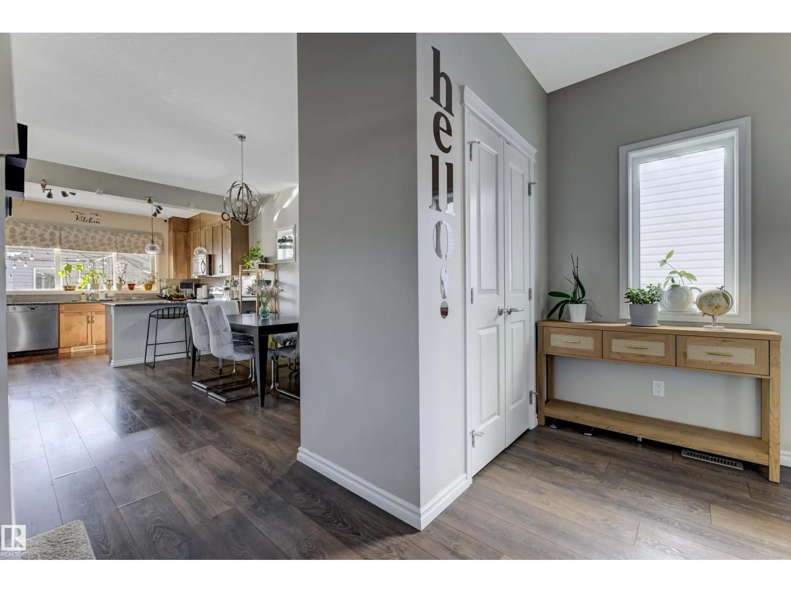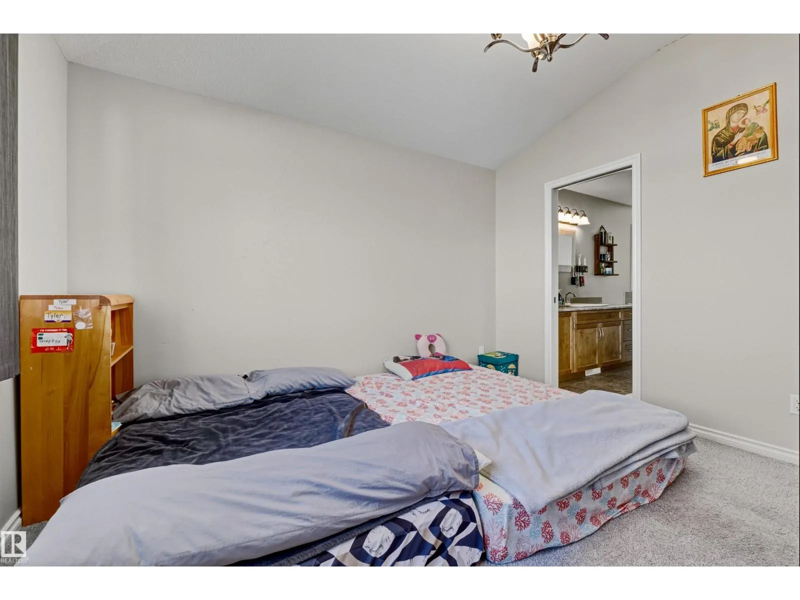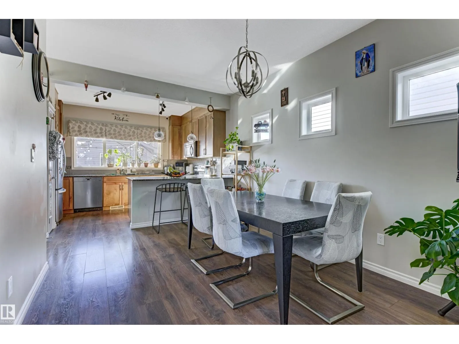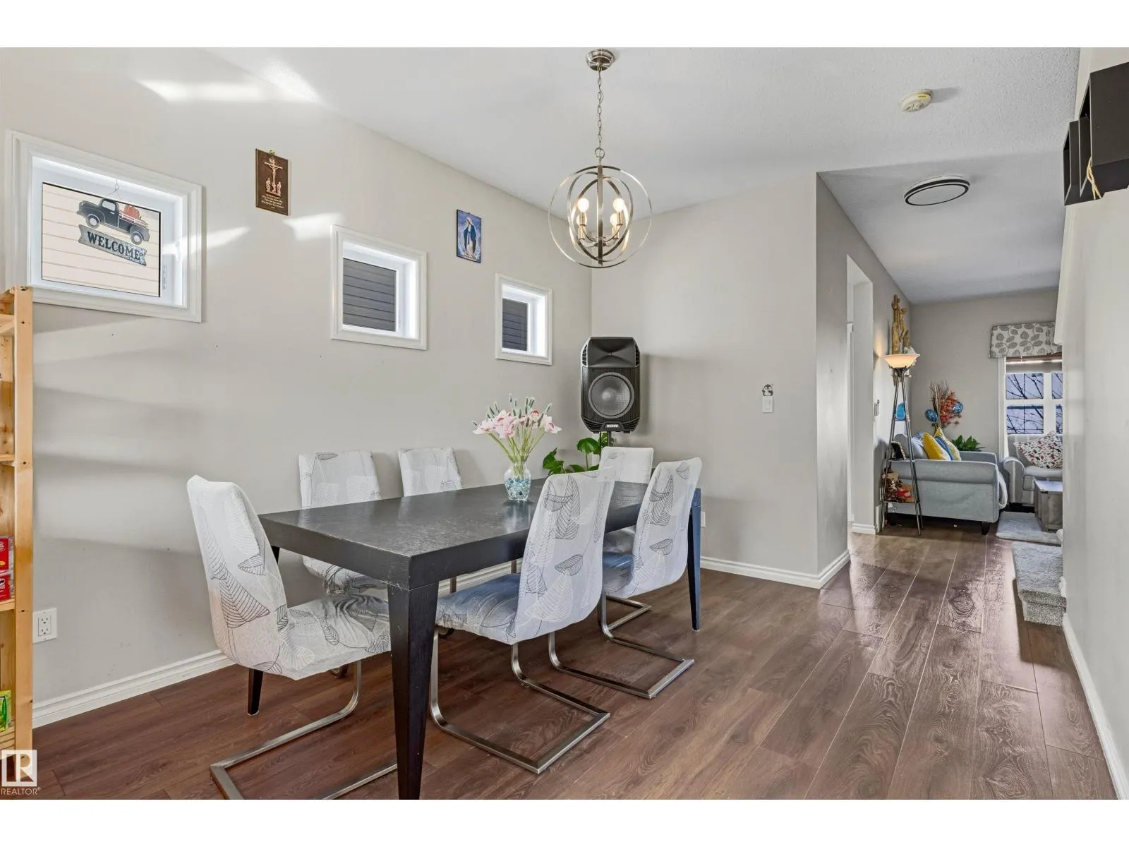 Welcome to this well-maintained 2-storey home in the family-friendly community of McConachie! Offering 1,604 sqft of above-grade living space, the main floor features a bright open-concept layout with spacious living and dining areas. The kitchen includes ample cabinetry, modern appliances, and a central island for added prep and seating space. Upstairs offers three well-sized bedrooms, including a primary suite with a private ensuite featuring a stand-up shower and a relaxing air-jetted soaker tub. The laundry room is conveniently located on the upper level. In total, the home offers 2.1 bathrooms. The unfinished basement provides great potential for future development. Enjoy the front porch, rear deck, fully fenced yard, and double detached garage. Situated directly across from a playground and bus stop, with schools and shopping just a short drive away, and easy access to Anthony Henday Drive. This home offers comfort, functionality, and everyday convenience in Northeast of Edmonton. (id:27476)