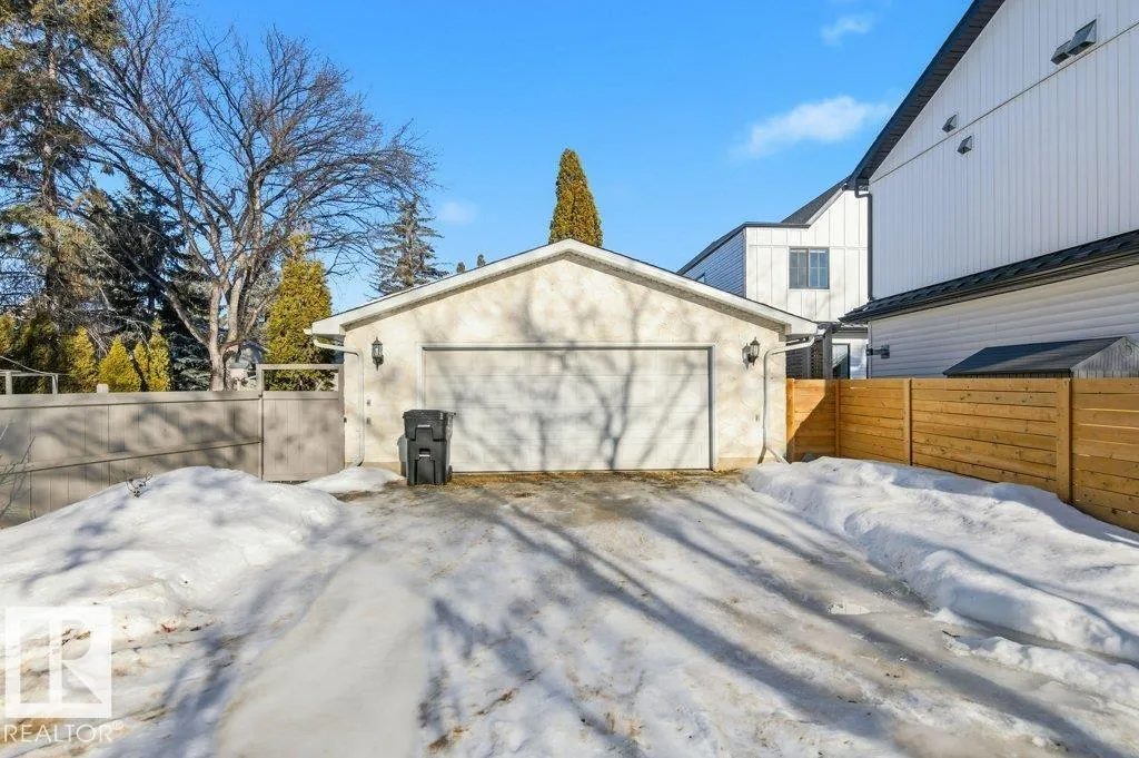 CLASSIC CLARENDON Built Home offered for sale from the Original Owner! Located in family friendly OLD RIVERBEND with quiet tree-lined streets, top-tier schools, river valley trails, and quick access to Whitemud, U of A, and downtown. The main floor offers exceptional flow and scale with a large front living room, formal dining space, a bright kitchen, and an oversized family room with fireplaceâideal for both everyday living and entertaining. A main-floor bedroom and convenient 2-piece bath add flexibility for guests or a home office. Upstairs features a spacious primary retreat with ensuite, two additional bedrooms, and a full bath - basement hosts a massive open utility/recreation area, laundry, and abundant storageâperfect for hobbies, extended family, or future customization. MASSiVE lot, facing William Bradley Moore park, backing greenspace with SUNNY SOUTH EXPOSURE and OVERSiZED Detached garage. A rare opportunity to make this property your own. (id:27476)