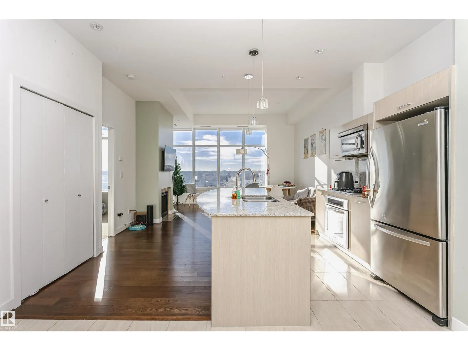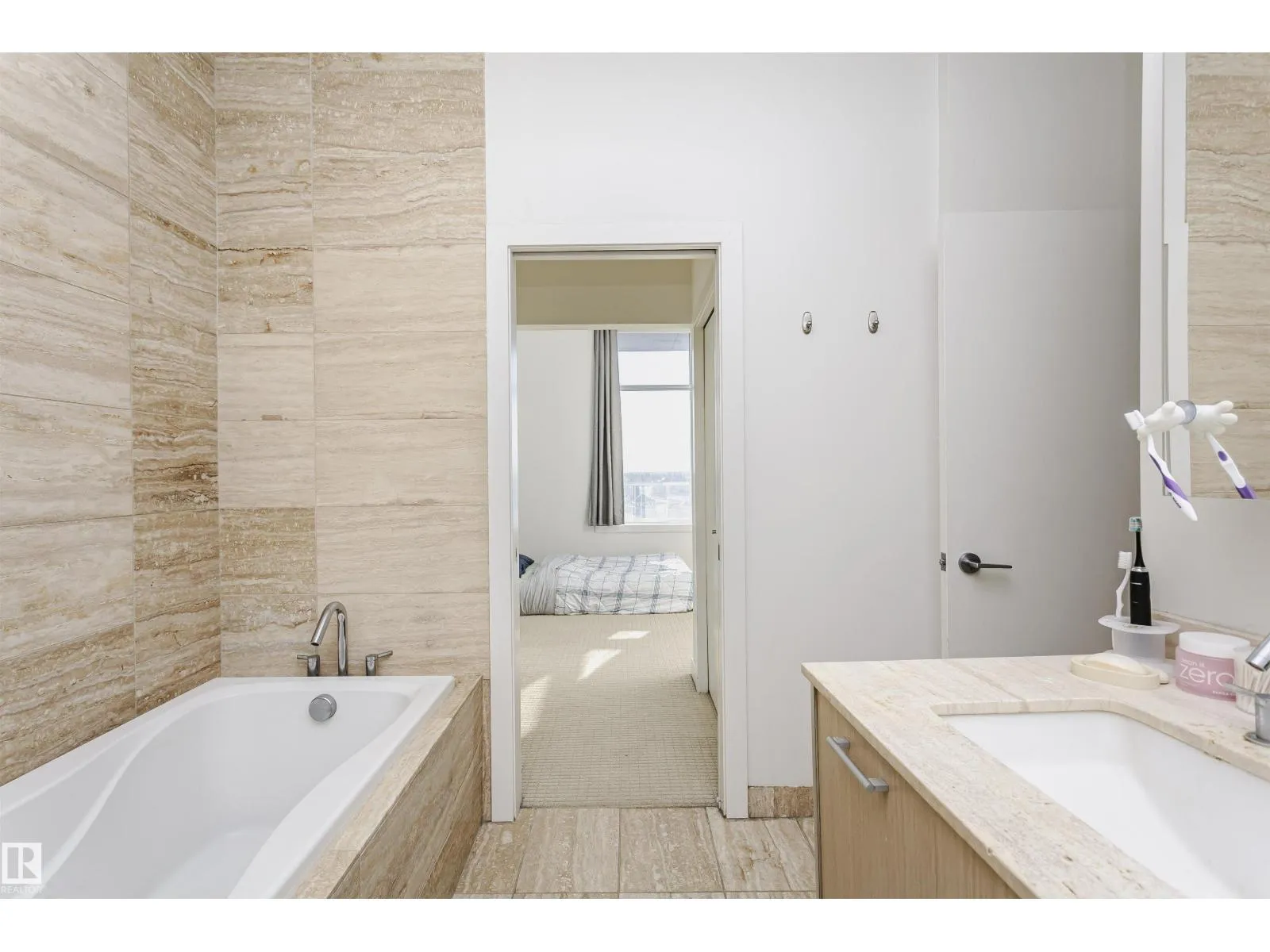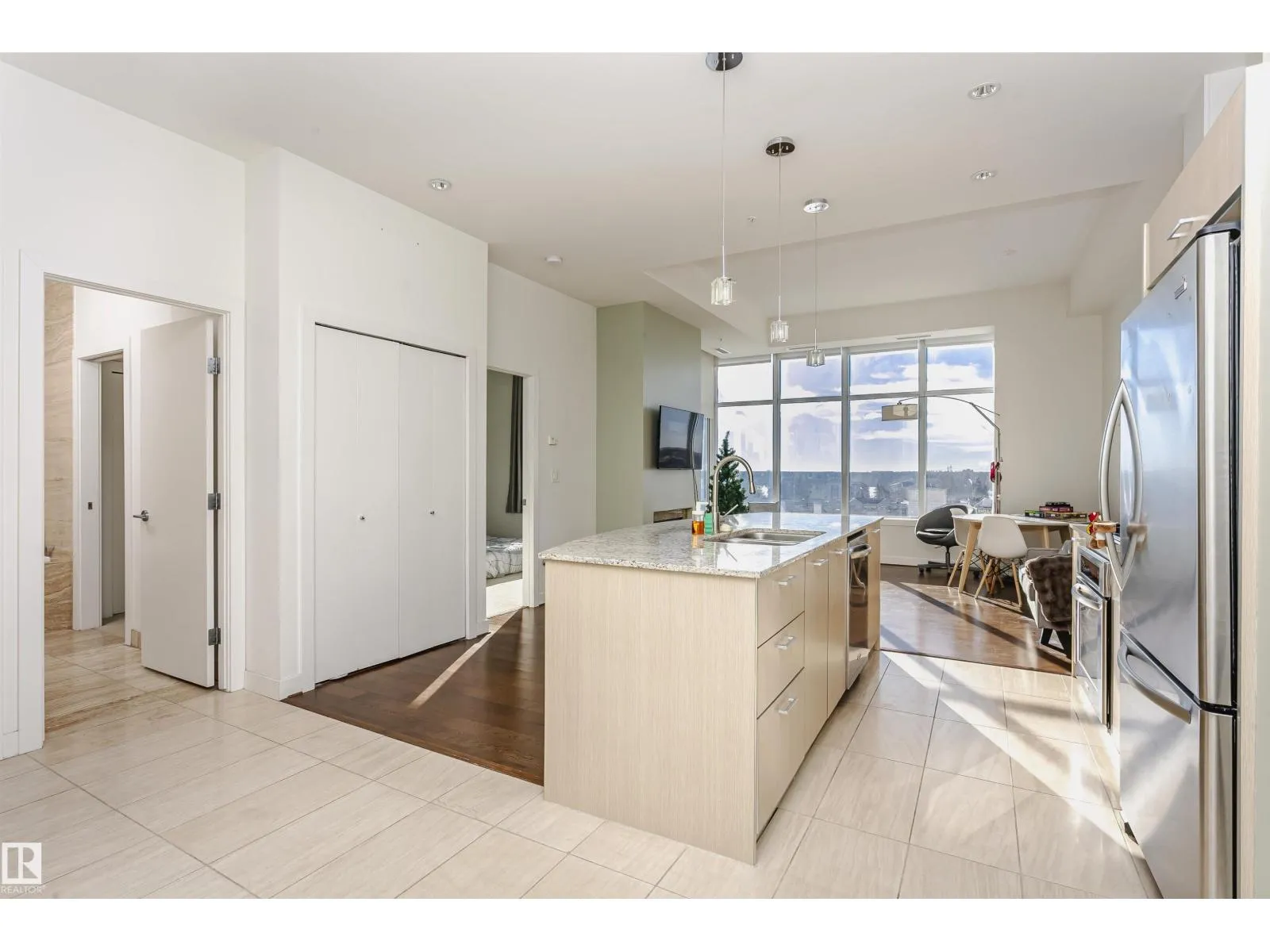 Top-floor, south-facing in sought-after Century Park! Soaring ceilings and expansive windows flood the open-concept layout with natural light, creating a bright and airy atmosphere. Just off the entrance, a versatile flex space offers the perfect spot for a home office, dining area, or reading nook. The modern kitchen showcases granite countertops, a gas stovetop, built-in oven and microwave, plus a large island. The spacious bedroom features dual closets and convenient dual-entry access to the 4-piece ensuite. Relax outdoors on your sunny private balcony with gas BBQ hookup. Complete with titled underground parking, a separate titled storage cage, fitness centre access, and ALL utilities included in the condo fees. Just steps to the LRT, shopping, restaurants, and minutes to major routes. This is urban convenience at its best! (id:27476)